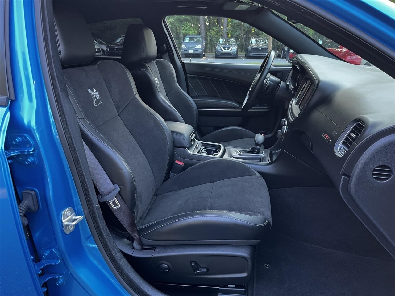 B5 Blue Pearlcoat 2023 Dodge Charger R/T Scat Pack RWD SRT HEMI 6.4L V8 MDS 8-Speed Automatic CARFAX One-Owner.Black Artificial Leather, Adaptive Cruise Control w/Stop, Advanced Brake Assist, Auto High Beam Headlamp Control, Full Speed FWD Collision Warn Plus, Lane Departure Warning Plus, Quick Order Package 21W Scat Pack, Rain Sensitive Windshield Wipers, Technology Group, 1-Yr SiriusXM Guardian Trial, 2-Piece Shark Fin Antenna, 4-Wheel Disc Brakes, 4G LTE Wi-Fi Hot Spot, 6 Speakers, 8.4" Touchscreen Display, ABS brakes, Air Conditioning, Alloy wheels, AM/FM radio: SiriusXM, Anti-whiplash front head restraints, Apple CarPlay, Apple CarPlay/Android Auto, Auto-Dimming Exterior Driver Mirror, Auto-dimming Rear-View mirror, Automatic temperature control, Black-Edged Premium Floormats, Blind Spot Memory/Power/Heat Mirror, Brake assist, Bumpers: body-color, Cloth Performance Seats w/Heat, Compass, Delay-off headlights, Driver door bin, Driver vanity mirror, Dual front impact airbags, Dual front side impact airbags, Electronic Stability Control, Emergency communication system: SiriusXM Guardian, For Details, Visit DriveUconnect.com, Four wheel independent suspension, Front anti-roll bar, Front Bucket Seats, Front Center Armrest, Front dual zone A/C, Front fog lights, Front License Plate Bracket, Front reading lights, Fully automatic headlights, Garage door transmitter: HomeLink, Google Android Auto, GPS Antenna Input, HD Radio, Heated door mirrors, Heated Front Seats, Heated front seats, Heated steering wheel, Illuminated entry, Integrated Center Stack Radio, Integrated Voice Command w/Bluetooth, Knee airbag, Leather Shift Knob, Low tire pressure warning, Manufacturer's Statement of Origin, Media Hub (2 USB, AUX), Occupant sensing airbag, Outside temperature display, Overhead airbag, Overhead console, Panic alarm, ParkView Rear Back-Up Camera, Passenger door bin, Passenger vanity mirror, Plus Group, Power 2-Way Driver Lumbar Adjust, Power 2-Way Passenger Lumbar Adjust, Power door mirrors, Power driver seat, Power steering, Power Sunroof, Power windows, Radio: Uconnect 4C w/8.4" Display, Radio/Driver Seat/Mirrors Memory, Rear anti-roll bar, Rear Armrest w/Cupholder Seat, Rear reading lights, Rear seat center armrest, Rear window defroster, Remote keyless entry, Scat Pack Logo Nappa/Alcantara Seat, Security system, Speed control, Speed-Sensitive Wipers, Split folding rear seat, Spoiler, Sport steering wheel, Steering wheel mounted audio controls, Tachometer, Telescoping steering wheel, Tilt steering wheel, Traction control, Trip computer, USB Host Flip, Variably intermittent wipers, Wheels: 20" x 9" Lo Gloss Granite Crystal, Black Artificial Leather, Adaptive Cruise Control w/Stop, Advanced Brake Assist, Auto High Beam Headlamp Control, Full Speed FWD Collision Warn Plus, Lane Departure Warning Plus, Quick Order Package 21W Scat Pack, Rain Sensitive Windshield Wipers, Technology Group.