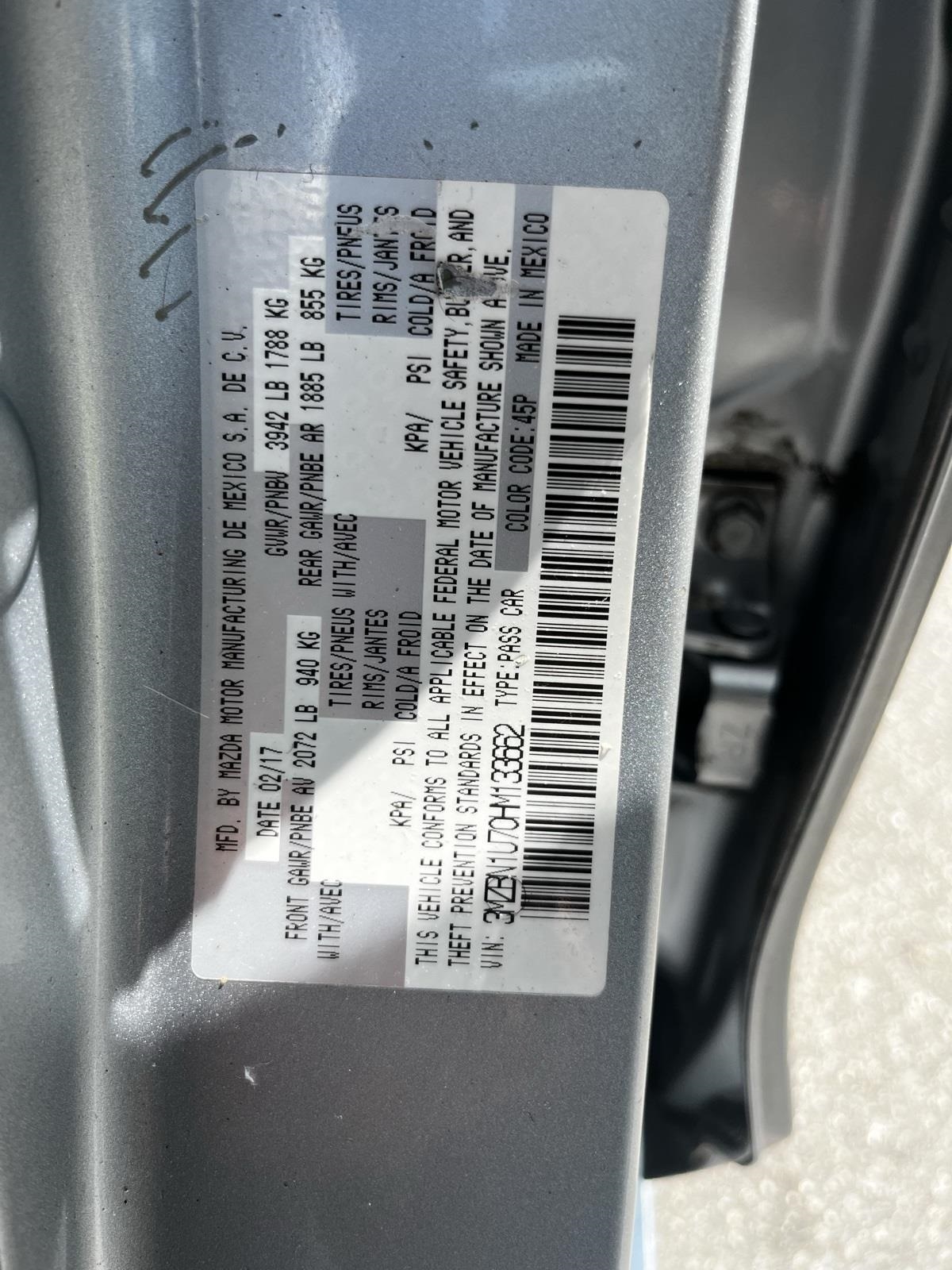 Sonic Silver Metallic 2017 Mazda Mazda3 Sport FWD SKYACTIV®-G 2.0L 4-Cylinder DOHC 16V 6-Speed Manual16" x 6.5J Steel w/Full Wheel Covers Wheels, 4-Wheel Disc Brakes, 6 Speakers, ABS brakes, Air Conditioning, AM/FM radio, Brake assist, Bumpers: body-color, Cloth Seat Trim, Driver door bin, Driver vanity mirror, Dual front impact airbags, Dual front side impact airbags, Electronic Stability Control, Emergency communication system: Mazda Connect, Exterior Parking Camera Rear, Four wheel independent suspension, Front anti-roll bar, Front Bucket Seats, Front Center Armrest, Front reading lights, Illuminated entry, Low tire pressure warning, Occupant sensing airbag, Outside temperature display, Overhead airbag, Panic alarm, Passenger door bin, Passenger vanity mirror, Power door mirrors, Power steering, Power windows, Radio data system, Radio: AM/FM/HD Audio System, Rear anti-roll bar, Rear window defroster, Reclining Front Bucket Seats, Remote keyless entry, Speed control, Speed-sensing steering, Split folding rear seat, Steering wheel mounted audio controls, Tachometer, Telescoping steering wheel, Tilt steering wheel, Traction control, Trip computer, Variably intermittent wipers.