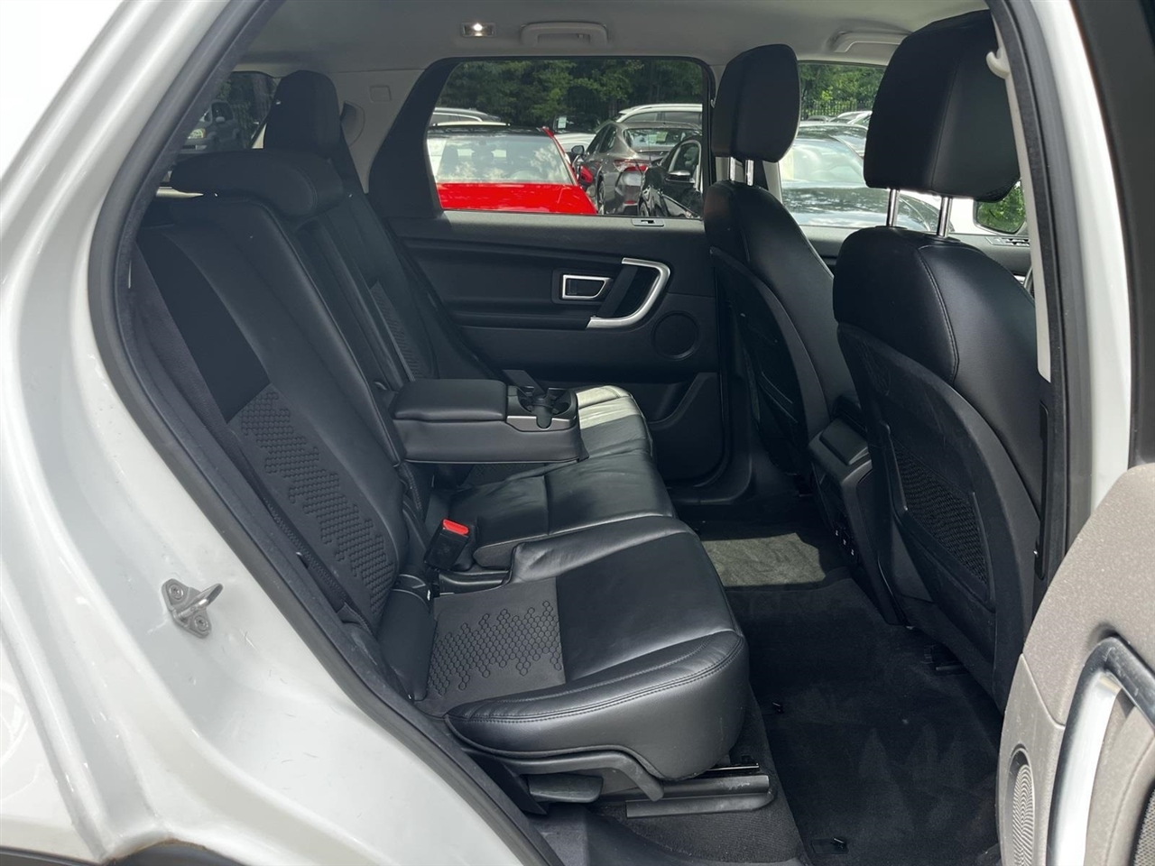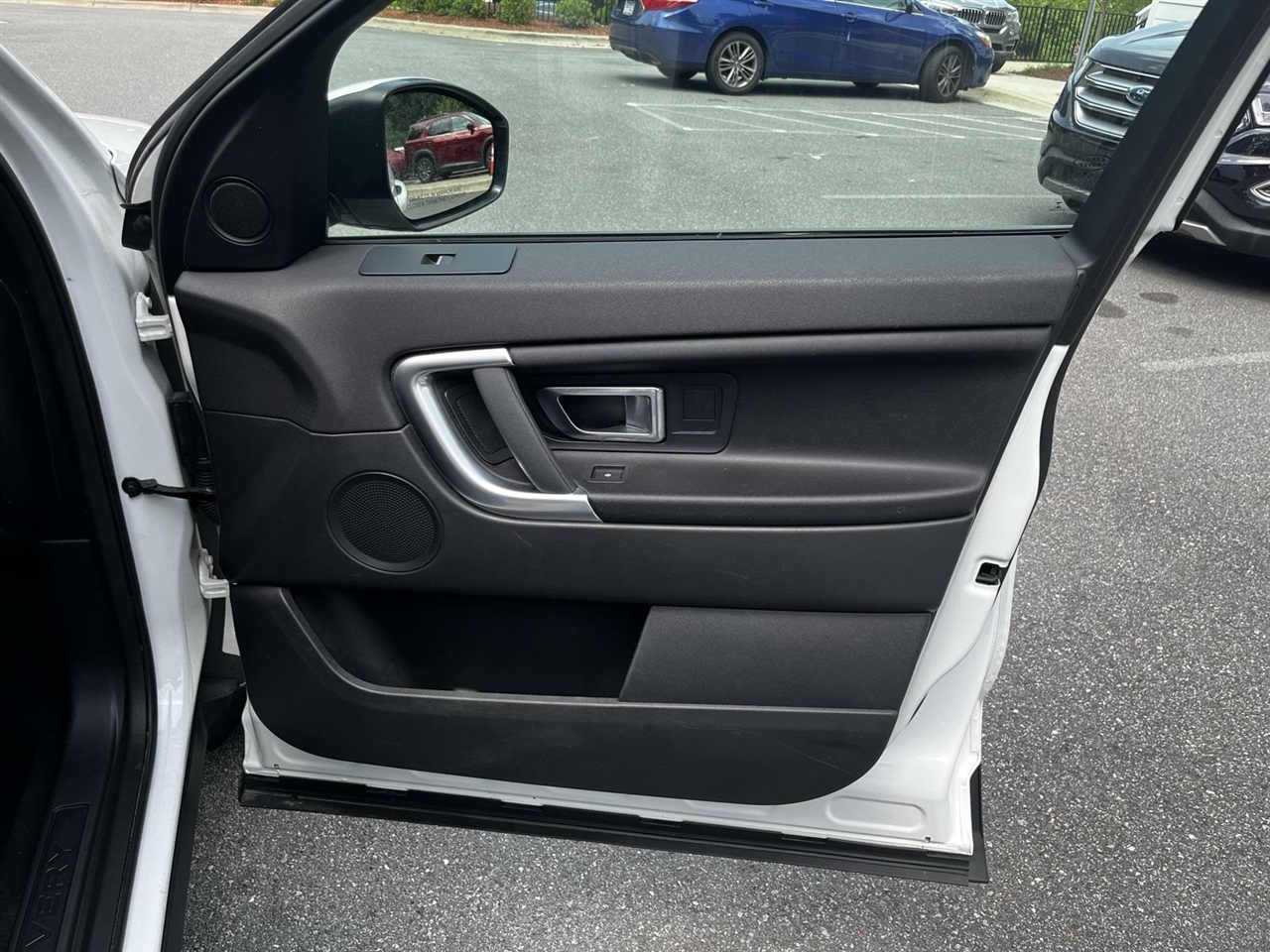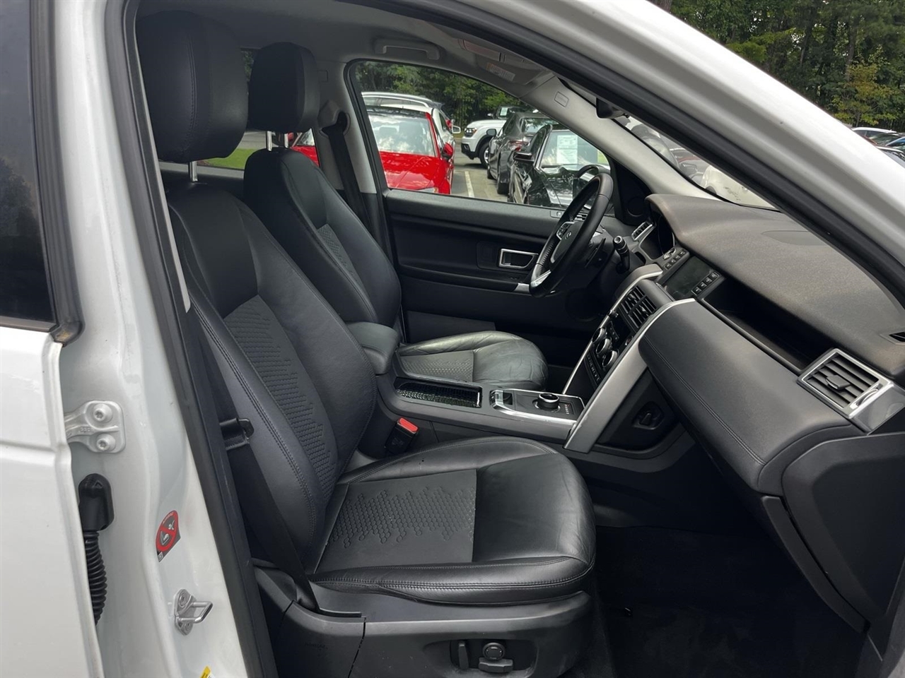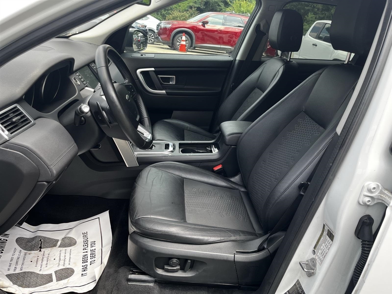 White 2018 Land Rover Discovery Sport SE 4WD 2.0L I4 Turbocharged 9-Speed Automatic10 Speakers, 10-Way Power Front Seats, 4-Wheel Disc Brakes, ABS brakes, Air Conditioning, Alloy wheels, AM/FM radio, Automatic temperature control, Brake assist, Bumpers: body-color, Delay-off headlights, Driver door bin, Driver vanity mirror, Dual front impact airbags, Dual front side impact airbags, Electronic Stability Control, Emergency communication system: InControl Protect, Exterior Parking Camera Rear, Four wheel independent suspension, Front anti-roll bar, Front Bucket Seats, Front Center Armrest, Front dual zone A/C, Front reading lights, Fully automatic headlights, Heated door mirrors, Illuminated entry, Knee airbag, Leather steering wheel, Low tire pressure warning, Occupant sensing airbag, Outside temperature display, Overhead airbag, Panic alarm, Partial Leather Seat Trim, Passenger door bin, Passenger vanity mirror, Power door mirrors, Power driver seat, Power passenger seat, Power steering, Power windows, Radio data system, Radio: 190W Land Rover Audio System w/10 Speakers, Rain sensing wipers, Rear anti-roll bar, Rear fog lights, Rear Parking Sensors, Rear reading lights, Rear seat center armrest, Rear window defroster, Rear window wiper, Remote keyless entry, Security system, Speed control, Speed-sensing steering, Speed-Sensitive Wipers, Split folding rear seat, Spoiler, Steering wheel mounted audio controls, Tachometer, TBA Axle Ratio, Telescoping steering wheel, Tilt steering wheel, Traction control, Trip computer, Variably intermittent wipers, Wheels: 18" 9 Spoke Alloy (Style 109).