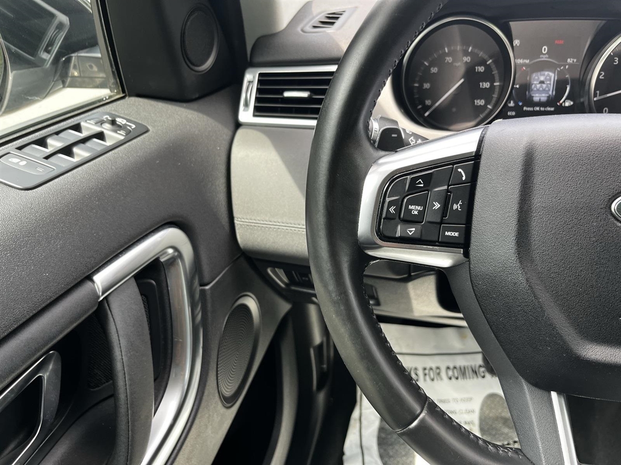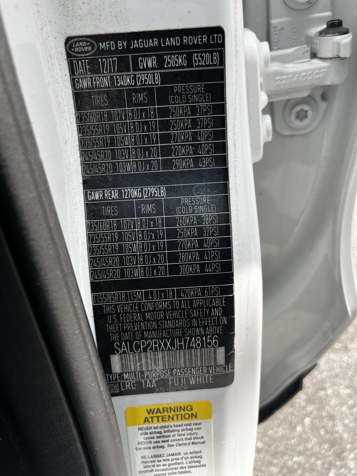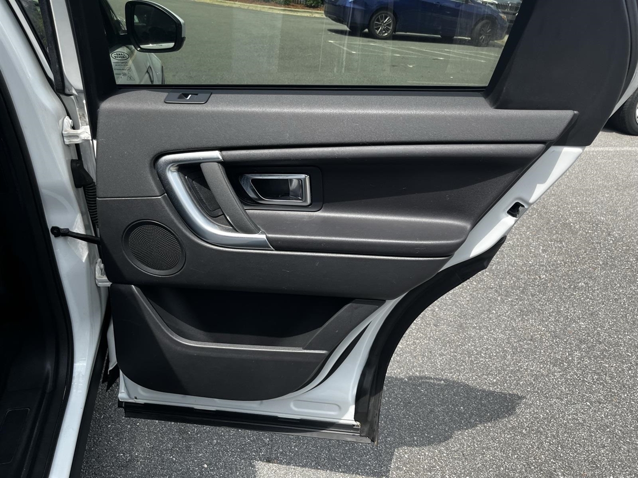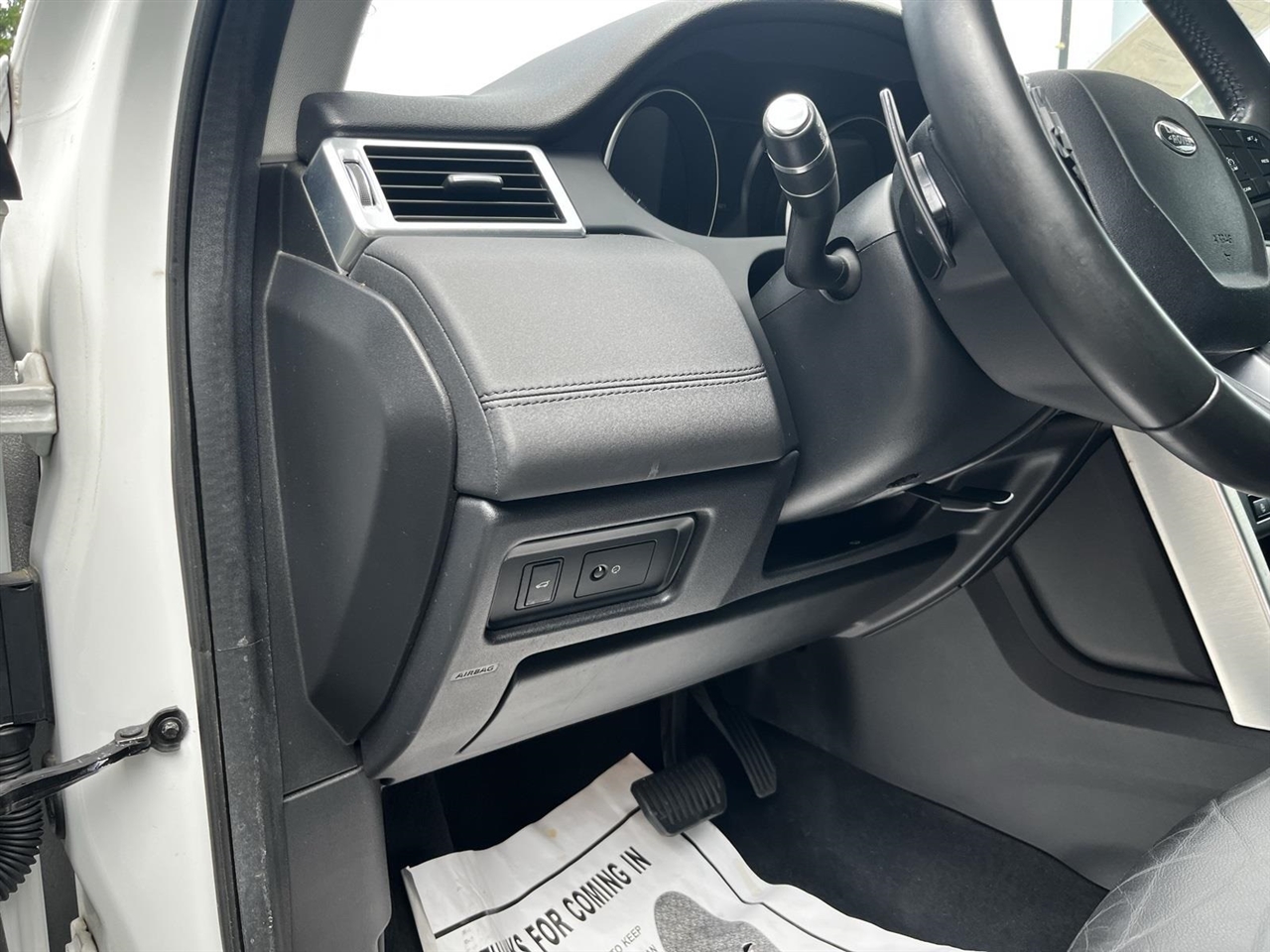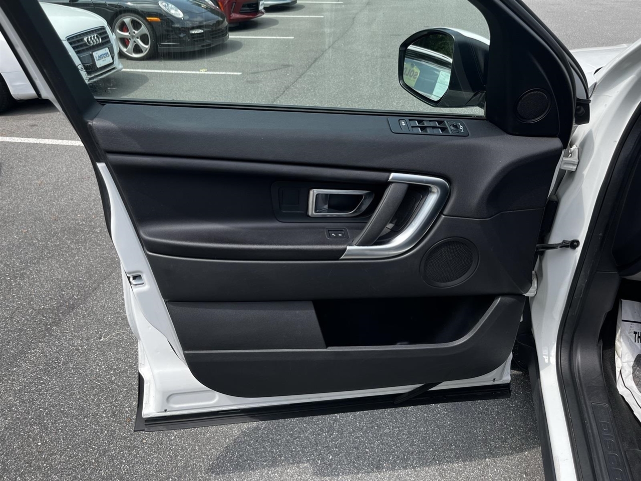 White 2018 Land Rover Discovery Sport SE 4WD 2.0L I4 Turbocharged 9-Speed Automatic10 Speakers, 10-Way Power Front Seats, 4-Wheel Disc Brakes, ABS brakes, Air Conditioning, Alloy wheels, AM/FM radio, Automatic temperature control, Brake assist, Bumpers: body-color, Delay-off headlights, Driver door bin, Driver vanity mirror, Dual front impact airbags, Dual front side impact airbags, Electronic Stability Control, Emergency communication system: InControl Protect, Exterior Parking Camera Rear, Four wheel independent suspension, Front anti-roll bar, Front Bucket Seats, Front Center Armrest, Front dual zone A/C, Front reading lights, Fully automatic headlights, Heated door mirrors, Illuminated entry, Knee airbag, Leather steering wheel, Low tire pressure warning, Occupant sensing airbag, Outside temperature display, Overhead airbag, Panic alarm, Partial Leather Seat Trim, Passenger door bin, Passenger vanity mirror, Power door mirrors, Power driver seat, Power passenger seat, Power steering, Power windows, Radio data system, Radio: 190W Land Rover Audio System w/10 Speakers, Rain sensing wipers, Rear anti-roll bar, Rear fog lights, Rear Parking Sensors, Rear reading lights, Rear seat center armrest, Rear window defroster, Rear window wiper, Remote keyless entry, Security system, Speed control, Speed-sensing steering, Speed-Sensitive Wipers, Split folding rear seat, Spoiler, Steering wheel mounted audio controls, Tachometer, TBA Axle Ratio, Telescoping steering wheel, Tilt steering wheel, Traction control, Trip computer, Variably intermittent wipers, Wheels: 18" 9 Spoke Alloy (Style 109).