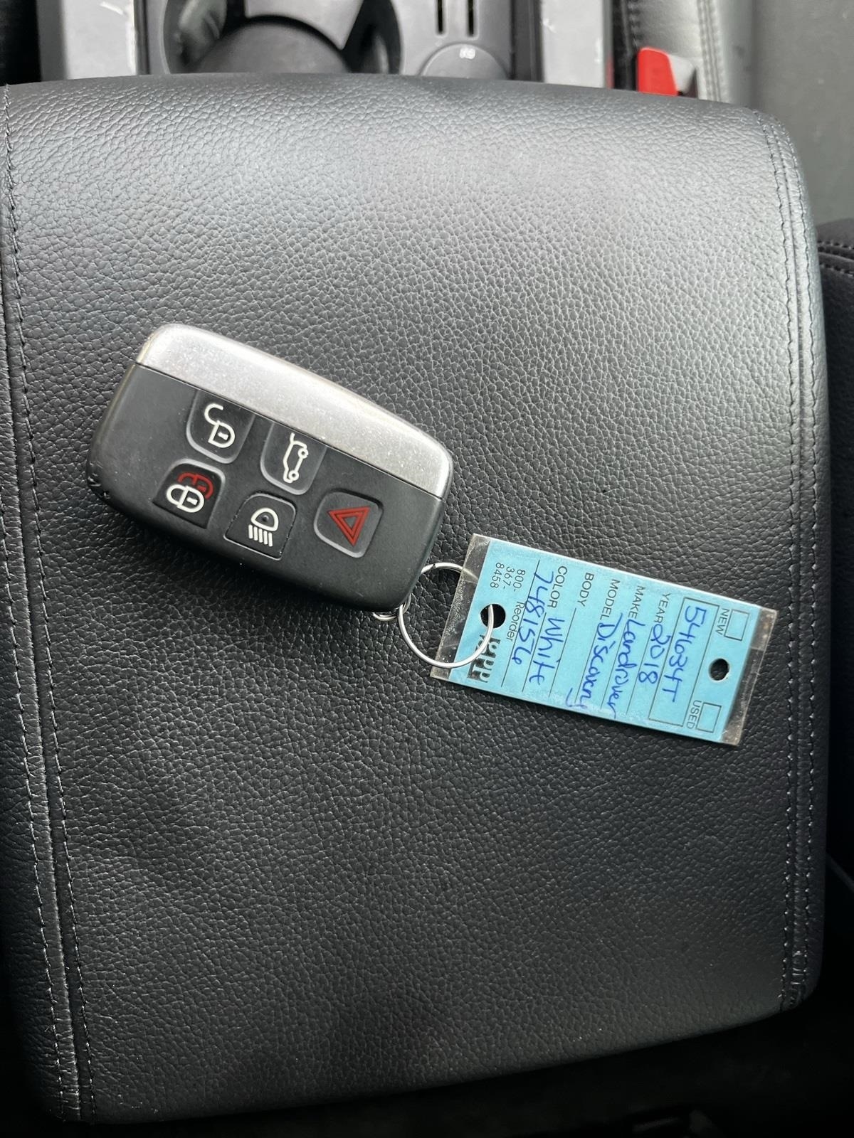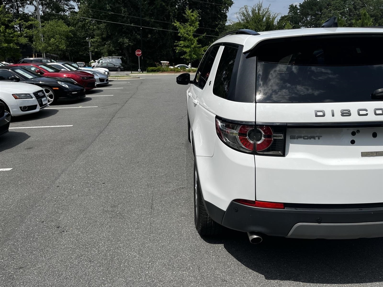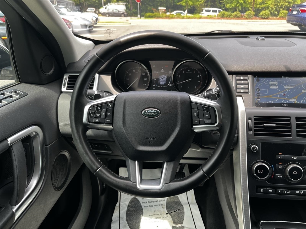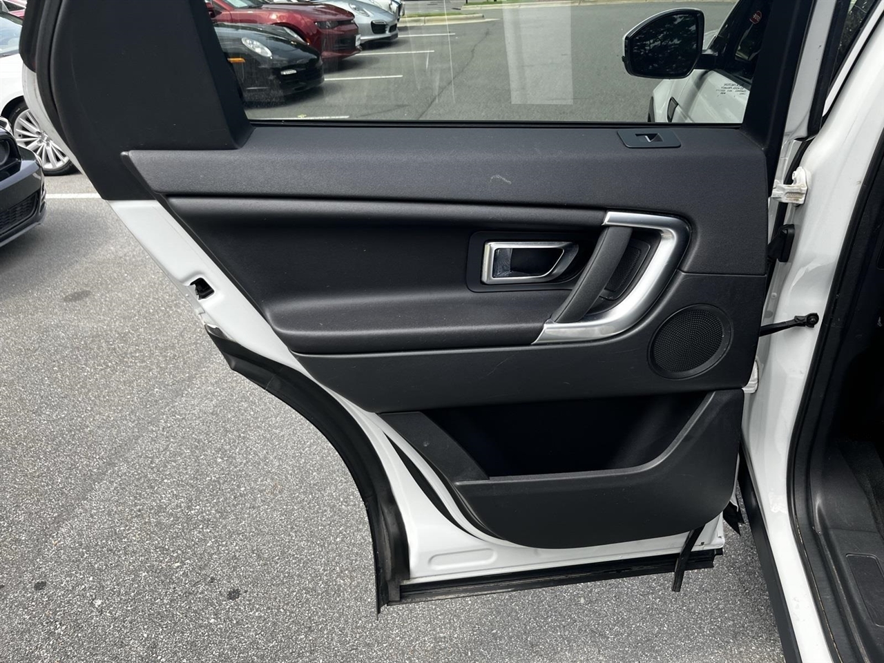 White 2018 Land Rover Discovery Sport SE 4WD 2.0L I4 Turbocharged 9-Speed Automatic10 Speakers, 10-Way Power Front Seats, 4-Wheel Disc Brakes, ABS brakes, Air Conditioning, Alloy wheels, AM/FM radio, Automatic temperature control, Brake assist, Bumpers: body-color, Delay-off headlights, Driver door bin, Driver vanity mirror, Dual front impact airbags, Dual front side impact airbags, Electronic Stability Control, Emergency communication system: InControl Protect, Exterior Parking Camera Rear, Four wheel independent suspension, Front anti-roll bar, Front Bucket Seats, Front Center Armrest, Front dual zone A/C, Front reading lights, Fully automatic headlights, Heated door mirrors, Illuminated entry, Knee airbag, Leather steering wheel, Low tire pressure warning, Occupant sensing airbag, Outside temperature display, Overhead airbag, Panic alarm, Partial Leather Seat Trim, Passenger door bin, Passenger vanity mirror, Power door mirrors, Power driver seat, Power passenger seat, Power steering, Power windows, Radio data system, Radio: 190W Land Rover Audio System w/10 Speakers, Rain sensing wipers, Rear anti-roll bar, Rear fog lights, Rear Parking Sensors, Rear reading lights, Rear seat center armrest, Rear window defroster, Rear window wiper, Remote keyless entry, Security system, Speed control, Speed-sensing steering, Speed-Sensitive Wipers, Split folding rear seat, Spoiler, Steering wheel mounted audio controls, Tachometer, TBA Axle Ratio, Telescoping steering wheel, Tilt steering wheel, Traction control, Trip computer, Variably intermittent wipers, Wheels: 18" 9 Spoke Alloy (Style 109).
