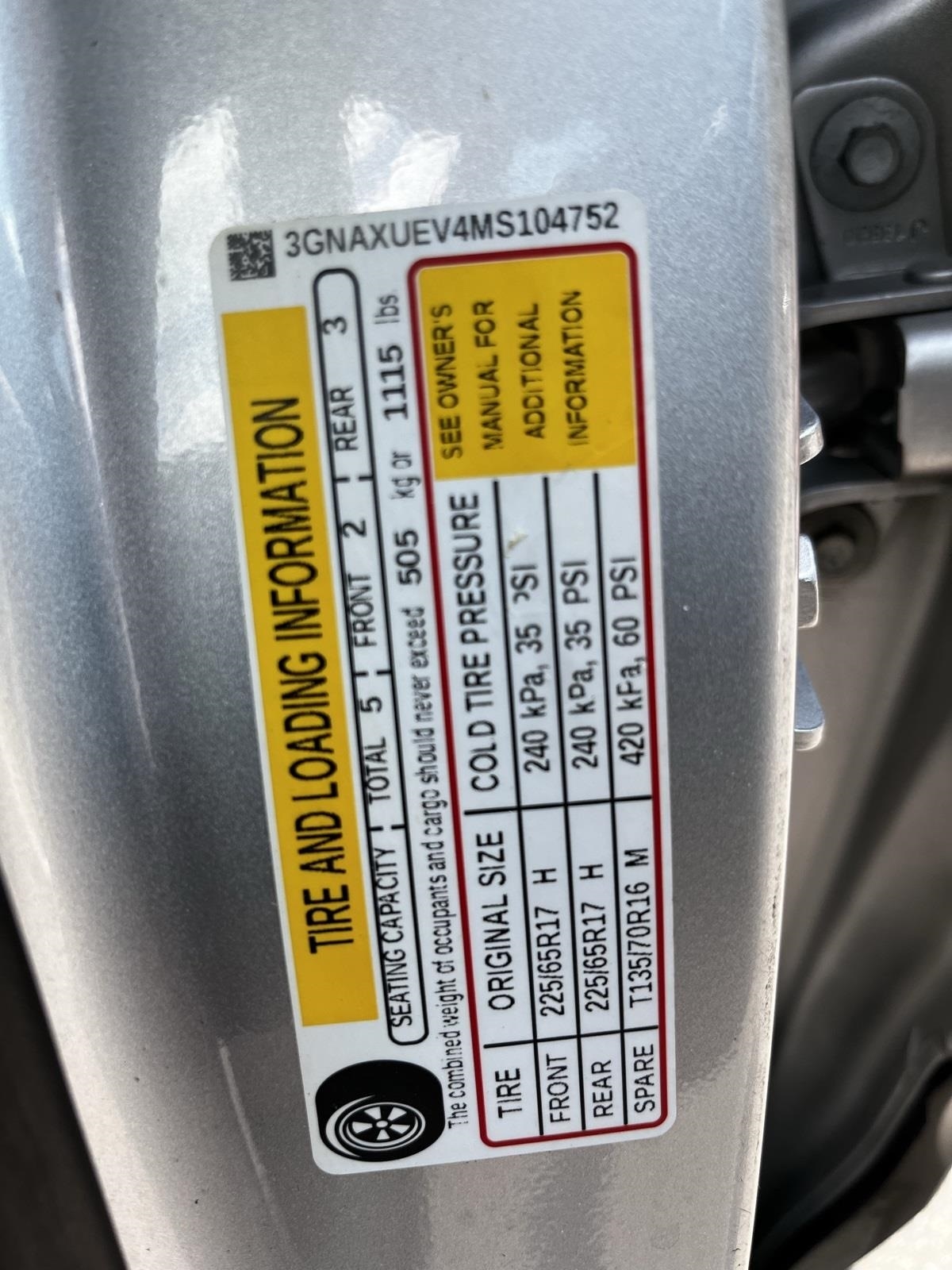 Silver Ice Metallic 2021 Chevrolet Equinox LT AWD 1.5L DOHC 6-Speed Automatic Electronic with Overdrive Clean CARFAX.AWD, 17" Aluminum Wheels, 2 Rear USB Charging-Only Ports, 2 USB Ports & Auxiliary Input Jack, 2-Way Power Driver Lumbar Control Seat Adjuster, 3.87 Final Drive Axle Ratio, 4-Wheel Disc Brakes, 6 Speaker Audio System Feature, 6 Speakers, 8-Way Power Driver Seat Adjuster, ABS brakes, Air Conditioning, Alloy wheels, AM/FM radio: SiriusXM, Apple CarPlay/Android Auto, Auto High-beam Headlights, Bluetooth® For Phone, Brake assist, Bumpers: body-color, Cold Air Grille Shutter, Compass, Delay-off headlights, Driver door bin, Driver vanity mirror, Dual front impact airbags, Dual front side impact airbags, Electronic Stability Control, Emergency communication system: OnStar and Chevrolet connected services capable, Four wheel independent suspension, Front anti-roll bar, Front Bucket Seats, Front Center Armrest, Front Passenger 4-Way Manual Seat Adjuster, Front reading lights, Fully automatic headlights, Heated door mirrors, High-Intensity Discharge Headlights, Illuminated entry, Low tire pressure warning, Occupant sensing airbag, Outside temperature display, Overhead airbag, Overhead console, Panic alarm, Passenger door bin, Passenger vanity mirror, Power door mirrors, Power driver seat, Power steering, Power windows, Preferred Equipment Group 1LT, Premium audio system: Chevrolet Infotainment 3, Premium Cloth Seat Trim, Radio data system, Radio: Chevrolet Infotainment 3 System w/AM/FM, Rear anti-roll bar, Rear reading lights, Rear seat center armrest, Rear window defroster, Rear window wiper, Remote keyless entry, Security system, SiriusXM Radio, Speed control, Speed-sensing steering, Split folding rear seat, Spoiler, Steering wheel mounted audio controls, Tachometer, Telescoping steering wheel, Tilt steering wheel, Traction control, Trip computer, Variably intermittent wipers, AWD.