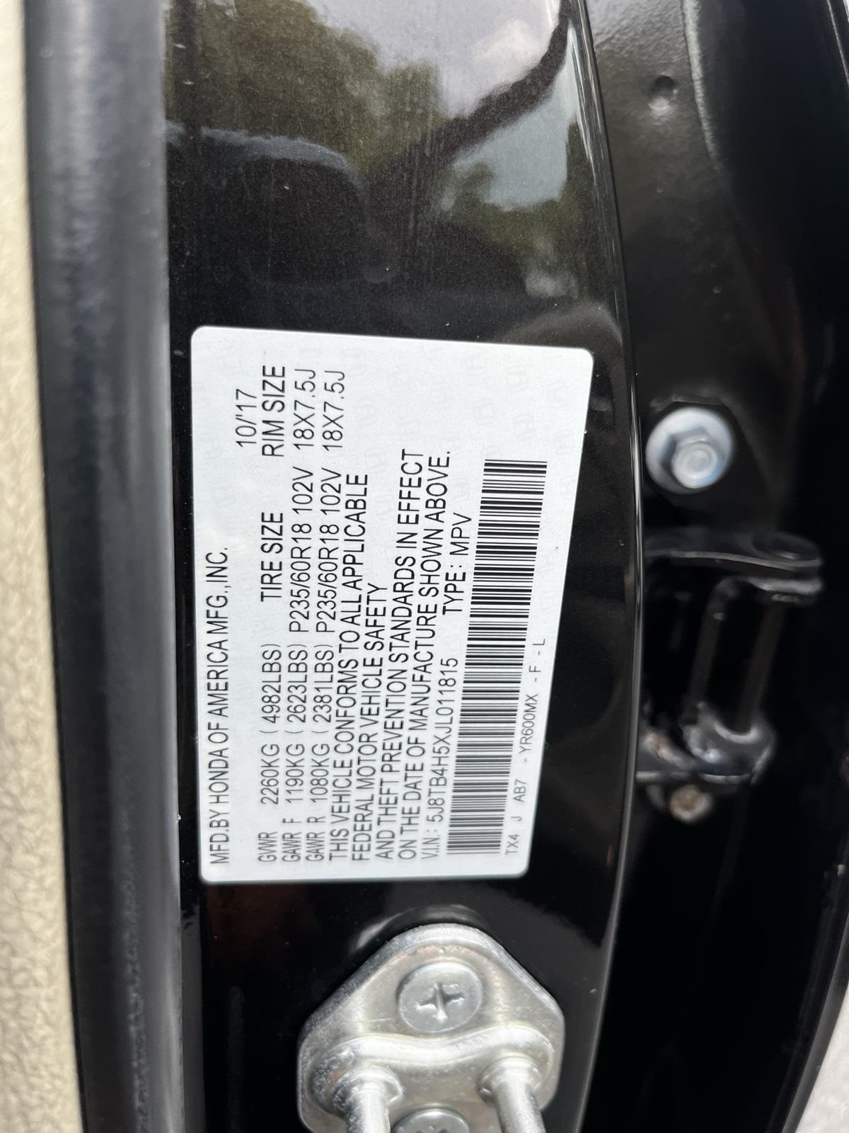 Black 2018 Acura RDX Technology Package AWD 3.5L V6 SOHC i-VTEC 24V 6-Speed AutomaticAWD, 10 Speakers, 18" x 7.5" Aluminum Alloy Wheels, 4-Wheel Disc Brakes, 4.25 Axle Ratio, ABS brakes, Air Conditioning, Alloy wheels, AM/FM radio: SiriusXM, Anti-whiplash front head restraints, Auto-dimming Rear-View mirror, Automatic temperature control, Brake assist, Bumpers: body-color, CD player, Delay-off headlights, Driver door bin, Driver vanity mirror, Dual front impact airbags, Dual front side impact airbags, Electronic Stability Control, Exterior Parking Camera Rear, Four wheel independent suspension, Front anti-roll bar, Front Bucket Seats, Front Center Armrest, Front dual zone A/C, Front reading lights, Fully automatic headlights, Garage door transmitter: HomeLink, Heated door mirrors, Heated front seats, Heated Front Sport Seats, Illuminated entry, Leather Shift Knob, Leather steering wheel, Low tire pressure warning, Memory seat, Navigation System, Occupant sensing airbag, Outside temperature display, Overhead airbag, Overhead console, Panic alarm, Passenger door bin, Passenger vanity mirror, Perforated Leather-Trimmed Interior, Power door mirrors, Power driver seat, Power Liftgate, Power moonroof, Power passenger seat, Power steering, Power windows, Radio data system, Radio: ELS Studio Premium Audio System, Rear anti-roll bar, Rear seat center armrest, Rear window defroster, Rear window wiper, Remote keyless entry, Security system, Speed control, Speed-sensing steering, Speed-Sensitive Wipers, Split folding rear seat, Spoiler, Steering wheel mounted audio controls, Tachometer, Telescoping steering wheel, Tilt steering wheel, Traction control, Trip computer, Turn signal indicator mirrors, Variably intermittent wipers, AWD.
