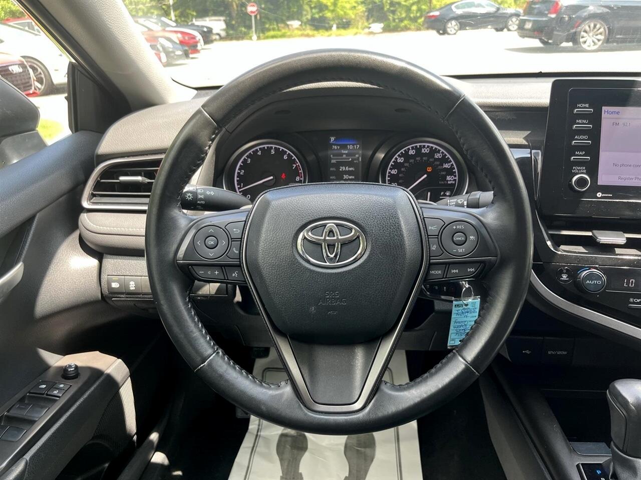 Gray 2023 Toyota Camry SE FWD 2.5L I4 DOHC 16V 8-Speed Automatic CARFAX One-Owner.Ash w/Sport SofTex Seat Trim w/Fabric Inserts, ABS brakes, Active Cruise Control, Alloy wheels, Electronic Stability Control, Front dual zone A/C, Heated door mirrors, Illuminated entry, Low tire pressure warning, Remote keyless entry, Traction control.