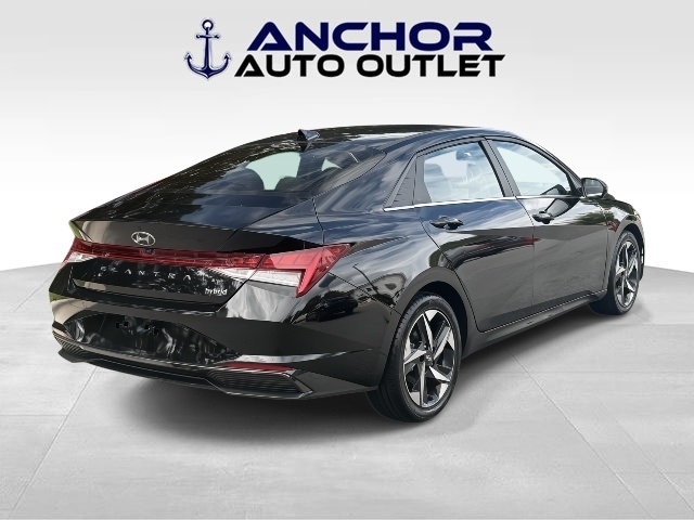 Onyx Black 2023 Hyundai Elantra Hybrid Limited FWD I4 6-Speed Dual ClutchI4, 17" x 7.0J Alloy Wheels, 4-Wheel Disc Brakes, 8 Speakers, ABS brakes, Air Conditioning, Alloy wheels, AM/FM radio: SiriusXM, Apple CarPlay & Android Auto, Auto High-beam Headlights, Auto-dimming Rear-View mirror, Automatic temperature control, Brake assist, Bumpers: body-color, Cargo Block, Cargo Net, Cargo Package, Carpeted Floor Mats, Delay-off headlights, Driver door bin, Driver vanity mirror, Dual front impact airbags, Dual front side impact airbags, Electronic Stability Control, Emergency communication system: Blue Link Connected Car Service (3-year complimentary subscription), Exterior Parking Camera Rear, First Aid Kit, Front anti-roll bar, Front Bucket Seats, Front Center Armrest, Front dual zone A/C, Front reading lights, Front wheel independent suspension, Fully automatic headlights, Heated & Ventilated Front Bucket Seats, Heated door mirrors, Heated front seats, Illuminated entry, Leather Seat Trim, Leather Shift Knob, Low tire pressure warning, Memory seat, Navigation System, Occupant sensing airbag, Option Group 01, Outside temperature display, Overhead airbag, Overhead console, Panic alarm, Passenger door bin, Passenger vanity mirror, Power door mirrors, Power driver seat, Power moonroof, Power steering, Power windows, Radio: AM/FM/HD/SiriusXM Display Audio, Rear seat center armrest, Rear window defroster, Remote keyless entry, Reversible Cargo Tray, Security system, Speed control, Speed-sensing steering, Split folding rear seat, Steering wheel mounted audio controls, Tachometer, Telescoping steering wheel, Tilt steering wheel, Traction control, Trip computer, Turn signal indicator mirrors, Variably intermittent wipers, Ventilated front seats, I4.