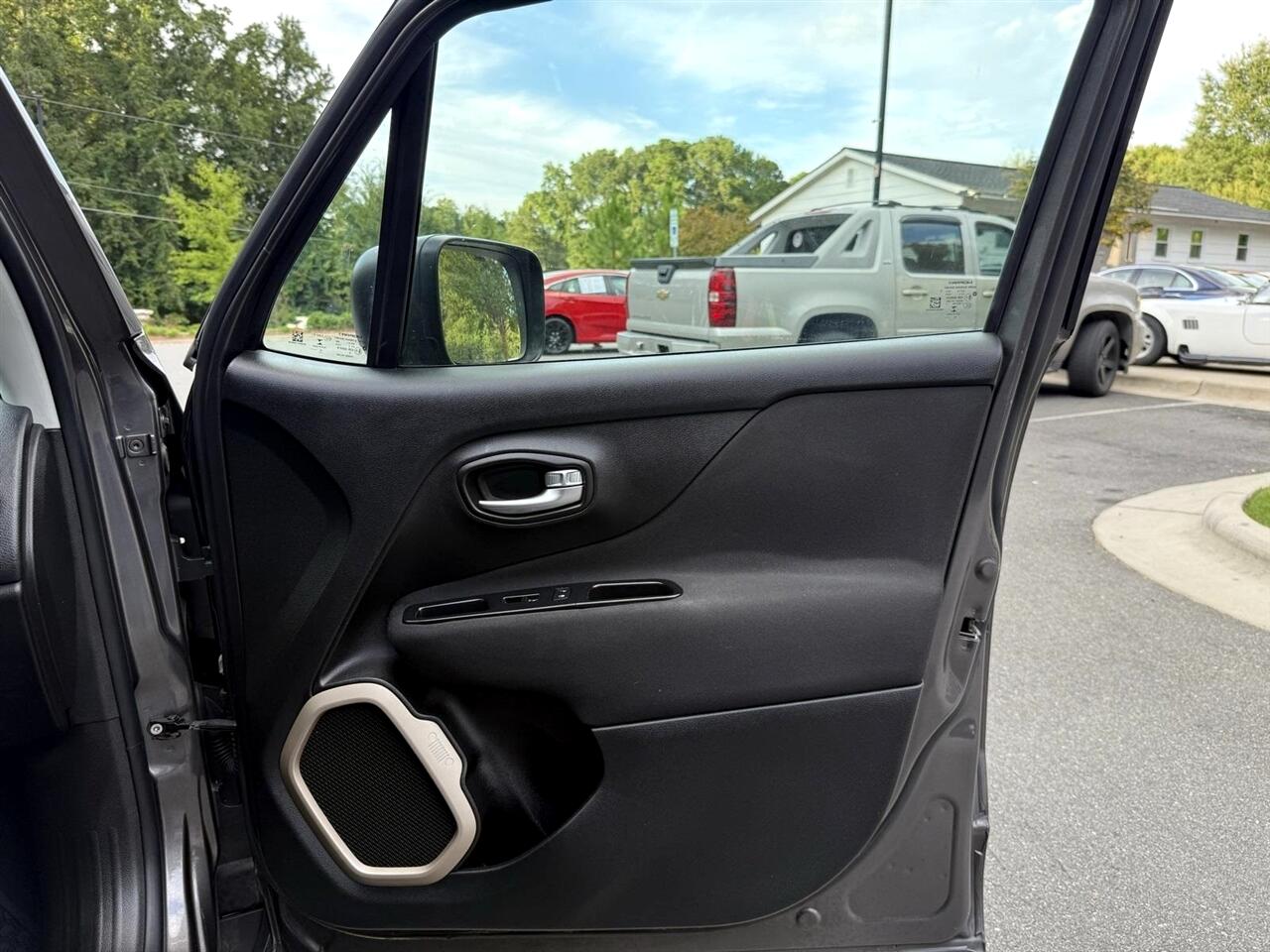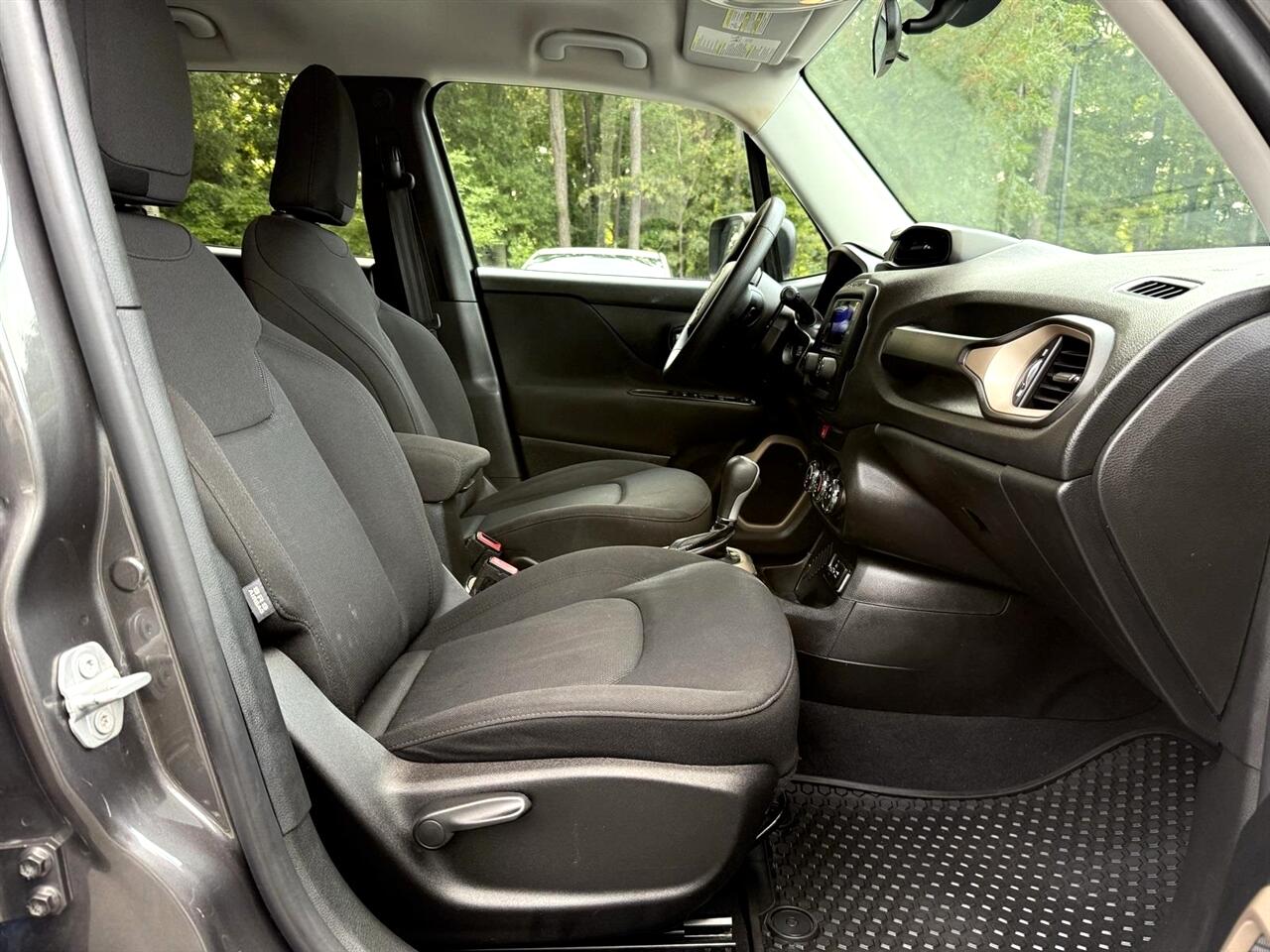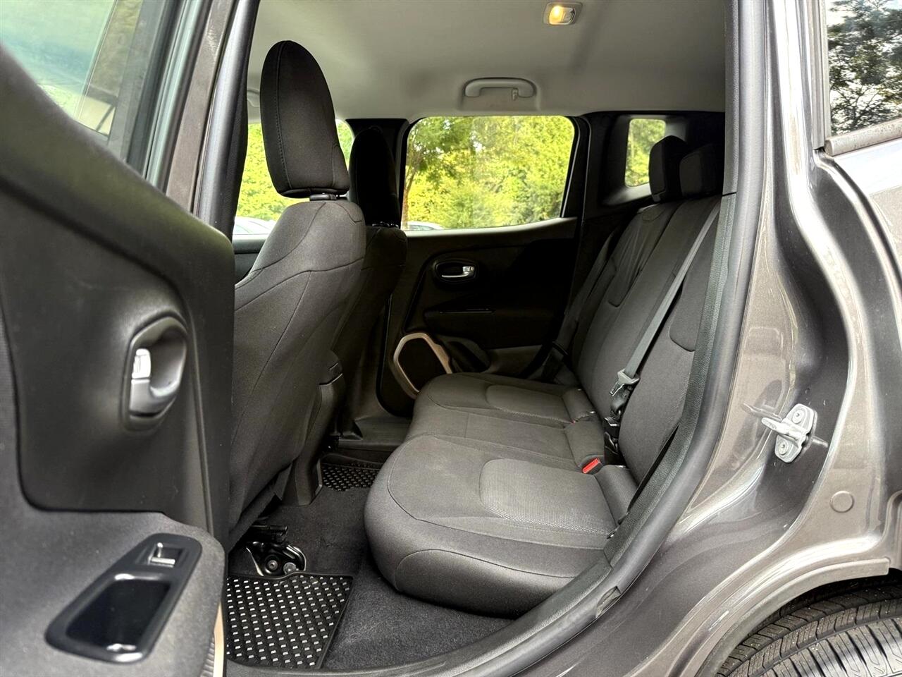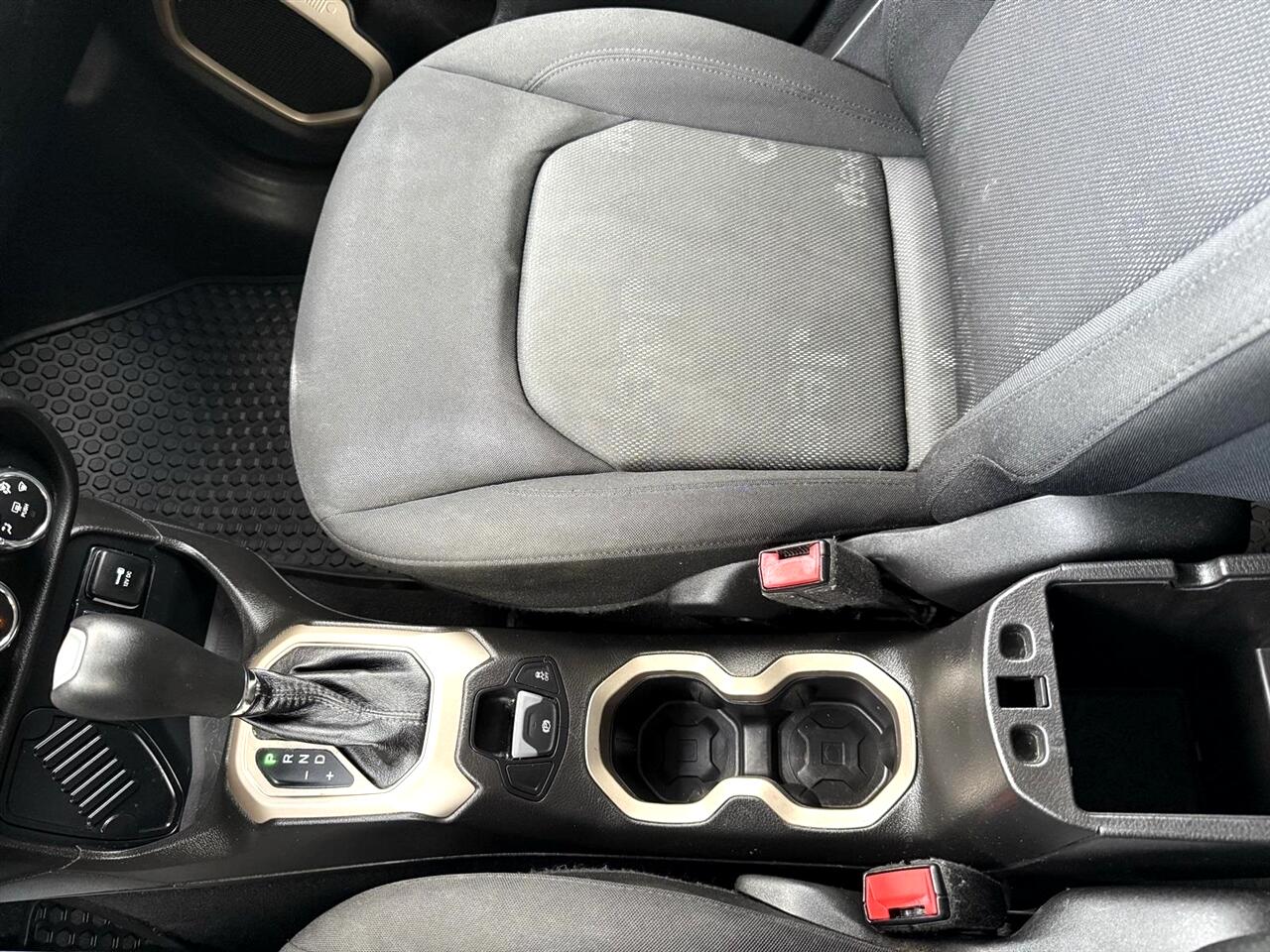 Granite Crystal Metallic Clearcoat 2017 Jeep Renegade Sport FWD 2.4L I4 MultiAir 9-Speed 948TE Automatic Clean CARFAX.16" x 6.5" Aluminum Wheels, 16" x 6.5" Styled Steel Wheels, 3.734 Axle Ratio, 4 Speakers, 4-Wheel Disc Brakes, 4.438 Axle Ratio, ABS brakes, Air Conditioning, AM/FM radio, Anti-whiplash front head restraints, Black Side Roof Rails, Brake assist, Cloth Low-Back Bucket Seats, Compass, Deep Tint Sunscreen Glass, Delay-off headlights, Driver door bin, Driver vanity mirror, Dual front impact airbags, Dual front side impact airbags, Electronic Stability Control, Exterior Mirrors w/Heating Element, Four wheel independent suspension, Front anti-roll bar, Front Bucket Seats, Front Center Armrest, Front reading lights, Illuminated entry, Knee airbag, Low tire pressure warning, Normal Duty Suspension, Occupant sensing airbag, Outside temperature display, Overhead airbag, Overhead console, Panic alarm, Passenger door bin, Passenger vanity mirror, Passive Entry Remote Start Package, Passive Entry/Keyless Go, Power & Air Group, Power Heated Mirrors, Power steering, Power windows, Quick Order Package 27A, Radio data system, Radio: 3.0, Rear anti-roll bar, Rear window defroster, Rear window wiper, Remote keyless entry, Remote Start System, Speed Control, Split folding rear seat, Spoiler, Sport Appearance Group, Steering wheel mounted audio controls, Tachometer, Telescoping steering wheel, Tilt steering wheel, Traction control, Trip computer, Variably intermittent wipers, Voltmeter.