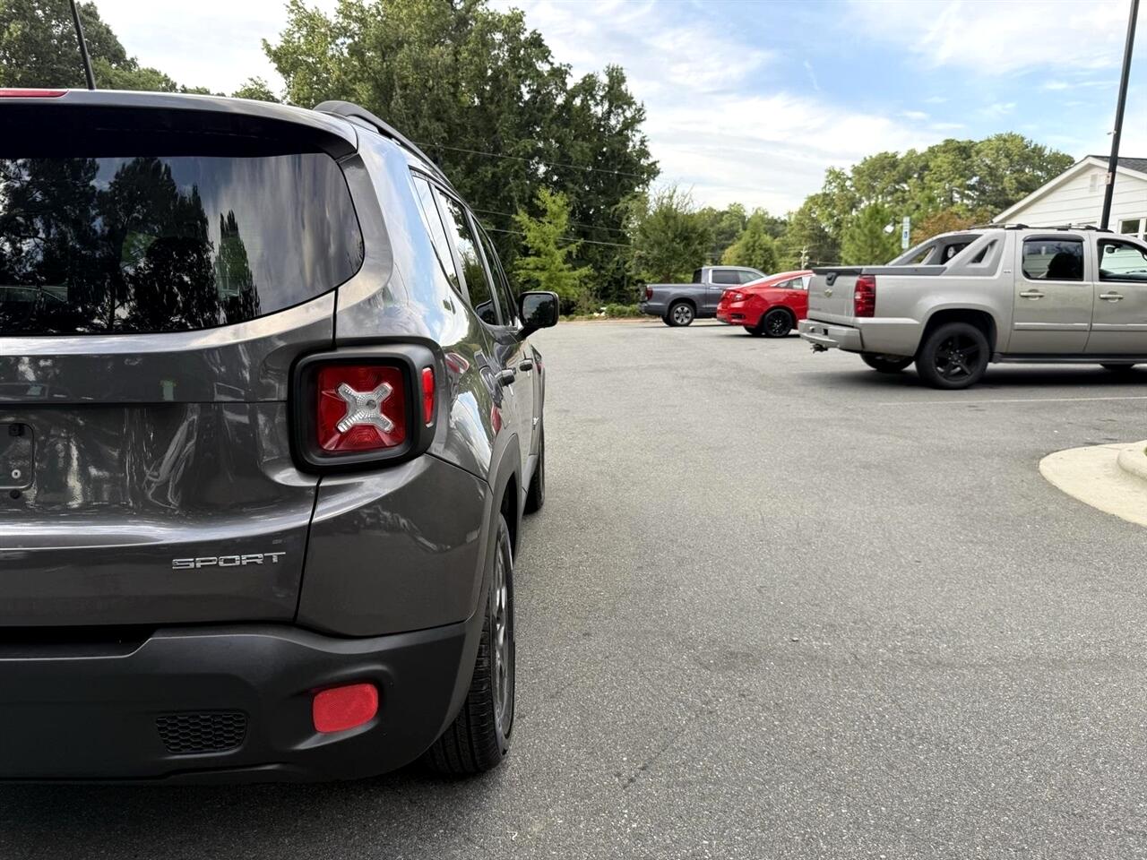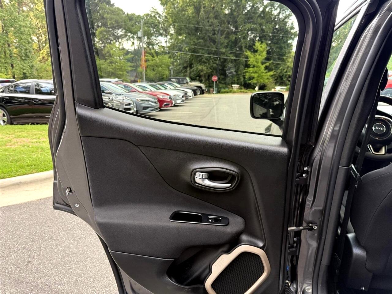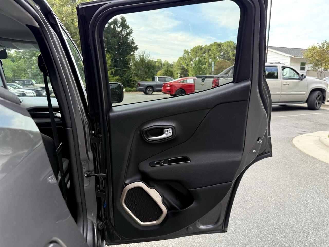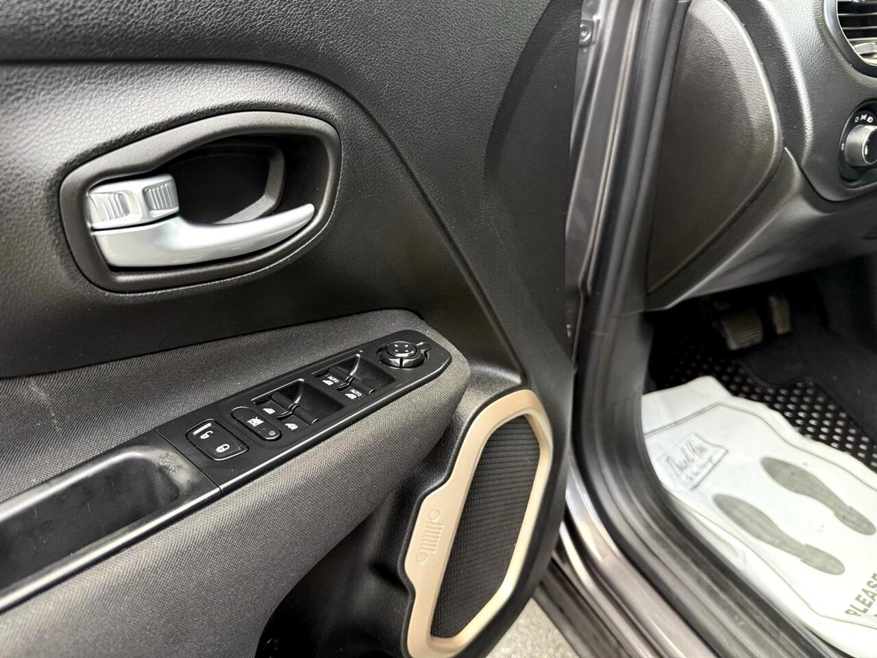 Granite Crystal Metallic Clearcoat 2017 Jeep Renegade Sport FWD 2.4L I4 MultiAir 9-Speed 948TE Automatic Clean CARFAX.16" x 6.5" Aluminum Wheels, 16" x 6.5" Styled Steel Wheels, 3.734 Axle Ratio, 4 Speakers, 4-Wheel Disc Brakes, 4.438 Axle Ratio, ABS brakes, Air Conditioning, AM/FM radio, Anti-whiplash front head restraints, Black Side Roof Rails, Brake assist, Cloth Low-Back Bucket Seats, Compass, Deep Tint Sunscreen Glass, Delay-off headlights, Driver door bin, Driver vanity mirror, Dual front impact airbags, Dual front side impact airbags, Electronic Stability Control, Exterior Mirrors w/Heating Element, Four wheel independent suspension, Front anti-roll bar, Front Bucket Seats, Front Center Armrest, Front reading lights, Illuminated entry, Knee airbag, Low tire pressure warning, Normal Duty Suspension, Occupant sensing airbag, Outside temperature display, Overhead airbag, Overhead console, Panic alarm, Passenger door bin, Passenger vanity mirror, Passive Entry Remote Start Package, Passive Entry/Keyless Go, Power & Air Group, Power Heated Mirrors, Power steering, Power windows, Quick Order Package 27A, Radio data system, Radio: 3.0, Rear anti-roll bar, Rear window defroster, Rear window wiper, Remote keyless entry, Remote Start System, Speed Control, Split folding rear seat, Spoiler, Sport Appearance Group, Steering wheel mounted audio controls, Tachometer, Telescoping steering wheel, Tilt steering wheel, Traction control, Trip computer, Variably intermittent wipers, Voltmeter.