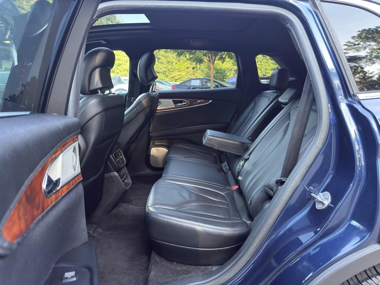Sapphire Blue 2017 Lincoln MKX Reserve AWD 2.7L GTDI V6 6-Speed AutomaticAWD, 10 Speakers, 18" Painted Aluminum Wheels, 3.65 Axle Ratio, 360 Degree Camera, 4-Wheel Disc Brakes, 8" LCD Touchscreen, ABS brakes, Active Park Assist, Adaptive LED Headlamps, Adaptive suspension, Air Conditioning, Alloy wheels, AM/FM radio: SiriusXM, AM/FM Stereo w/Single CD, Auto High-Beam Headlamps, Auto-dimming door mirrors, Auto-dimming Rear-View mirror, Automatic Rain-Sensing Wipers, Automatic temperature control, Brake assist, Bumpers: body-color, CD player, Compass, Compass Display, Delay-off headlights, Driver door bin, Driver vanity mirror, Dual front impact airbags, Dual front side impact airbags, Electronic Stability Control, Emergency communication system: SYNC 3 911 Assist, Equipment Group 102A, Exterior Parking Camera Rear, Four wheel independent suspension, Front anti-roll bar, Front Bucket Seats, Front Center Armrest, Front dual zone A/C, Front fog lights, Front Park Aid Sensors, Front reading lights, Fully automatic headlights, Garage door transmitter: HomeLink, GVWR: 5,620 lbs Payload Package, Heated door mirrors, Heated front seats, Heated Rear Seats, Heated Steering Wheel, High-Intensity Discharge Headlights, Illuminated entry, Knee airbag, Lincoln MKX Climate Package, Lincoln MKX Technology Package, Low tire pressure warning, Luxury Package, Memory seat, Navigation System, Occupant sensing airbag, Outside temperature display, Overhead airbag, Overhead console, Panic alarm, Passenger door bin, Passenger vanity mirror, Power door mirrors, Power driver seat, Power Liftgate, Power moonroof, Power passenger seat, Power steering, Power windows, Prem Lthr-Trimmed Heated/Cooled Bucket Seats (BE), Radio data system, Radio: Revel Ultima System w/19 Speakers & HD, Rear anti-roll bar, Rear Parking Sensors, Rear reading lights, Rear seat center armrest, Rear window defroster, Rear window wiper, Remote keyless entry, Satin Roof Rack Side Rails Without Crossbars, Security system, Speed control, Speed-Sensitive Wipers, Split folding rear seat, Spoiler, Steering wheel memory, Steering wheel mounted A/C controls, Steering wheel mounted audio controls, SYNC 3, Tachometer, Telescoping steering wheel, Tilt steering wheel, Traction control, Trip computer, Turn signal indicator mirrors, Variably intermittent wipers, Ventilated front seats, Wheels: 20" Premium Painted Aluminum w/20 Spokes, Windshield Wiper De-Icer, AWD.