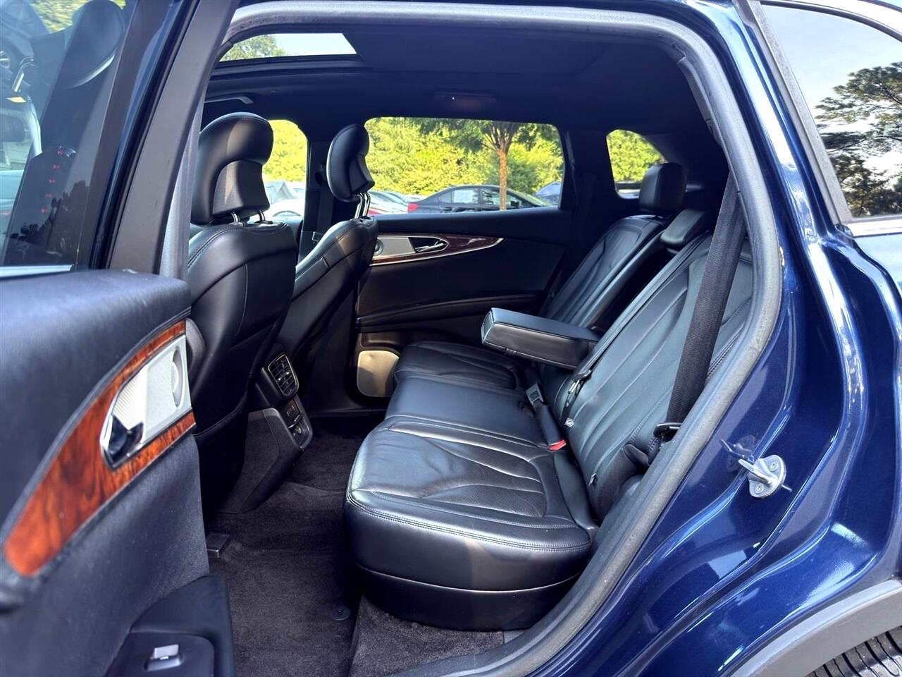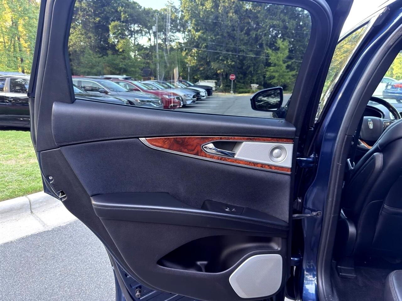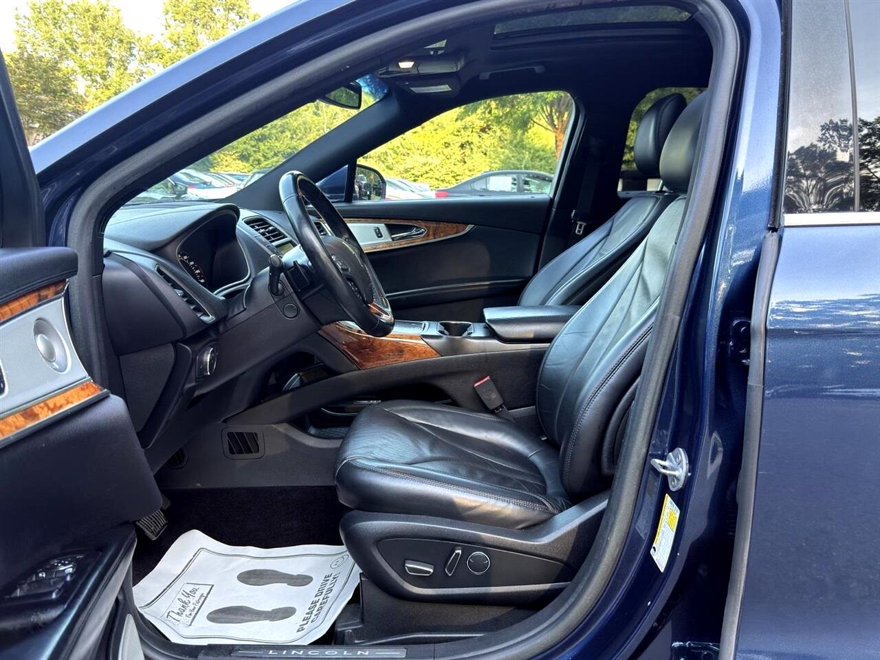 Sapphire Blue 2017 Lincoln MKX Reserve AWD 2.7L GTDI V6 6-Speed AutomaticAWD, 10 Speakers, 18" Painted Aluminum Wheels, 3.65 Axle Ratio, 360 Degree Camera, 4-Wheel Disc Brakes, 8" LCD Touchscreen, ABS brakes, Active Park Assist, Adaptive LED Headlamps, Adaptive suspension, Air Conditioning, Alloy wheels, AM/FM radio: SiriusXM, AM/FM Stereo w/Single CD, Auto High-Beam Headlamps, Auto-dimming door mirrors, Auto-dimming Rear-View mirror, Automatic Rain-Sensing Wipers, Automatic temperature control, Brake assist, Bumpers: body-color, CD player, Compass, Compass Display, Delay-off headlights, Driver door bin, Driver vanity mirror, Dual front impact airbags, Dual front side impact airbags, Electronic Stability Control, Emergency communication system: SYNC 3 911 Assist, Equipment Group 102A, Exterior Parking Camera Rear, Four wheel independent suspension, Front anti-roll bar, Front Bucket Seats, Front Center Armrest, Front dual zone A/C, Front fog lights, Front Park Aid Sensors, Front reading lights, Fully automatic headlights, Garage door transmitter: HomeLink, GVWR: 5,620 lbs Payload Package, Heated door mirrors, Heated front seats, Heated Rear Seats, Heated Steering Wheel, High-Intensity Discharge Headlights, Illuminated entry, Knee airbag, Lincoln MKX Climate Package, Lincoln MKX Technology Package, Low tire pressure warning, Luxury Package, Memory seat, Navigation System, Occupant sensing airbag, Outside temperature display, Overhead airbag, Overhead console, Panic alarm, Passenger door bin, Passenger vanity mirror, Power door mirrors, Power driver seat, Power Liftgate, Power moonroof, Power passenger seat, Power steering, Power windows, Prem Lthr-Trimmed Heated/Cooled Bucket Seats (BE), Radio data system, Radio: Revel Ultima System w/19 Speakers & HD, Rear anti-roll bar, Rear Parking Sensors, Rear reading lights, Rear seat center armrest, Rear window defroster, Rear window wiper, Remote keyless entry, Satin Roof Rack Side Rails Without Crossbars, Security system, Speed control, Speed-Sensitive Wipers, Split folding rear seat, Spoiler, Steering wheel memory, Steering wheel mounted A/C controls, Steering wheel mounted audio controls, SYNC 3, Tachometer, Telescoping steering wheel, Tilt steering wheel, Traction control, Trip computer, Turn signal indicator mirrors, Variably intermittent wipers, Ventilated front seats, Wheels: 20" Premium Painted Aluminum w/20 Spokes, Windshield Wiper De-Icer, AWD.