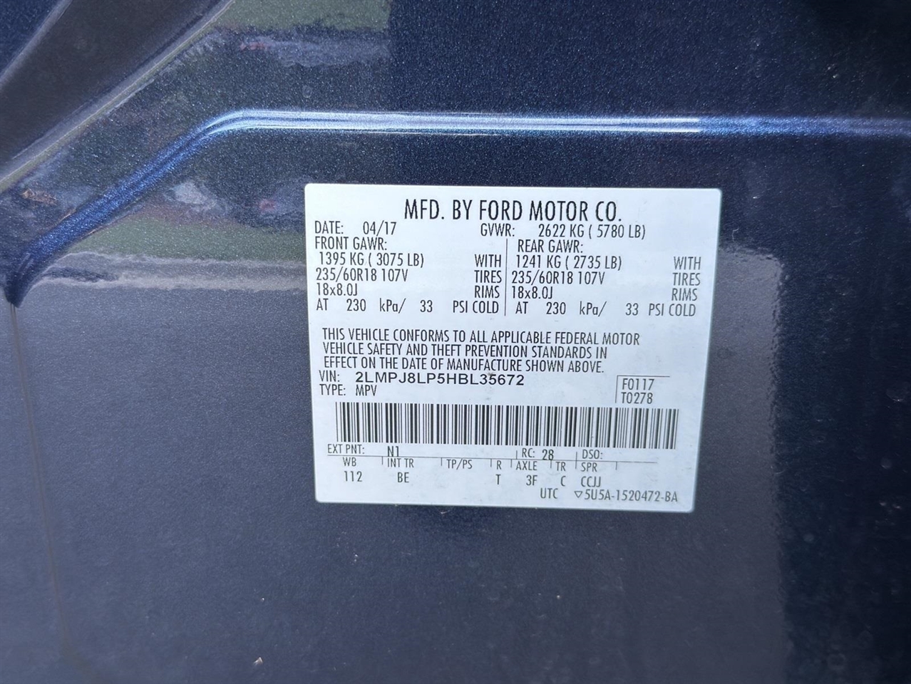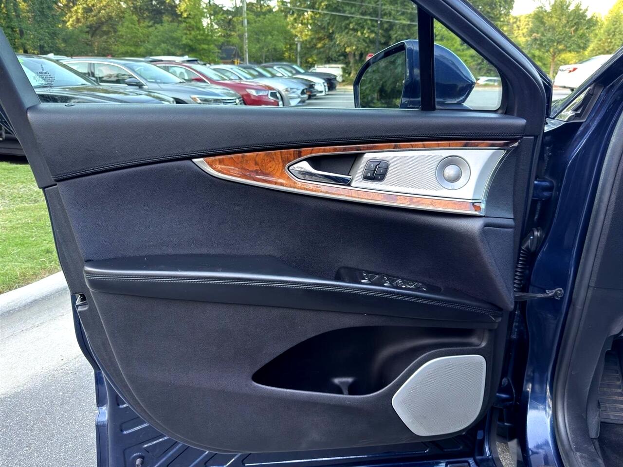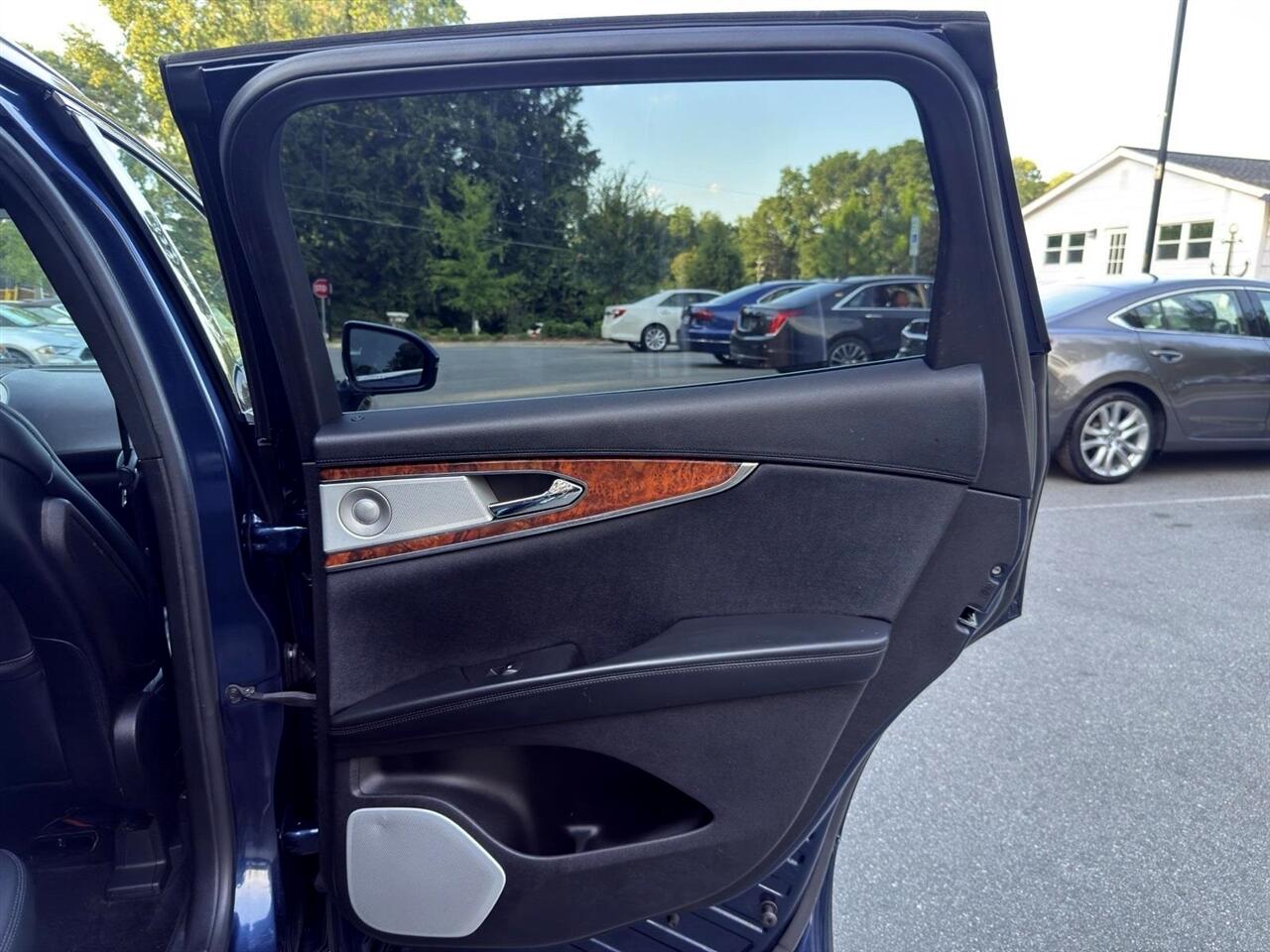 Sapphire Blue 2017 Lincoln MKX Reserve AWD 2.7L GTDI V6 6-Speed AutomaticAWD, 10 Speakers, 18" Painted Aluminum Wheels, 3.65 Axle Ratio, 360 Degree Camera, 4-Wheel Disc Brakes, 8" LCD Touchscreen, ABS brakes, Active Park Assist, Adaptive LED Headlamps, Adaptive suspension, Air Conditioning, Alloy wheels, AM/FM radio: SiriusXM, AM/FM Stereo w/Single CD, Auto High-Beam Headlamps, Auto-dimming door mirrors, Auto-dimming Rear-View mirror, Automatic Rain-Sensing Wipers, Automatic temperature control, Brake assist, Bumpers: body-color, CD player, Compass, Compass Display, Delay-off headlights, Driver door bin, Driver vanity mirror, Dual front impact airbags, Dual front side impact airbags, Electronic Stability Control, Emergency communication system: SYNC 3 911 Assist, Equipment Group 102A, Exterior Parking Camera Rear, Four wheel independent suspension, Front anti-roll bar, Front Bucket Seats, Front Center Armrest, Front dual zone A/C, Front fog lights, Front Park Aid Sensors, Front reading lights, Fully automatic headlights, Garage door transmitter: HomeLink, GVWR: 5,620 lbs Payload Package, Heated door mirrors, Heated front seats, Heated Rear Seats, Heated Steering Wheel, High-Intensity Discharge Headlights, Illuminated entry, Knee airbag, Lincoln MKX Climate Package, Lincoln MKX Technology Package, Low tire pressure warning, Luxury Package, Memory seat, Navigation System, Occupant sensing airbag, Outside temperature display, Overhead airbag, Overhead console, Panic alarm, Passenger door bin, Passenger vanity mirror, Power door mirrors, Power driver seat, Power Liftgate, Power moonroof, Power passenger seat, Power steering, Power windows, Prem Lthr-Trimmed Heated/Cooled Bucket Seats (BE), Radio data system, Radio: Revel Ultima System w/19 Speakers & HD, Rear anti-roll bar, Rear Parking Sensors, Rear reading lights, Rear seat center armrest, Rear window defroster, Rear window wiper, Remote keyless entry, Satin Roof Rack Side Rails Without Crossbars, Security system, Speed control, Speed-Sensitive Wipers, Split folding rear seat, Spoiler, Steering wheel memory, Steering wheel mounted A/C controls, Steering wheel mounted audio controls, SYNC 3, Tachometer, Telescoping steering wheel, Tilt steering wheel, Traction control, Trip computer, Turn signal indicator mirrors, Variably intermittent wipers, Ventilated front seats, Wheels: 20" Premium Painted Aluminum w/20 Spokes, Windshield Wiper De-Icer, AWD.