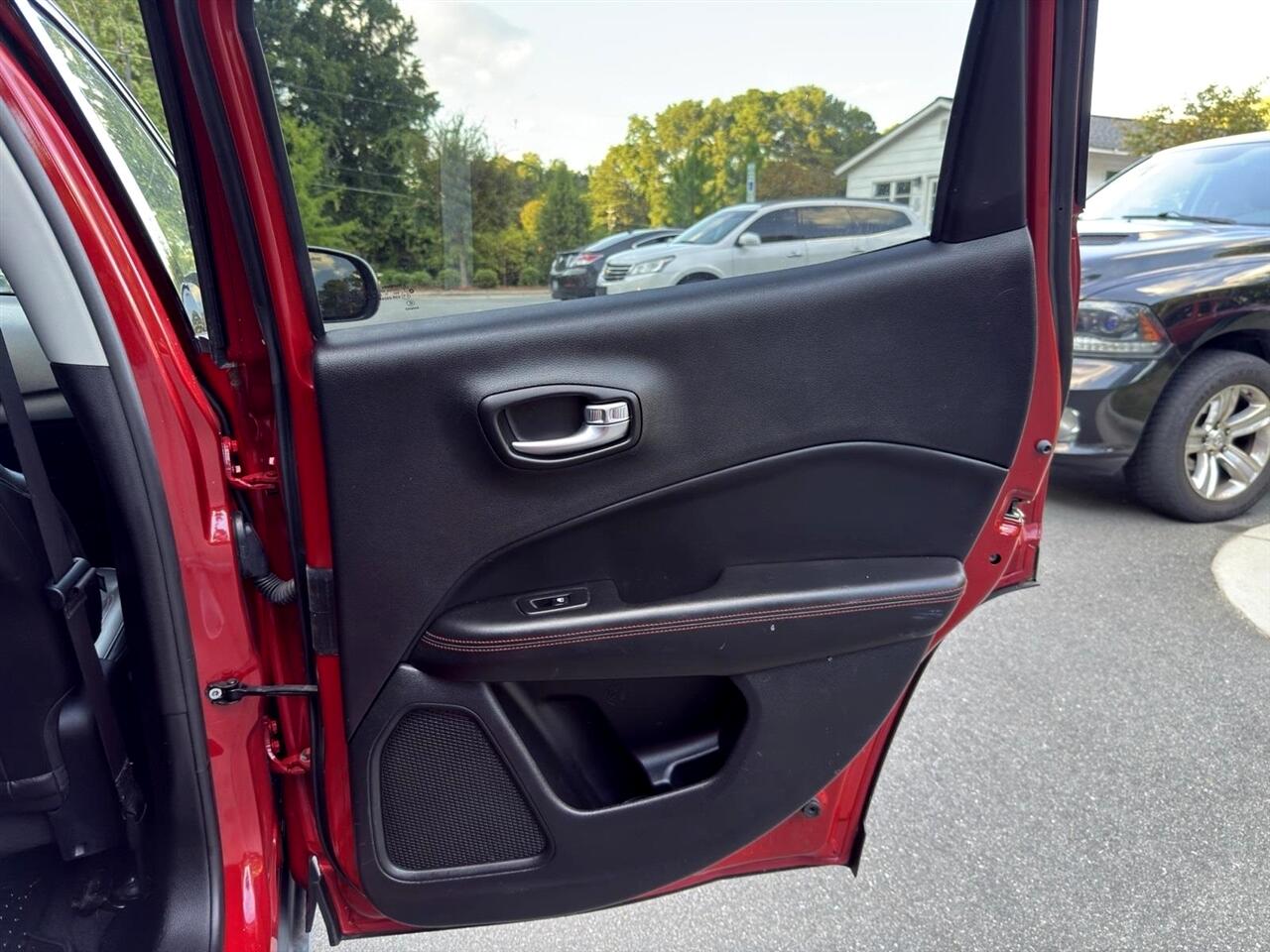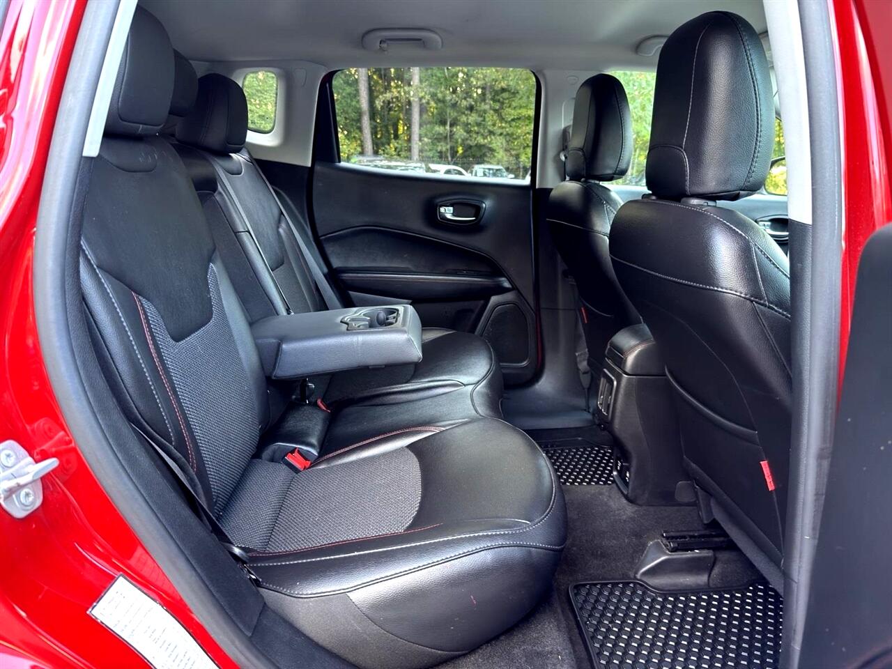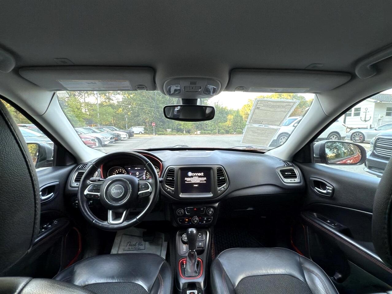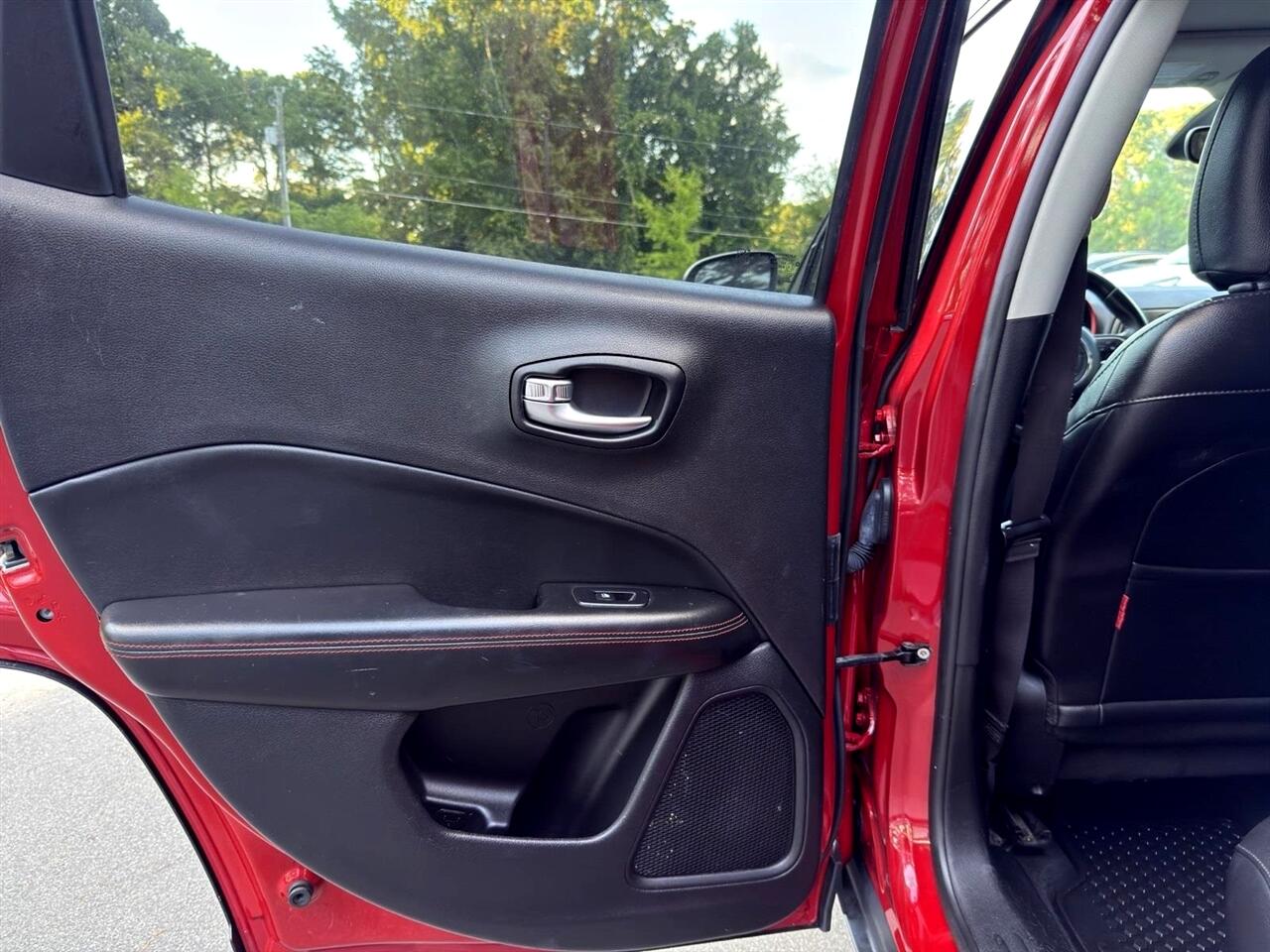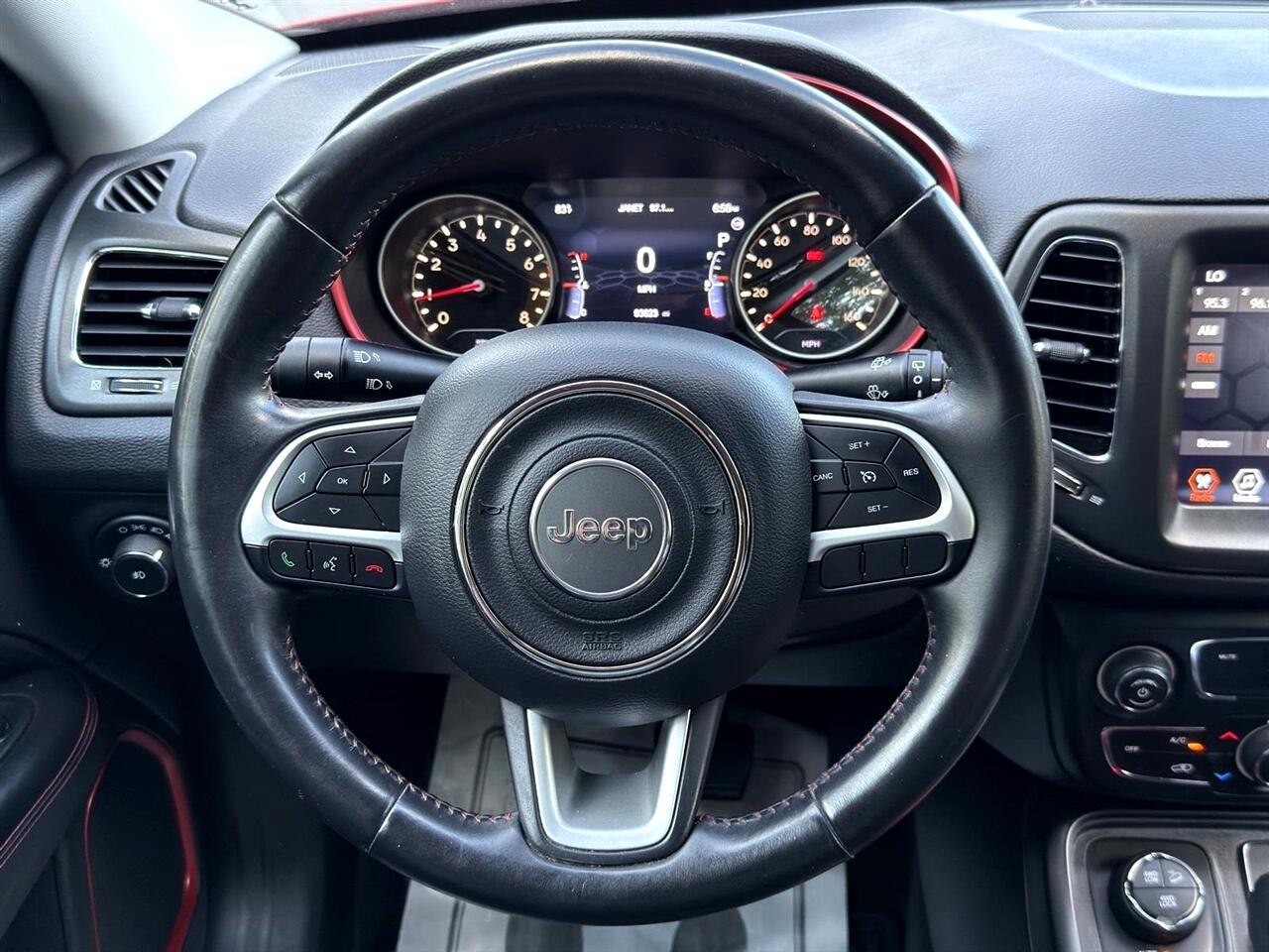 Redline Pearlcoat 2019 Jeep Compass Trailhawk 4WD 2.4L I4 9-Speed Automatic4WD, 4-Wheel Disc Brakes, 4.334 Axle Ratio, 6 Speakers, ABS brakes, Air Conditioning, Alloy wheels, AM/FM radio: SiriusXM, Anti-whiplash front head restraints, Apple CarPlay/Android Auto, Automatic temperature control, Brake assist, Bumpers: body-color, Compass, Delay-off headlights, Driver door bin, Driver vanity mirror, Dual front impact airbags, Dual front side impact airbags, Electronic Stability Control, Four wheel independent suspension, Front anti-roll bar, Front Bucket Seats, Front Center Armrest w/Storage, Front dual zone A/C, Front fog lights, Front reading lights, Fully automatic headlights, Google Android Auto, GPS Antenna Input, Heated door mirrors, Illuminated entry, Knee airbag, Leather Shift Knob, Low tire pressure warning, Manufacturer's Statement of Origin, Occupant sensing airbag, Outside temperature display, Overhead airbag, Overhead console, Panic alarm, ParkView Rear Back-Up Camera, Passenger door bin, Passenger vanity mirror, Power door mirrors, Power steering, Power windows, Premium Cloth/Leather Trim Bucket Seats, Quick Order Package 27E (DISC), Radio: Uconnect 4 w/8.4" Display, Rear anti-roll bar, Rear seat center armrest, Rear window defroster, Rear window wiper, Remote keyless entry, Roof rack: rails only, Speed control, Split folding rear seat, Spoiler, Steering wheel mounted audio controls, Tachometer, Telescoping steering wheel, Tilt steering wheel, Traction control, Trip computer, Turn signal indicator mirrors, USB Host Flip, Variably intermittent wipers, Wheels: 17" x 6.5" Painted/Bright Aluminum, 4WD.