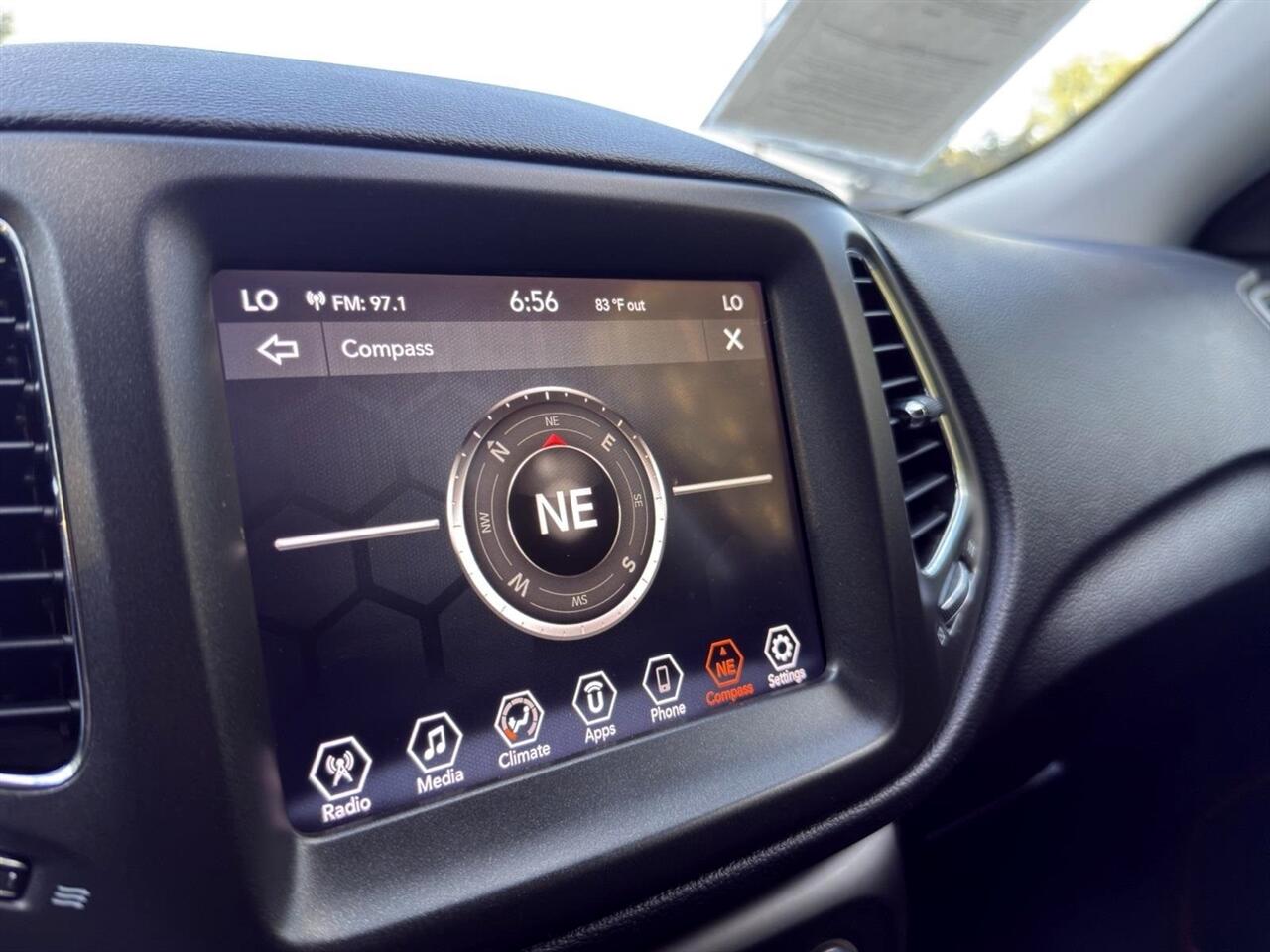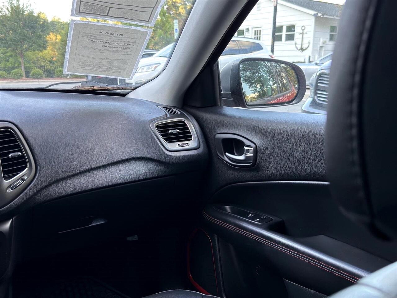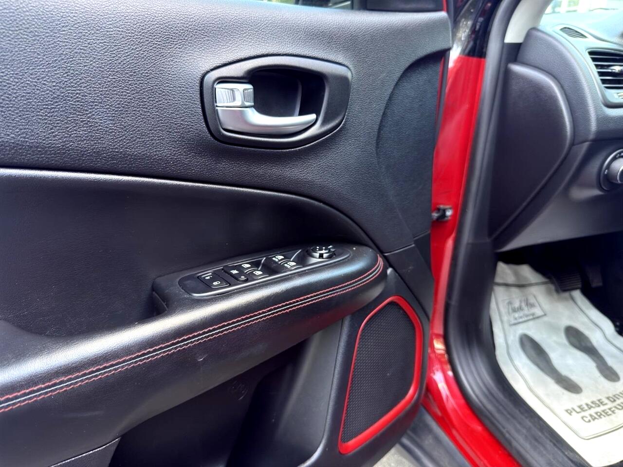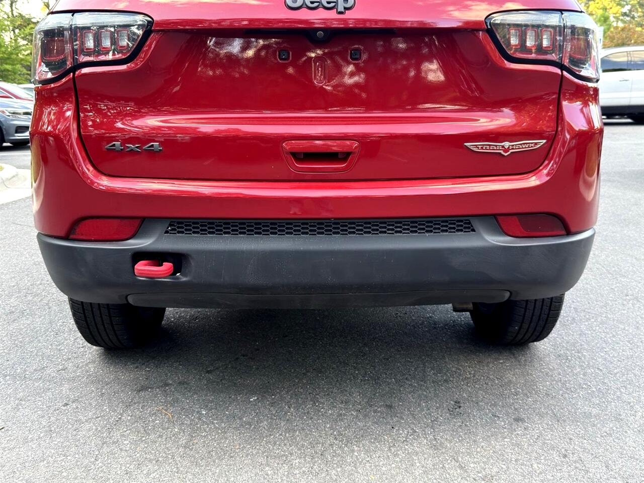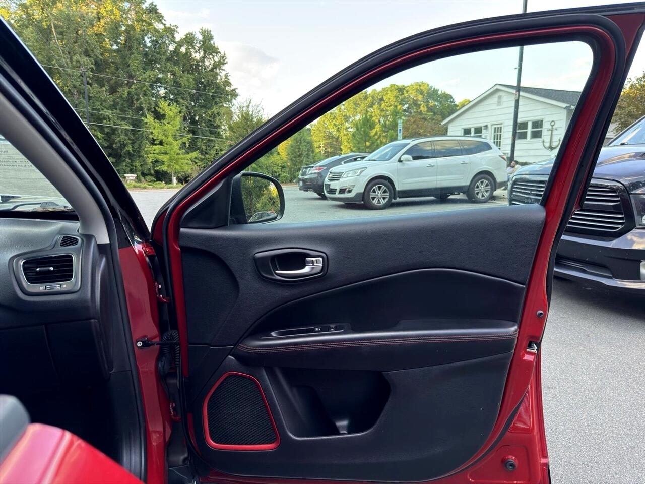 Redline Pearlcoat 2019 Jeep Compass Trailhawk 4WD 2.4L I4 9-Speed Automatic4WD, 4-Wheel Disc Brakes, 4.334 Axle Ratio, 6 Speakers, ABS brakes, Air Conditioning, Alloy wheels, AM/FM radio: SiriusXM, Anti-whiplash front head restraints, Apple CarPlay/Android Auto, Automatic temperature control, Brake assist, Bumpers: body-color, Compass, Delay-off headlights, Driver door bin, Driver vanity mirror, Dual front impact airbags, Dual front side impact airbags, Electronic Stability Control, Four wheel independent suspension, Front anti-roll bar, Front Bucket Seats, Front Center Armrest w/Storage, Front dual zone A/C, Front fog lights, Front reading lights, Fully automatic headlights, Google Android Auto, GPS Antenna Input, Heated door mirrors, Illuminated entry, Knee airbag, Leather Shift Knob, Low tire pressure warning, Manufacturer's Statement of Origin, Occupant sensing airbag, Outside temperature display, Overhead airbag, Overhead console, Panic alarm, ParkView Rear Back-Up Camera, Passenger door bin, Passenger vanity mirror, Power door mirrors, Power steering, Power windows, Premium Cloth/Leather Trim Bucket Seats, Quick Order Package 27E (DISC), Radio: Uconnect 4 w/8.4" Display, Rear anti-roll bar, Rear seat center armrest, Rear window defroster, Rear window wiper, Remote keyless entry, Roof rack: rails only, Speed control, Split folding rear seat, Spoiler, Steering wheel mounted audio controls, Tachometer, Telescoping steering wheel, Tilt steering wheel, Traction control, Trip computer, Turn signal indicator mirrors, USB Host Flip, Variably intermittent wipers, Wheels: 17" x 6.5" Painted/Bright Aluminum, 4WD.