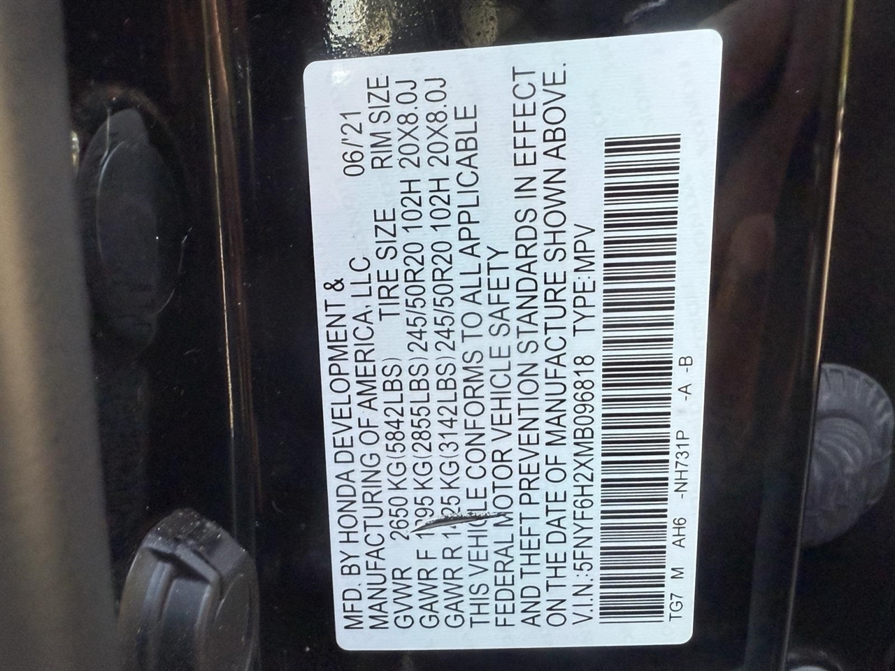 Black 2021 Honda Pilot Special Edition AWD 3.5L V6 24V SOHC i-VTEC 9-Speed Automatic CARFAX One-Owner.AWD, 3rd row seats: split-bench, 4-Wheel Disc Brakes, 4.33 Axle Ratio, 7 Speakers, A/V remote: CabinControl, ABS brakes, Air Conditioning, Alloy wheels, AM/FM radio: SiriusXM, Apple CarPlay/Android Auto, Auto High-beam Headlights, Auto-dimming Rear-View mirror, Automatic temperature control, Blind Spot Information (BSI) System warning, Brake assist, Bumpers: body-color, Delay-off headlights, Driver door bin, Driver vanity mirror, Dual front impact airbags, Dual front side impact airbags, Electronic Stability Control, Emergency communication system: HondaLink Assist, Exterior Parking Camera Rear, Forward collision: Collision Mitigation Braking System (CMBS) + FCW mitigation, Four wheel independent suspension, Front anti-roll bar, Front Bucket Seats, Front Center Armrest, Front dual zone A/C, Front fog lights, Front reading lights, Fully automatic headlights, Garage door transmitter: HomeLink, Heated door mirrors, Heated Front Bucket Seats, Heated front seats, Illuminated entry, Lane departure: Lane Keeping Assist System (LKAS) active, Leather Seat Trim, Low tire pressure warning, Memory seat, Occupant sensing airbag, Outside temperature display, Overhead airbag, Overhead console, Panic alarm, Passenger door bin, Passenger vanity mirror, Power door mirrors, Power driver seat, Power Liftgate, Power moonroof, Power passenger seat, Power steering, Power windows, Radio data system, Radio: 215-Watt Audio System, Rear air conditioning, Rear anti-roll bar, Rear reading lights, Rear seat center armrest, Rear window defroster, Rear window wiper, Reclining 3rd row seat, Remote keyless entry, Roof rack: rails only, Security system, Speed control, Speed-sensing steering, Speed-Sensitive Wipers, Split folding rear seat, Spoiler, Steering wheel mounted audio controls, Tachometer, Telescoping steering wheel, Tilt steering wheel, Traction control, Trip computer, Turn signal indicator mirrors, Variably intermittent wipers, Wheels: 20" Exclusive Black-Painted Alloy, AWD.