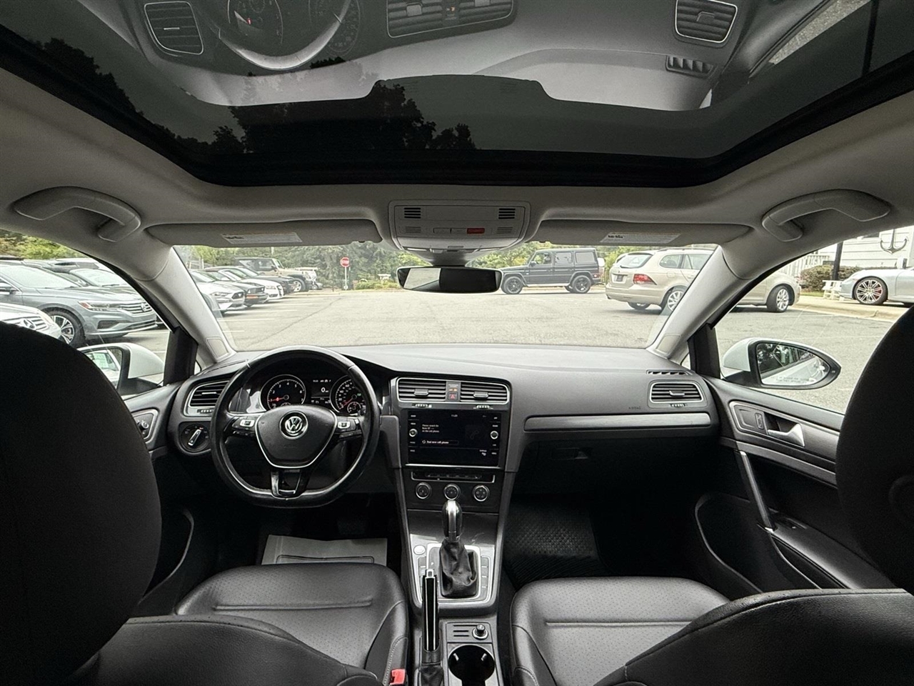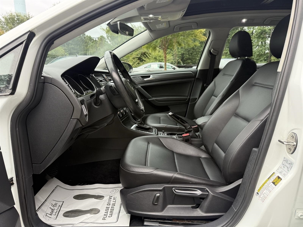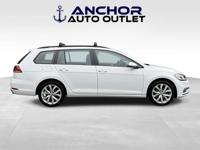 Pure White 2019 Volkswagen Golf SportWagen SE FWD 1.4L TSI 8-Speed Automatic with Tiptronic17" Alloy Wheels, 4-Wheel Disc Brakes, 6 Speakers, ABS brakes, Air Conditioning, Alloy wheels, AM/FM radio: SiriusXM, Anti-whiplash front head restraints, Auto High-beam Headlights, Auto-dimming Rear-View mirror, Brake assist, Bumpers: body-color, CD player, Compass, Delay-off headlights, Driver door bin, Driver vanity mirror, Dual front impact airbags, Dual front side impact airbags, Electronic Stability Control, Emergency communication system: VW Car-Net services (capabilities require enrollment or subscription), Exterior Parking Camera Rear, Four wheel independent suspension, Front anti-roll bar, Front Bucket Seats, Front Center Armrest, Front fog lights, Front reading lights, Fully automatic headlights, Heated door mirrors, Heated Front Comfort Seats, Heated front seats, Illuminated entry, Leather Shift Knob, Leather steering wheel, Low tire pressure warning, Occupant sensing airbag, Outside temperature display, Overhead airbag, Overhead console, Panic alarm, Passenger door bin, Passenger vanity mirror, Power door mirrors, Power driver seat, Power moonroof, Power passenger seat, Power steering, Power windows, Radio data system, Radio: Composition Media w/8" Touchscreen, Rain sensing wipers, Rear anti-roll bar, Rear reading lights, Rear seat center armrest, Rear window defroster, Rear window wiper, Remote keyless entry, Roof rack: rails only, Speed control, Speed-sensing steering, Speed-Sensitive Wipers, Split folding rear seat, Steering wheel mounted audio controls, Tachometer, Telescoping steering wheel, Tilt steering wheel, Traction control, Trip computer, Turn signal indicator mirrors, V-Tex Leatherette Seating Surfaces, Variably intermittent wipers.