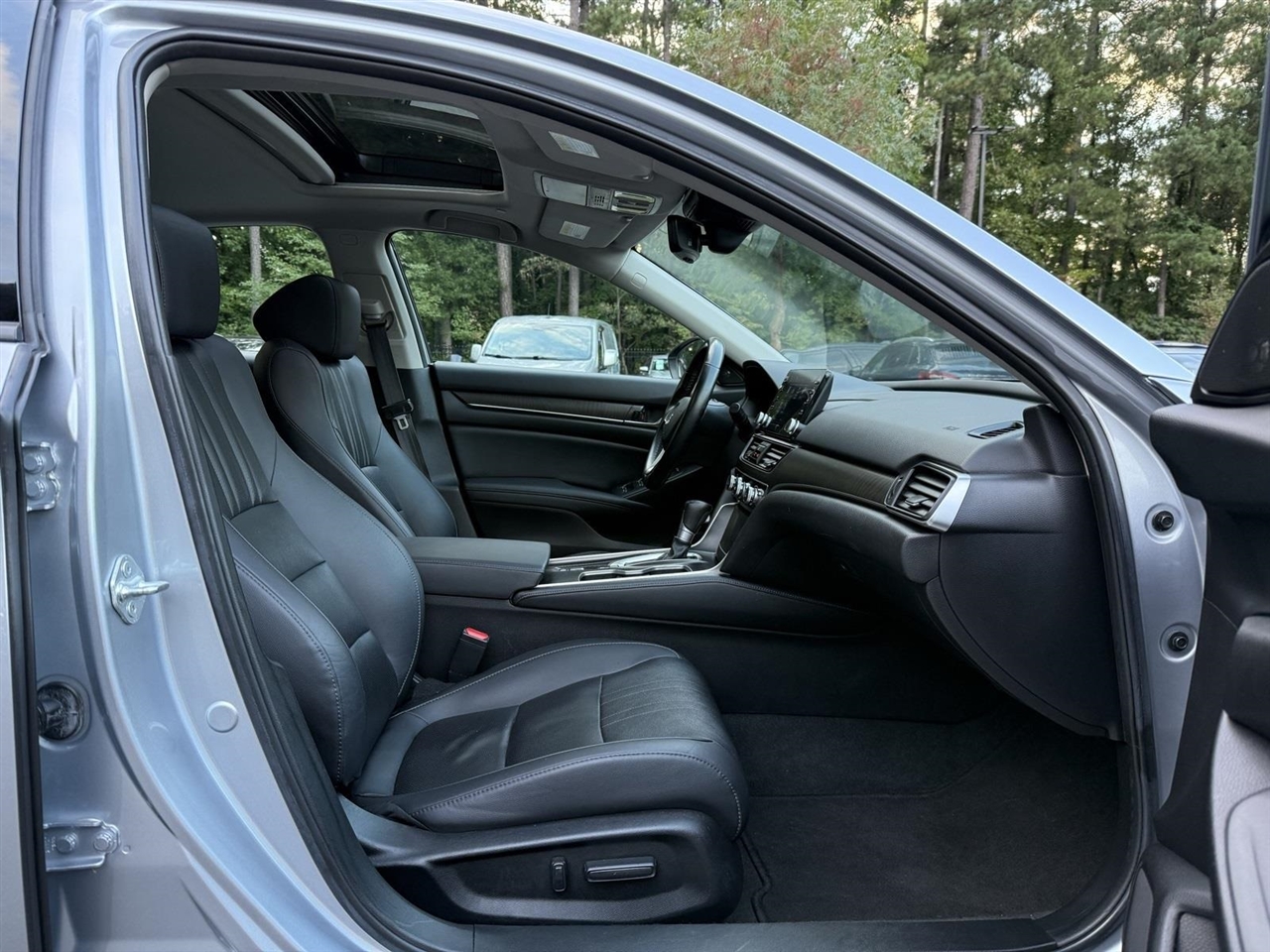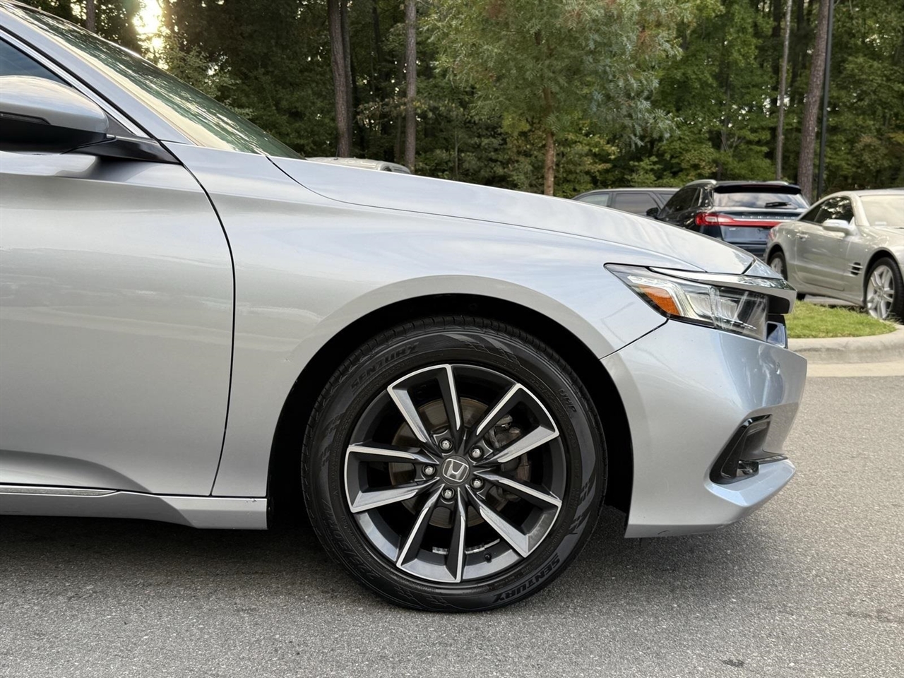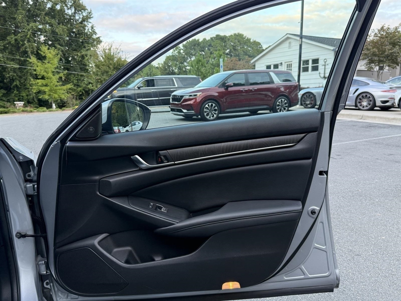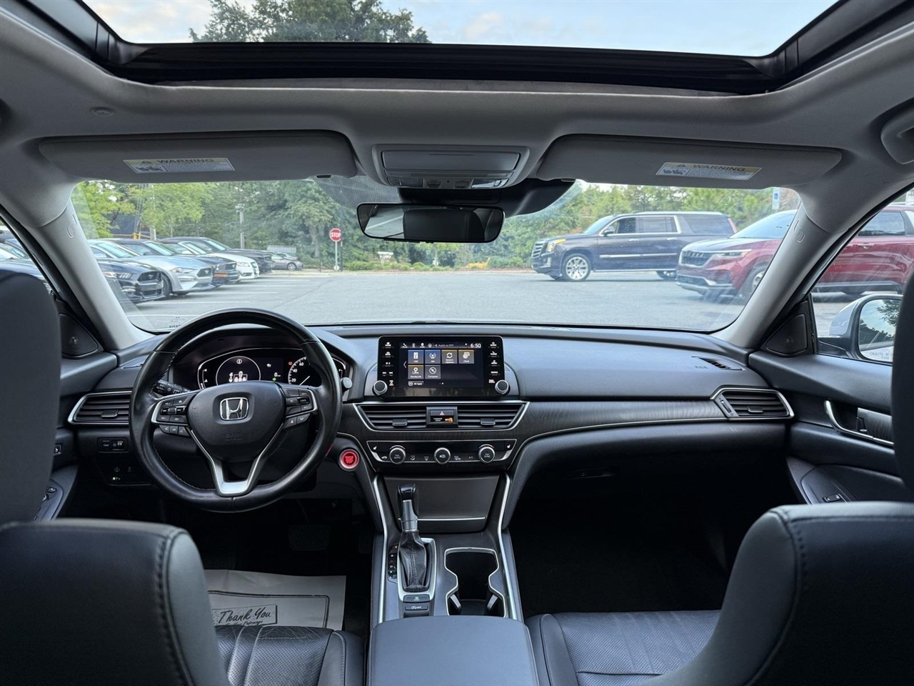 White 2021 Honda Accord EX-L FWD 1.5T I4 DOHC 16V Turbocharged VTEC CVT Clean CARFAX.Black Leather, 10 Speakers, 17" Machine-Finished Alloy Wheels, 4-Wheel Disc Brakes, ABS brakes, Adaptive Cruise Control: Adaptive Cruise Control (ACC) with Low-Speed Follow, Air Conditioning, Alloy wheels, AM/FM radio: SiriusXM, Apple CarPlay/Android Auto, Auto High-beam Headlights, Auto-dimming Rear-View mirror, Automatic temperature control, Blind Spot Information (BSI) System warning, Brake assist, Bumpers: body-color, Delay-off headlights, Driver door bin, Driver vanity mirror, Dual front impact airbags, Dual front side impact airbags, Electronic Stability Control, Emergency communication system: HondaLink, Exterior Parking Camera Rear, Forward collision: Collision Mitigation Braking System (CMBS) + FCW mitigation, Four wheel independent suspension, Front anti-roll bar, Front Bucket Seats, Front Center Armrest, Front dual zone A/C, Front fog lights, Front reading lights, Fully automatic headlights, Garage door transmitter: HomeLink, Heated door mirrors, Heated Front Bucket Seats, Heated front seats, Illuminated entry, Knee airbag, Lane Departure Warning System, Leather Shift Knob, Leather steering wheel, Leather-Trimmed Seats, Low tire pressure warning, Memory seat, Occupant sensing airbag, Outside temperature display, Overhead airbag, Overhead console, Panic alarm, Passenger door bin, Passenger vanity mirror, Power door mirrors, Power driver seat, Power moonroof, Power passenger seat, Power steering, Power windows, Radio data system, Radio: 450-Watt AM/FM/HD Premium Audio System, Rear anti-roll bar, Rear seat center armrest, Rear window defroster, Remote keyless entry, Security system, Speed control, Speed-sensing steering, Speed-Sensitive Wipers, Split folding rear seat, Steering wheel mounted audio controls, Tachometer, Telescoping steering wheel, Tilt steering wheel, Traction control, Trip computer, Turn signal indicator mirrors, Variably intermittent wipers, Black Leather.