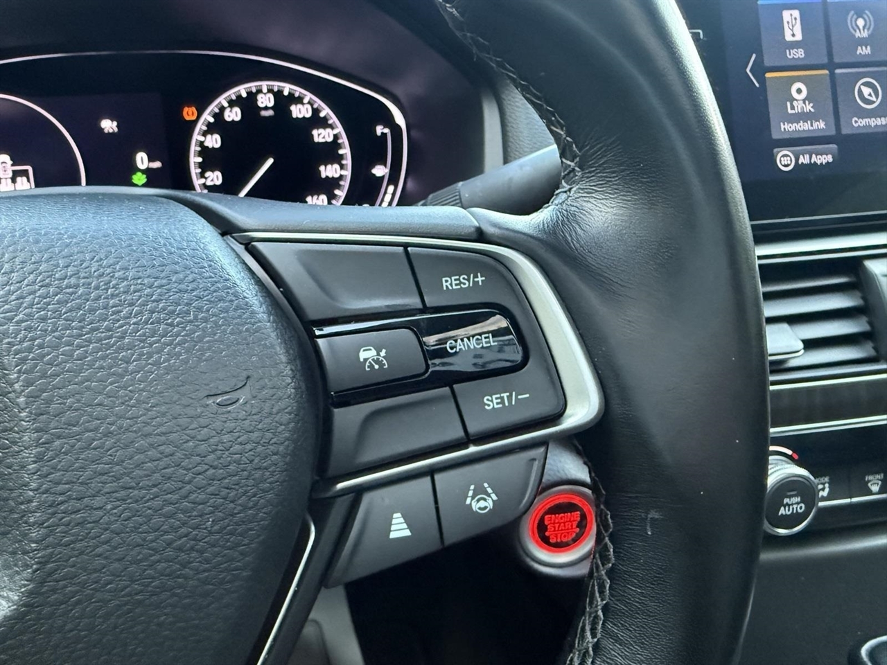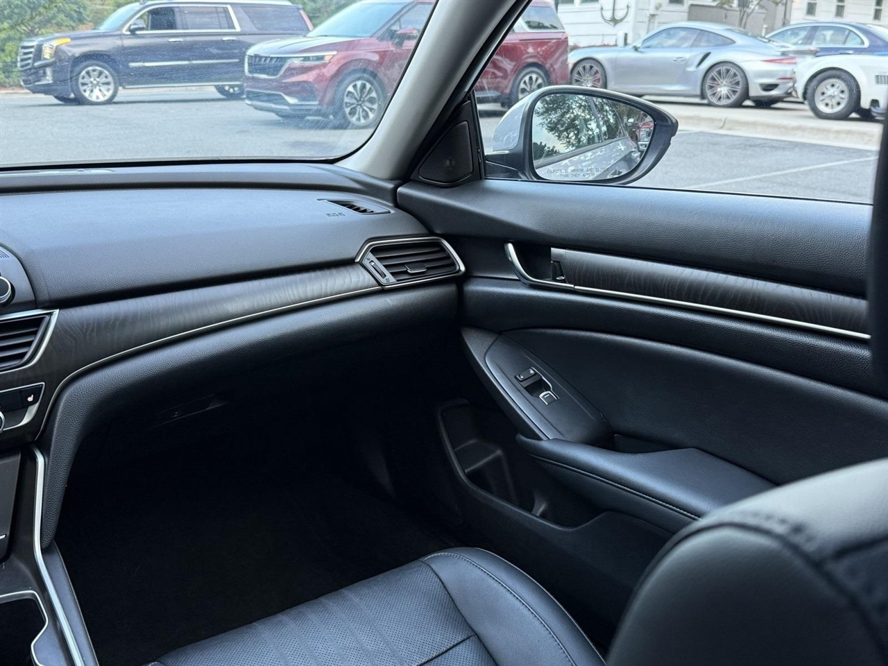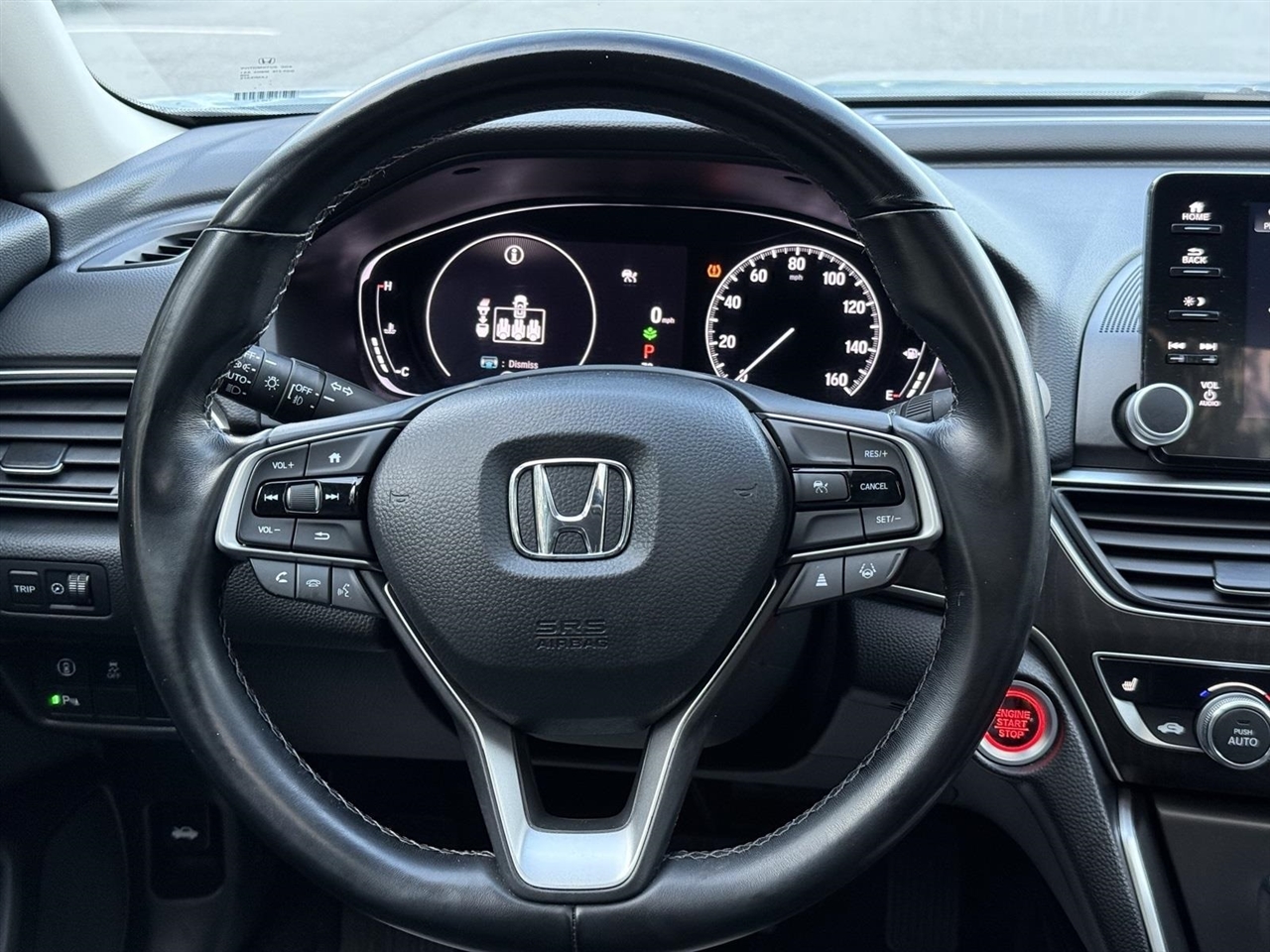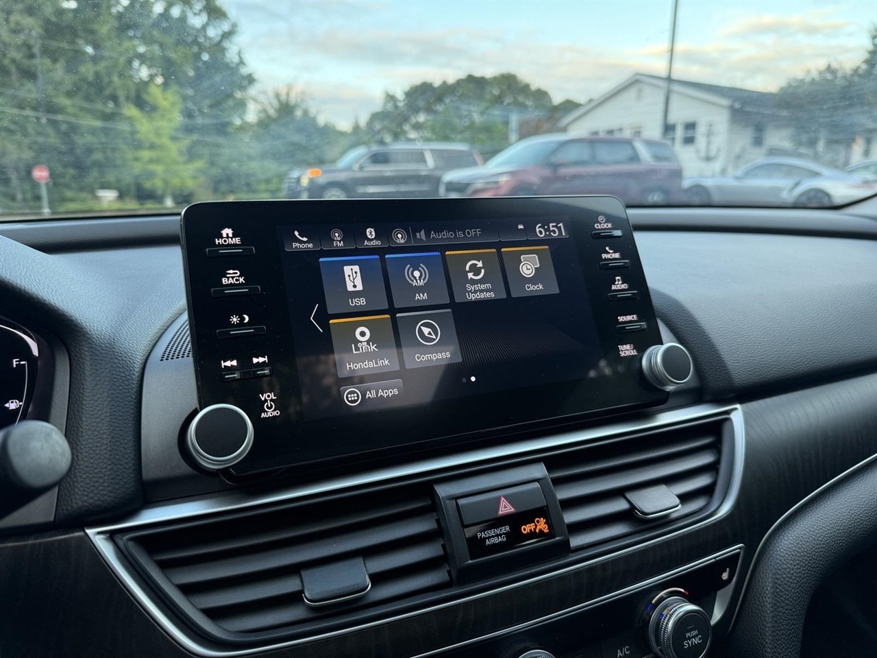 White 2021 Honda Accord EX-L FWD 1.5T I4 DOHC 16V Turbocharged VTEC CVT Clean CARFAX.Black Leather, 10 Speakers, 17" Machine-Finished Alloy Wheels, 4-Wheel Disc Brakes, ABS brakes, Adaptive Cruise Control: Adaptive Cruise Control (ACC) with Low-Speed Follow, Air Conditioning, Alloy wheels, AM/FM radio: SiriusXM, Apple CarPlay/Android Auto, Auto High-beam Headlights, Auto-dimming Rear-View mirror, Automatic temperature control, Blind Spot Information (BSI) System warning, Brake assist, Bumpers: body-color, Delay-off headlights, Driver door bin, Driver vanity mirror, Dual front impact airbags, Dual front side impact airbags, Electronic Stability Control, Emergency communication system: HondaLink, Exterior Parking Camera Rear, Forward collision: Collision Mitigation Braking System (CMBS) + FCW mitigation, Four wheel independent suspension, Front anti-roll bar, Front Bucket Seats, Front Center Armrest, Front dual zone A/C, Front fog lights, Front reading lights, Fully automatic headlights, Garage door transmitter: HomeLink, Heated door mirrors, Heated Front Bucket Seats, Heated front seats, Illuminated entry, Knee airbag, Lane Departure Warning System, Leather Shift Knob, Leather steering wheel, Leather-Trimmed Seats, Low tire pressure warning, Memory seat, Occupant sensing airbag, Outside temperature display, Overhead airbag, Overhead console, Panic alarm, Passenger door bin, Passenger vanity mirror, Power door mirrors, Power driver seat, Power moonroof, Power passenger seat, Power steering, Power windows, Radio data system, Radio: 450-Watt AM/FM/HD Premium Audio System, Rear anti-roll bar, Rear seat center armrest, Rear window defroster, Remote keyless entry, Security system, Speed control, Speed-sensing steering, Speed-Sensitive Wipers, Split folding rear seat, Steering wheel mounted audio controls, Tachometer, Telescoping steering wheel, Tilt steering wheel, Traction control, Trip computer, Turn signal indicator mirrors, Variably intermittent wipers, Black Leather.