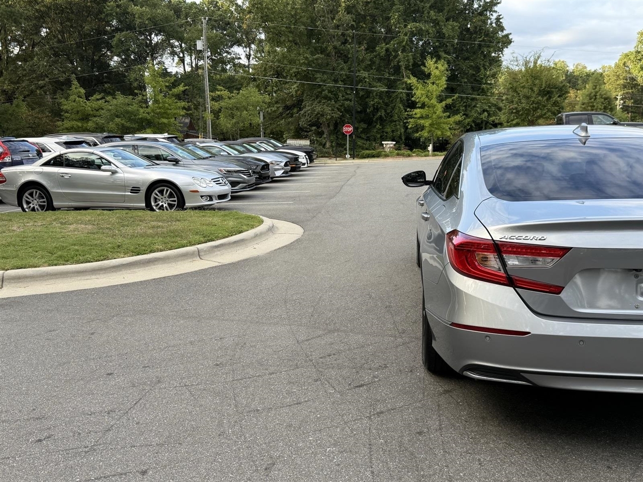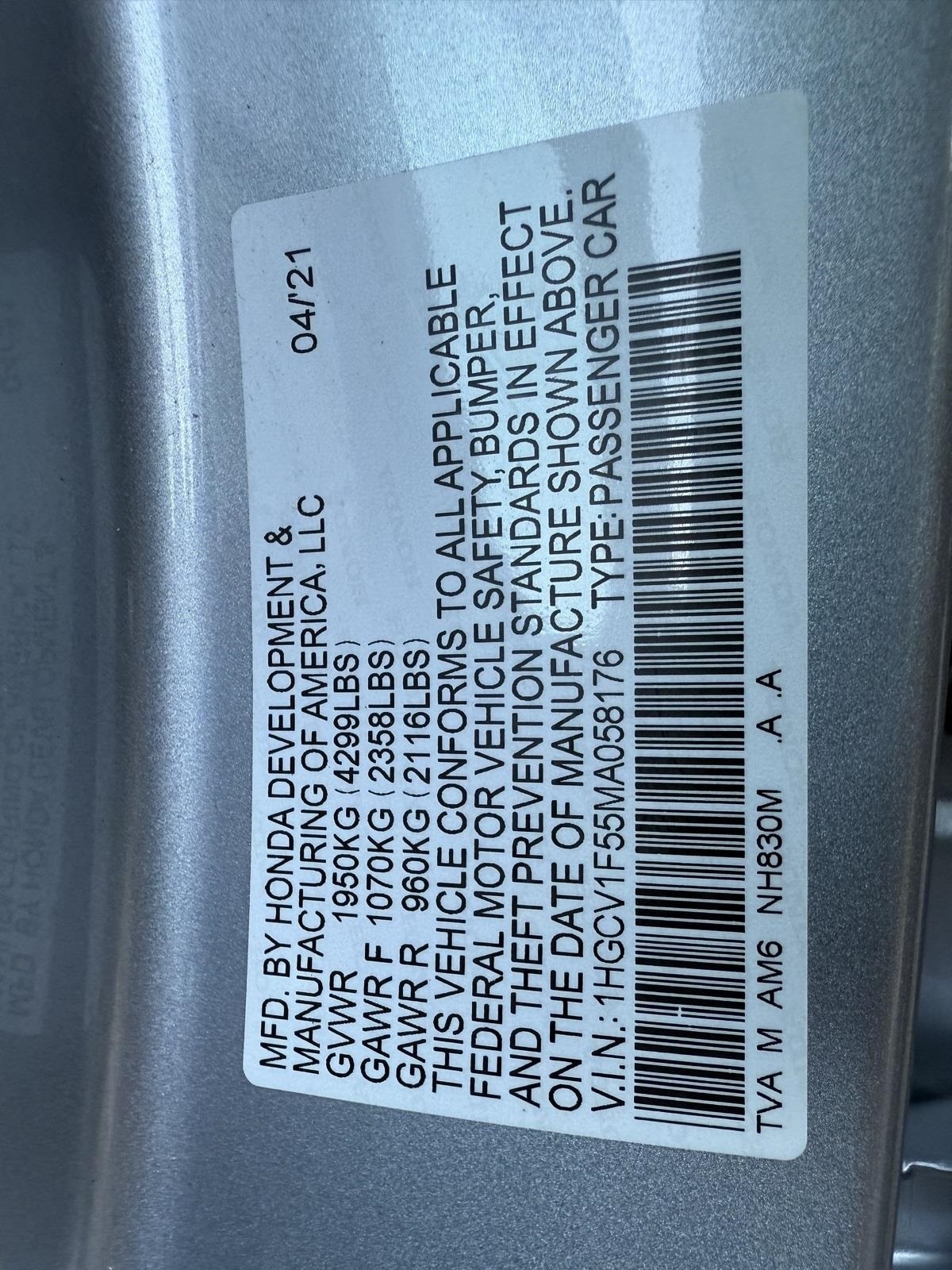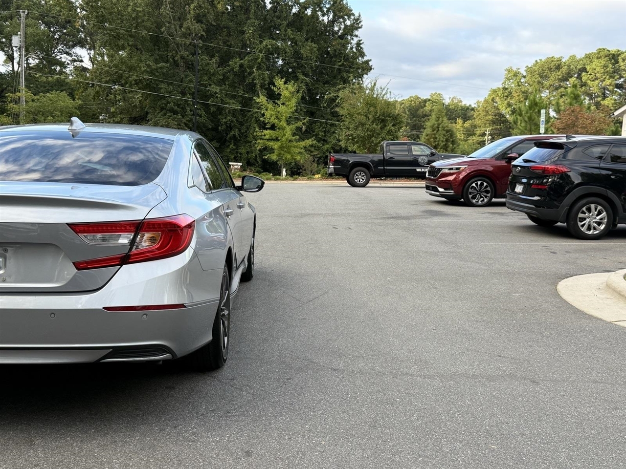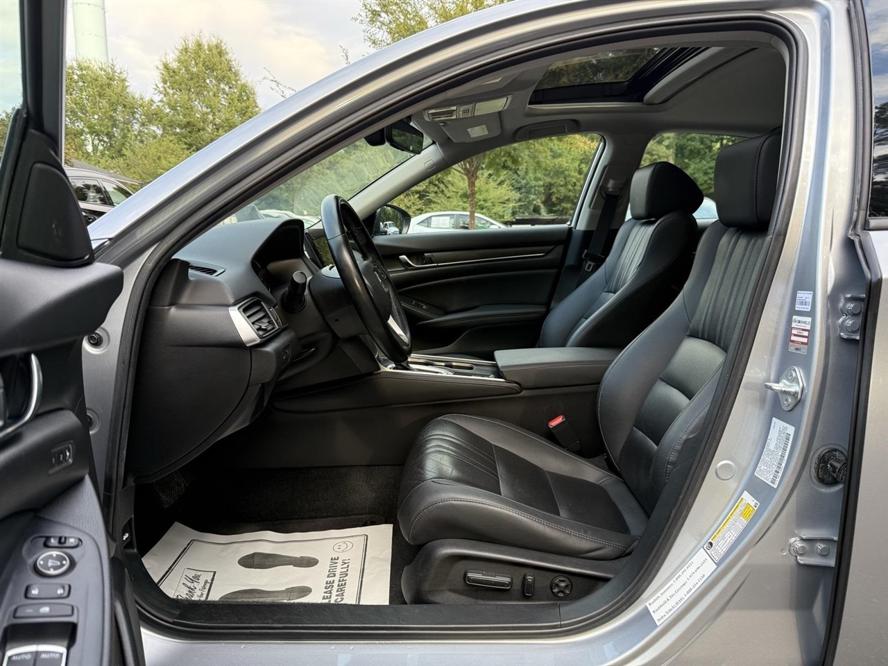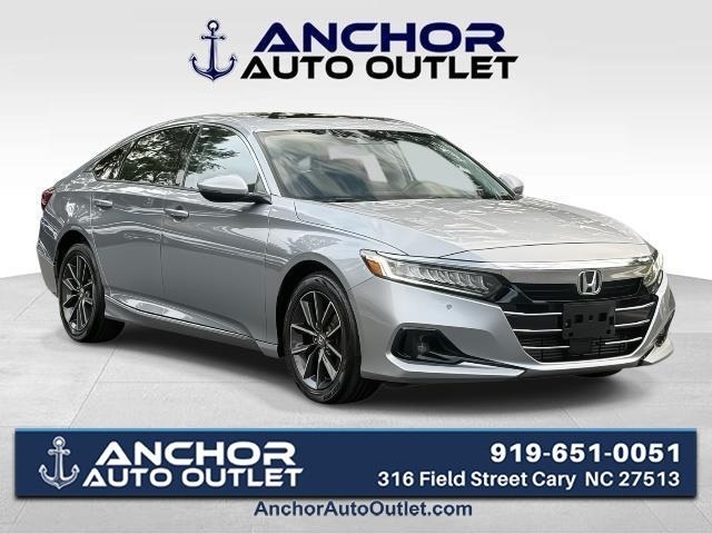 White 2021 Honda Accord EX-L FWD 1.5T I4 DOHC 16V Turbocharged VTEC CVT Clean CARFAX.Black Leather, 10 Speakers, 17" Machine-Finished Alloy Wheels, 4-Wheel Disc Brakes, ABS brakes, Adaptive Cruise Control: Adaptive Cruise Control (ACC) with Low-Speed Follow, Air Conditioning, Alloy wheels, AM/FM radio: SiriusXM, Apple CarPlay/Android Auto, Auto High-beam Headlights, Auto-dimming Rear-View mirror, Automatic temperature control, Blind Spot Information (BSI) System warning, Brake assist, Bumpers: body-color, Delay-off headlights, Driver door bin, Driver vanity mirror, Dual front impact airbags, Dual front side impact airbags, Electronic Stability Control, Emergency communication system: HondaLink, Exterior Parking Camera Rear, Forward collision: Collision Mitigation Braking System (CMBS) + FCW mitigation, Four wheel independent suspension, Front anti-roll bar, Front Bucket Seats, Front Center Armrest, Front dual zone A/C, Front fog lights, Front reading lights, Fully automatic headlights, Garage door transmitter: HomeLink, Heated door mirrors, Heated Front Bucket Seats, Heated front seats, Illuminated entry, Knee airbag, Lane Departure Warning System, Leather Shift Knob, Leather steering wheel, Leather-Trimmed Seats, Low tire pressure warning, Memory seat, Occupant sensing airbag, Outside temperature display, Overhead airbag, Overhead console, Panic alarm, Passenger door bin, Passenger vanity mirror, Power door mirrors, Power driver seat, Power moonroof, Power passenger seat, Power steering, Power windows, Radio data system, Radio: 450-Watt AM/FM/HD Premium Audio System, Rear anti-roll bar, Rear seat center armrest, Rear window defroster, Remote keyless entry, Security system, Speed control, Speed-sensing steering, Speed-Sensitive Wipers, Split folding rear seat, Steering wheel mounted audio controls, Tachometer, Telescoping steering wheel, Tilt steering wheel, Traction control, Trip computer, Turn signal indicator mirrors, Variably intermittent wipers, Black Leather.