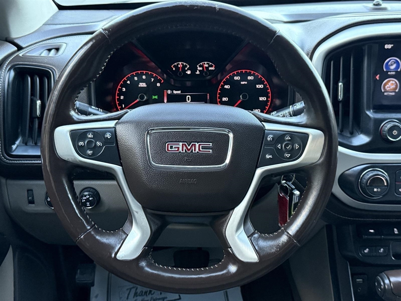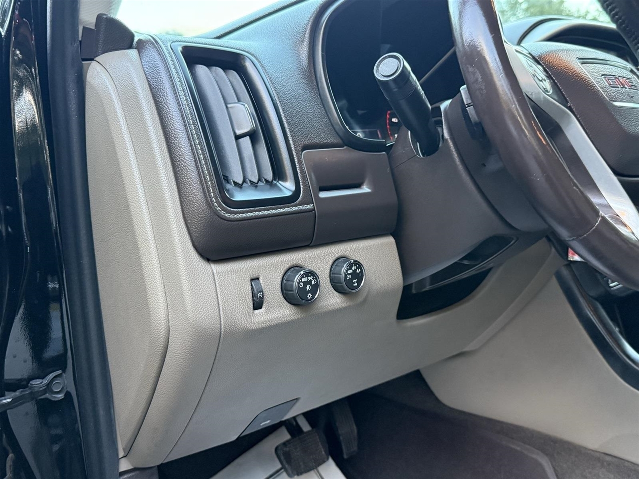 Onyx Black 2016 GMC Canyon SLT 4WD 3.6L V6 DGI DOHC VVT 6-Speed Automatic Clean CARFAX.4WD, 3.42 Rear Axle Ratio, 4-Wheel Disc Brakes, 6 Speakers, ABS brakes, Air Conditioning, Alloy wheels, AM/FM radio: SiriusXM, Apple CarPlay, Auto-dimming Rear-View mirror, Automatic temperature control, Bose Premium 7-Speaker Audio System Feature, Bumpers: body-color, Compass, Delay-off headlights, Driver Alert Package, Driver door bin, Driver vanity mirror, Dual front impact airbags, Dual front side impact airbags, Electronic Stability Control, Emergency communication system: OnStar Guidance, Exterior Parking Camera Rear, Forward Collision Alert, Front anti-roll bar, Front Bucket Seats, Front Center Armrest, Front fog lights, Front reading lights, Front wheel independent suspension, Fully automatic headlights, Heated door mirrors, Heated Driver & Front Passenger Seats, Heated front seats, Illuminated entry, Lane Departure Warning System, Leather-Appointed Seat Trim, Low tire pressure warning, Occupant sensing airbag, Outside temperature display, Overhead airbag, Overhead console, Panic alarm, Passenger door bin, Passenger vanity mirror, Power door mirrors, Power driver seat, Power passenger seat, Power steering, Power windows, Preferred Equipment Group 4LT, Premium audio system: IntelliLink, Radio data system, Radio: AM/FM Stereo 8" Diagonal Color Touch Screen, Radio: AM/FM Stereo w/8" Color Touch Navigation, Rear reading lights, Rear seat center armrest, Rear step bumper, Rear window defroster, Remote keyless entry, Security system, SiriusXM Satellite Radio, Speed control, Speed-sensing steering, Steering wheel mounted audio controls, Tachometer, Telescoping steering wheel, Tilt steering wheel, Tow/Haul Mode, Traction control, Trip computer, Variably intermittent wipers, Wheels: 18" x 8.5" Polished Cast Aluminum, 4WD.