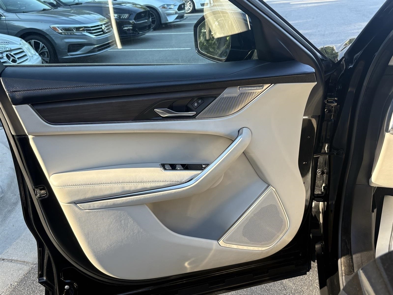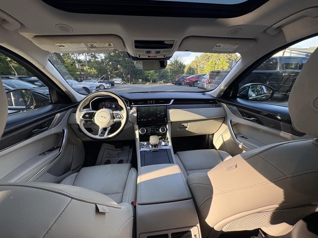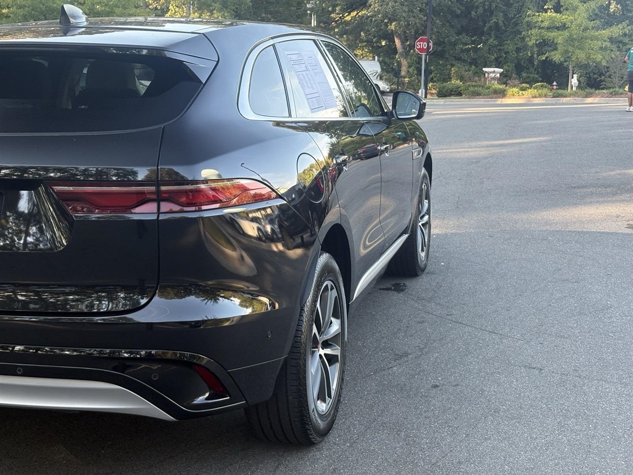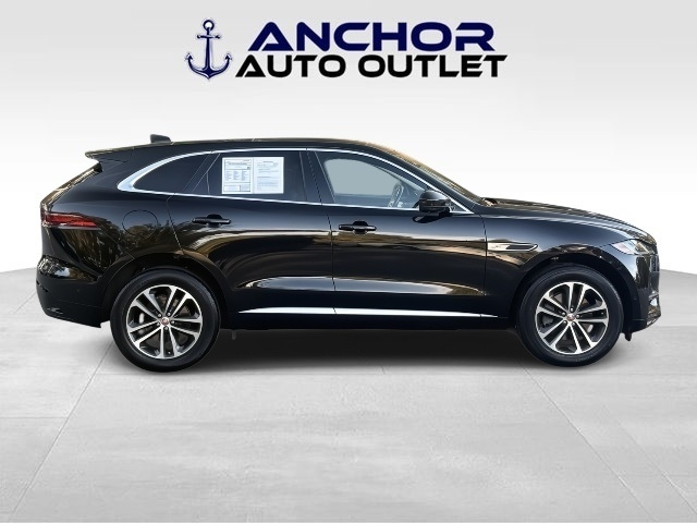 Black 2021 Jaguar F-PACE P250 S AWD 2.0L I4 Turbocharged 8-Speed Automatic11 Speakers, 4-Wheel Disc Brakes, ABS brakes, Adaptive suspension, Air Conditioning, Alloy wheels, AM/FM radio: SiriusXM, Apple CarPlay/Android Auto, Auto High-beam Headlights, Auto-dimming door mirrors, Auto-dimming Rear-View mirror, Automatic temperature control, Axle Ratio: 3.73, Brake assist, Bumpers: body-color, Compass, Delay-off headlights, Driver door bin, Driver vanity mirror, Dual front impact airbags, Dual front side impact airbags, Electronic Stability Control, Emergency communication system: Remote SOS Emergency Call, Four wheel independent suspension, Front anti-roll bar, Front Bucket Seats, Front Center Armrest, Front dual zone A/C, Front reading lights, Fully automatic headlights, Garage door transmitter: HomeLink, Genuine wood dashboard insert, Genuine wood door panel insert, Grained Leather Seat Trim, Heated door mirrors, Heated Front Bucket Seats, Heated front seats, Illuminated entry, Leather Shift Knob, Leather steering wheel, Low tire pressure warning, Navigation system: InControl Navigation Pro, Occupant sensing airbag, Outside temperature display, Overhead airbag, Overhead console, Panic alarm, Passenger door bin, Passenger vanity mirror, Power door mirrors, Power driver seat, Power Liftgate, Power moonroof, Power passenger seat, Power steering, Power windows, Radio data system, Radio: Meridian 380W Sound System, Rain sensing wipers, Rear anti-roll bar, Rear fog lights, Rear reading lights, Rear seat center armrest, Rear window defroster, Rear window wiper, Remote keyless entry, Security system, Speed control, Speed-sensing steering, Split folding rear seat, Spoiler, Steering wheel mounted audio controls, Tachometer, Telescoping steering wheel, Tilt steering wheel, Traction control, Trip computer, Turn signal indicator mirrors, Variably intermittent wipers, Wheels: 19" 5 Split-Spoke Gloss Grey (Style 5038), Wheels: 19" 5 Spoke Gloss Black (Style 5103).