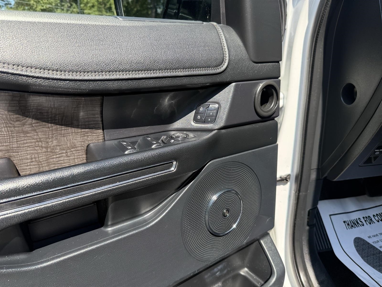Oxford White 2018 Ford Expedition Max Limited RWD EcoBoost 3.5L V6 GTDi DOHC 24V Twin Turbocharged 10-Speed Automatic12 Speakers, 20" Ultra Bright Machined Aluminum Wheels, 3.31 Axle Ratio, 3rd row seats: split-bench, 4-Wheel Disc Brakes, ABS brakes, Adjustable pedals, Air Conditioning, Alloy wheels, AM/FM radio, AppLink/Apple CarPlay and Android Auto, Auto-dimming door mirrors, Auto-dimming Rear-View mirror, Automatic temperature control, Brake assist, Bumpers: body-color, CD player, Compass, Delay-off headlights, Driver door bin, Driver vanity mirror, Dual front impact airbags, Dual front side impact airbags, Electronic Stability Control, Emergency communication system: SYNC 3 911 Assist, Equipment Group 300A, Exterior Parking Camera Rear, Four wheel independent suspension, Front anti-roll bar, Front Bucket Seats, Front Center Armrest, Front dual zone A/C, Front fog lights, Front reading lights, Fully automatic headlights, Garage door transmitter, Heated & Cooled Leather Front Bucket Seats, Heated door mirrors, Heated front seats, Heated rear seats, Heated steering wheel, Illuminated entry, Leather steering wheel, License Plate Bracket, Low tire pressure warning, Memory seat, Occupant sensing airbag, Outside temperature display, Overhead airbag, Overhead console, Panic alarm, Panoramic Vista Roof, Passenger door bin, Passenger vanity mirror, Pedal memory, Power door mirrors, Power driver seat, Power Liftgate, Power passenger seat, Power steering, Power windows, Radio data system, Radio: B&O PLAY Premium Audio System by harman, Rear air conditioning, Rear anti-roll bar, Rear audio controls, Rear reading lights, Rear window defroster, Rear window wiper, Remote keyless entry, Roof rack: rails only, Security system, SiriusXM Satellite Radio, Speed control, Speed-sensing steering, Speed-Sensitive Wipers, Split folding rear seat, Steering wheel memory, Steering wheel mounted audio controls, SYNC 3 Communications & Entertainment System, Tachometer, Telescoping steering wheel, Tilt steering wheel, Traction control, Trip computer, Turn signal indicator mirrors, Variably intermittent wipers, Ventilated front seats, Voice-Activated Touch-Screen Navigation System, Voltmeter.
