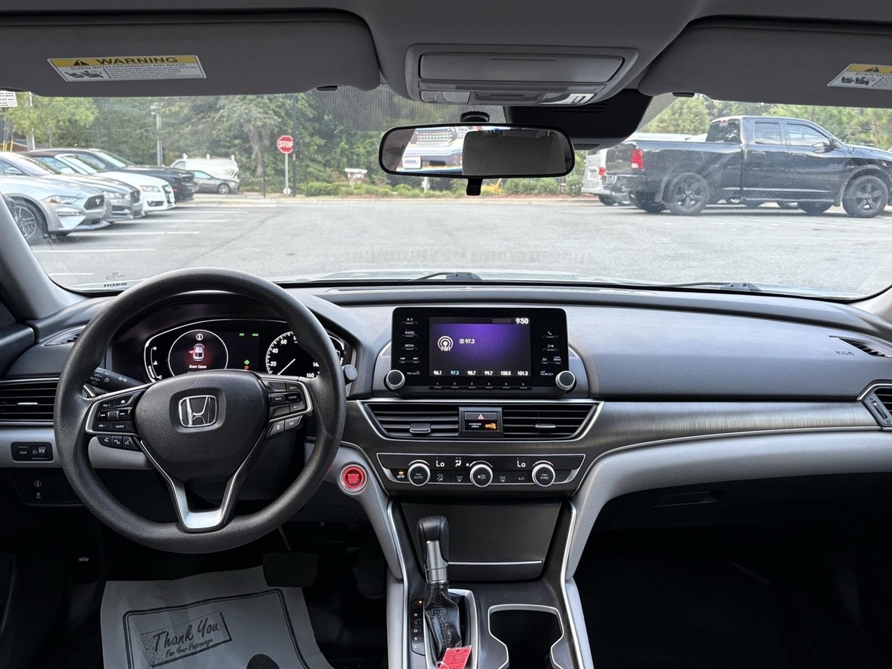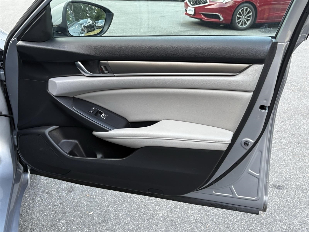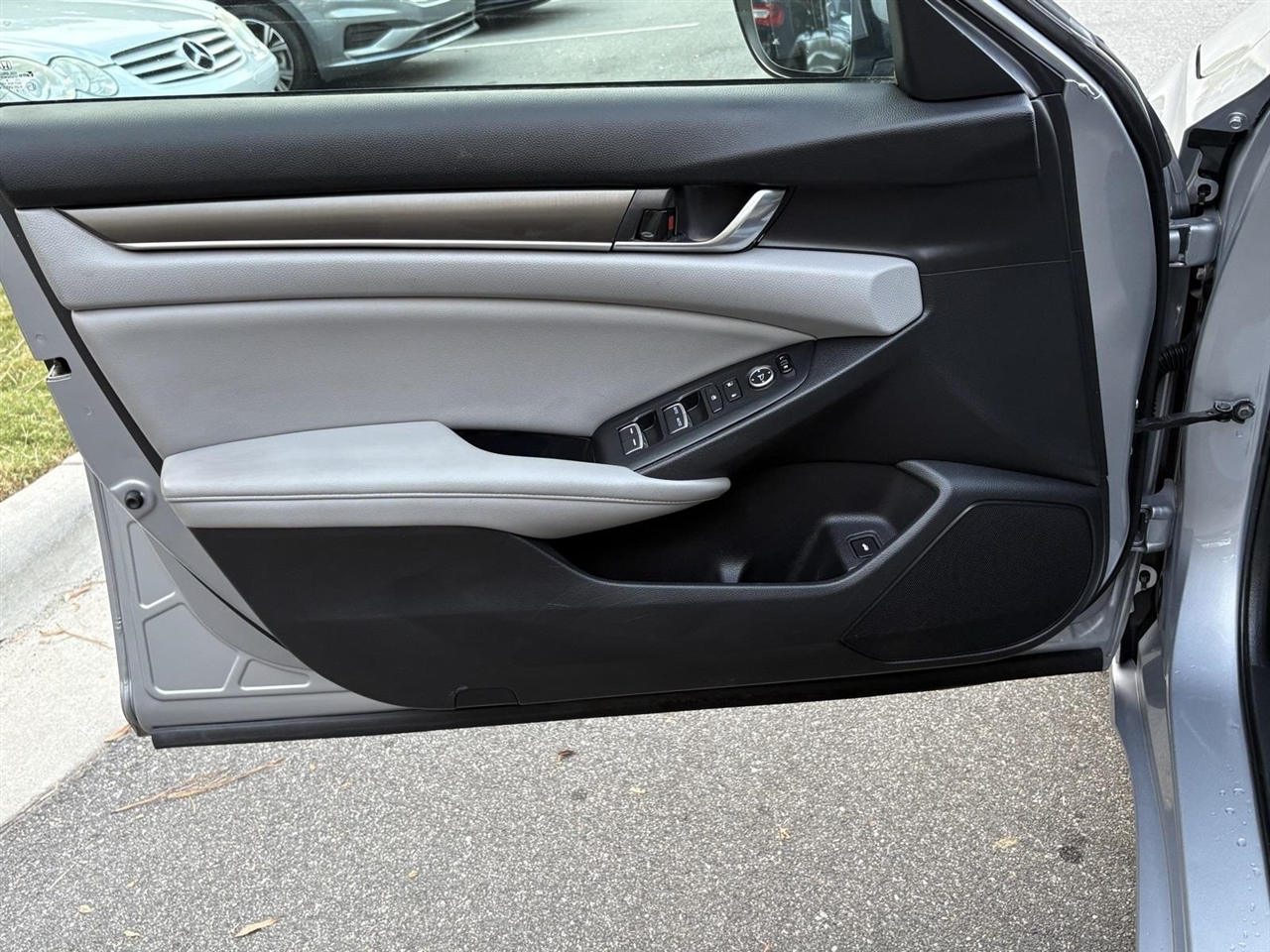 Silver 2019 Honda Accord LX FWD 1.5T I4 DOHC 16V Turbocharged VTEC CVTGray w/Leather-Trimmed Seats, 4 Speakers, 4-Wheel Disc Brakes, ABS brakes, Air Conditioning, Alloy wheels, AM/FM radio, Auto High-beam Headlights, Automatic temperature control, Brake assist, Bumpers: body-color, Cloth Seat Trim, Delay-off headlights, Driver door bin, Driver vanity mirror, Dual front impact airbags, Dual front side impact airbags, Electronic Stability Control, Exterior Parking Camera Rear, Forward collision: Collision Mitigation Braking System (CMBS) + FCW mitigation, Four wheel independent suspension, Front anti-roll bar, Front Bucket Seats, Front Center Armrest, Front dual zone A/C, Front reading lights, Fully automatic headlights, Illuminated entry, Knee airbag, Low tire pressure warning, Occupant sensing airbag, Outside temperature display, Overhead airbag, Overhead console, Panic alarm, Passenger door bin, Passenger vanity mirror, Power door mirrors, Power steering, Power windows, Radio data system, Radio: 160-Watt AM/FM Audio System, Rear anti-roll bar, Rear seat center armrest, Rear window defroster, Remote keyless entry, Security system, Speed control, Speed-sensing steering, Speed-Sensitive Wipers, Steering wheel mounted audio controls, Tachometer, Telescoping steering wheel, Tilt steering wheel, Traction control, Trip computer, Variably intermittent wipers, Wheels: 17" Silver-Painted Alloy, Gray w/Leather-Trimmed Seats.