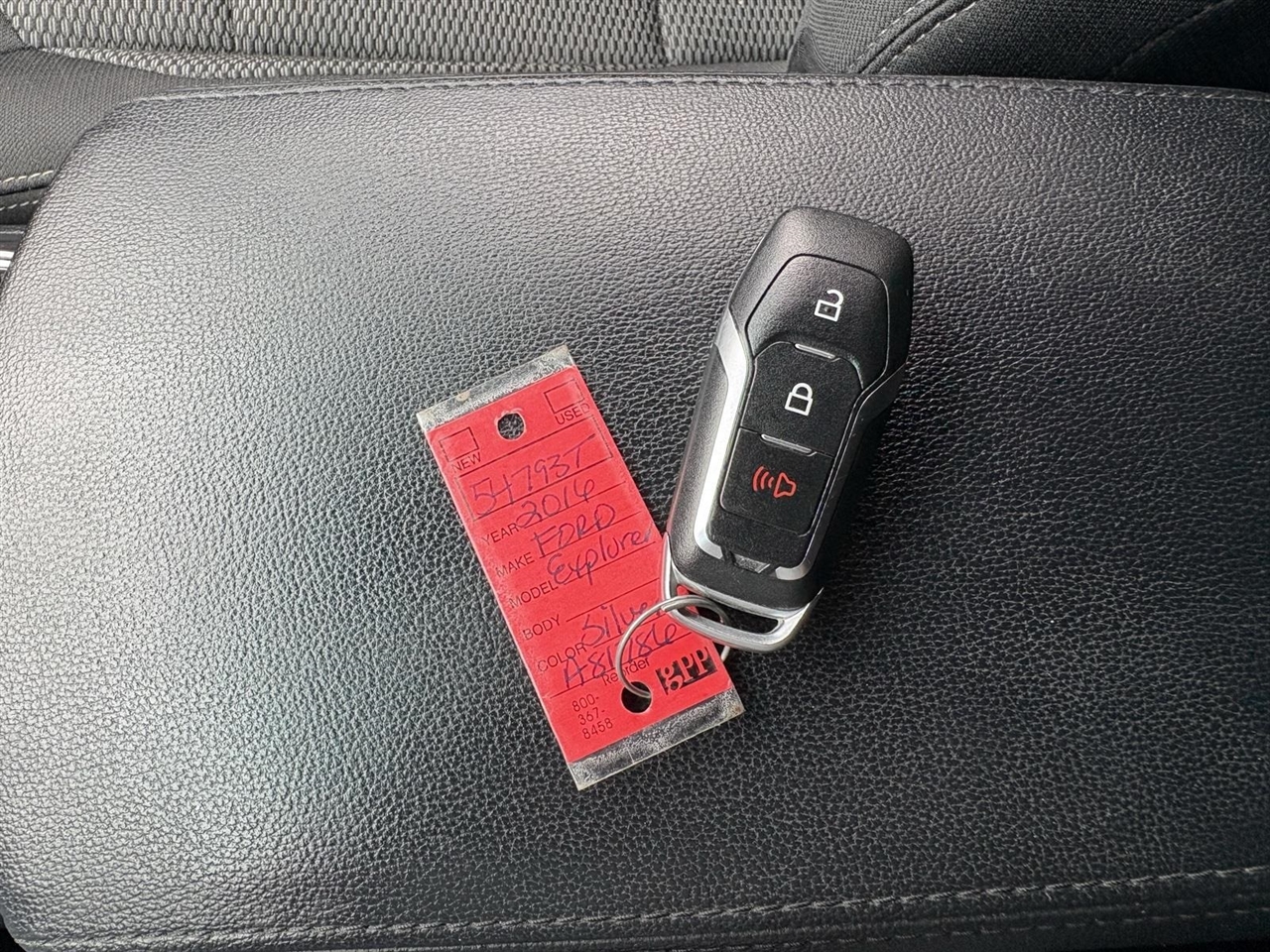 Ingot Silver 2016 Ford Explorer XLT 4WD 2.3L I4 EcoBoost 6-Speed Automatic with Select-Shift4WD, 18" 5-Spoke Painted Aluminum Wheels, 3.65 Axle Ratio, 3rd row seats: split-bench, 4-Wheel Disc Brakes, 6 Speakers, ABS brakes, Air Conditioning, Alloy wheels, AM/FM radio: SiriusXM, Brake assist, Bumpers: body-color, CD player, Compass, Delay-off headlights, Driver door bin, Driver vanity mirror, Dual front impact airbags, Dual front side impact airbags, Electronic Stability Control, Emergency communication system: 911 Assist, Equipment Group 200A, Exterior Parking Camera Rear, Four wheel independent suspension, Front anti-roll bar, Front Bucket Seats, Front Center Armrest, Front fog lights, Front License Plate Bracket, Front reading lights, Fully automatic headlights, Heated door mirrors, Illuminated entry, Knee airbag, Leather steering wheel, Low tire pressure warning, Occupant sensing airbag, Outside temperature display, Overhead airbag, Overhead console, Panic alarm, Passenger door bin, Passenger vanity mirror, Power door mirrors, Power driver seat, Power passenger seat, Power steering, Power windows, Radio: AM/FM Stereo w/Single CD/MP3 Capable, Rear air conditioning, Rear anti-roll bar, Rear Parking Sensors, Rear reading lights, Rear window defroster, Rear window wiper, Remote keyless entry, Roof rack: rails only, Security system, Speed control, Speed-sensing steering, Speed-Sensitive Wipers, Split folding rear seat, Spoiler, Steering wheel mounted audio controls, SYNC, Tachometer, Telescoping steering wheel, Tilt steering wheel, Traction control, Trip computer, Turn signal indicator mirrors, Variably intermittent wipers, 4WD.