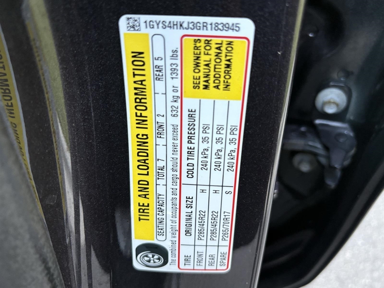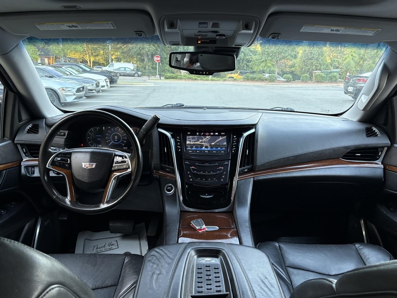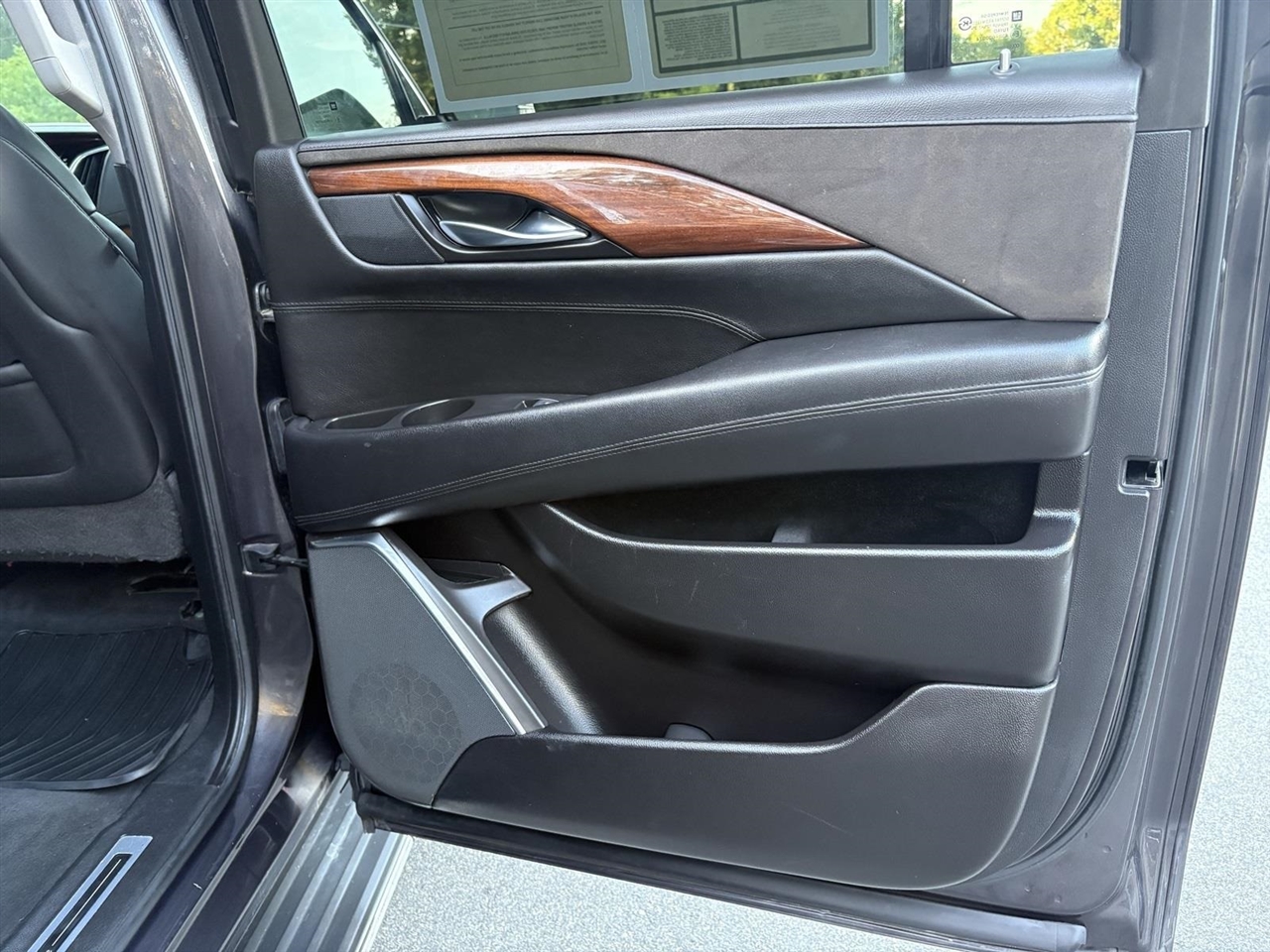 4WD, 16 Speakers, 1st 2nd & 3rd Row Floor Mats (LPO), 3.23 Axle Ratio, 3rd Row DVD Screen, 3rd row seats: split-bench, 4-Wheel Disc Brakes, ABS brakes, Adaptive suspension, Adjustable pedals, Air Conditioning, Alloy wheels, AM/FM radio: SiriusXM, Apple CarPlay, Auto High-beam Headlights, Auto tilt-away steering wheel, Auto-dimming door mirrors, Auto-dimming Rear-View mirror, Auto-leveling suspension, Automatic temperature control, Bodyside moldings, Bose Centerpoint Surround Sound System, Brake assist, Bumpers: body-color, CD player, Compass, Delay-off headlights, Driver Awareness Package, Driver door bin, Driver vanity mirror, Dual front impact airbags, Dual front side impact airbags, DVD-Audio, Electronic Stability Control, Emergency communication system: OnStar, Exterior Parking Camera Rear, Forward Collision Alert, Front anti-roll bar, Front Bucket Seats, Front Center Armrest w/Storage, Front dual zone A/C, Front reading lights, Front wheel independent suspension, Fully automatic headlights, Garage door transmitter, HD Radio, Heads-Up Display, Heated & Cooled Front Bucket Seats, Heated door mirrors, Heated front seats, Heated rear seats, Heated steering wheel, Illuminated entry, IntelliBeam Headlamps, Lane Departure Warning System, Lane Keep Assist, Leather Seating Surfaces, Leather Shift Knob, Leather steering wheel, Low tire pressure warning, Magnetic Ride Control Suspension, Memory seat, Navigation System, NavTraffic, Occupant sensing airbag, Outside temperature display, Overhead airbag, Overhead console, Panic alarm, Passenger door bin, Passenger vanity mirror, Pedal memory, Power door mirrors, Power driver seat, Power Liftgate, Power moonroof, Power passenger seat, Power steering, Power Tilt-Sliding Sunroof w/Express-Open/Close, Power windows, Preferred Equipment Group 1SB, Radio data system, Radio: Cadillac CUE Info/Media Ctrl Sys w/Embd Nav, Rain sensing wipers, Rear air conditioning, Rear anti-roll bar, Rear audio controls, Rear Cross-Traffic Alert, Rear reading lights, Rear Seat Entertainment System, Rear window defroster, Rear window wiper, Reconfigurable 4-Color Head-Up Display, Remote keyless entry, Roof rack: rails only, Second Row Bucket Seats, Security system, Side Blind Zone Alert, Single Slot CD/MP3 Player, SiriusXM Satellite Radio, Speed control, Split folding rear seat, Spoiler, Steering wheel memory, Steering wheel mounted audio controls, Tachometer, Telescoping steering wheel, Theft-Deterrent Alarm System, Theft-Deterrent Package, Tilt steering wheel, Traction control, Trip computer, Turn signal indicator mirrors, Variably intermittent wipers, Vehicle Inclination Sensor, Vehicle Interior Movement Sensor, Ventilated front seats, Wheels: 22" 6-Spoke Split Manoogian Silver (LPO), Wheels: 22" x 9" 7-Spoke Aluminum, Wheels: 22" x 9" Steel (LPO), 4WD.