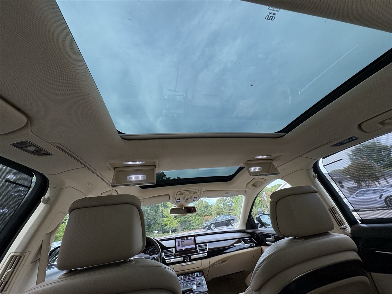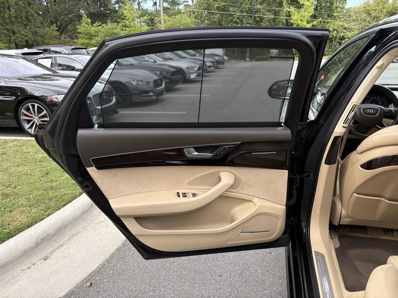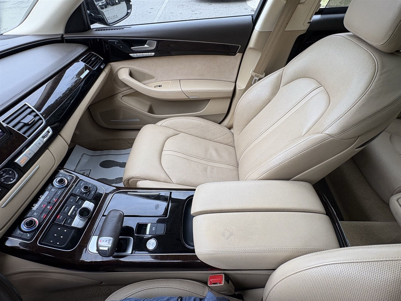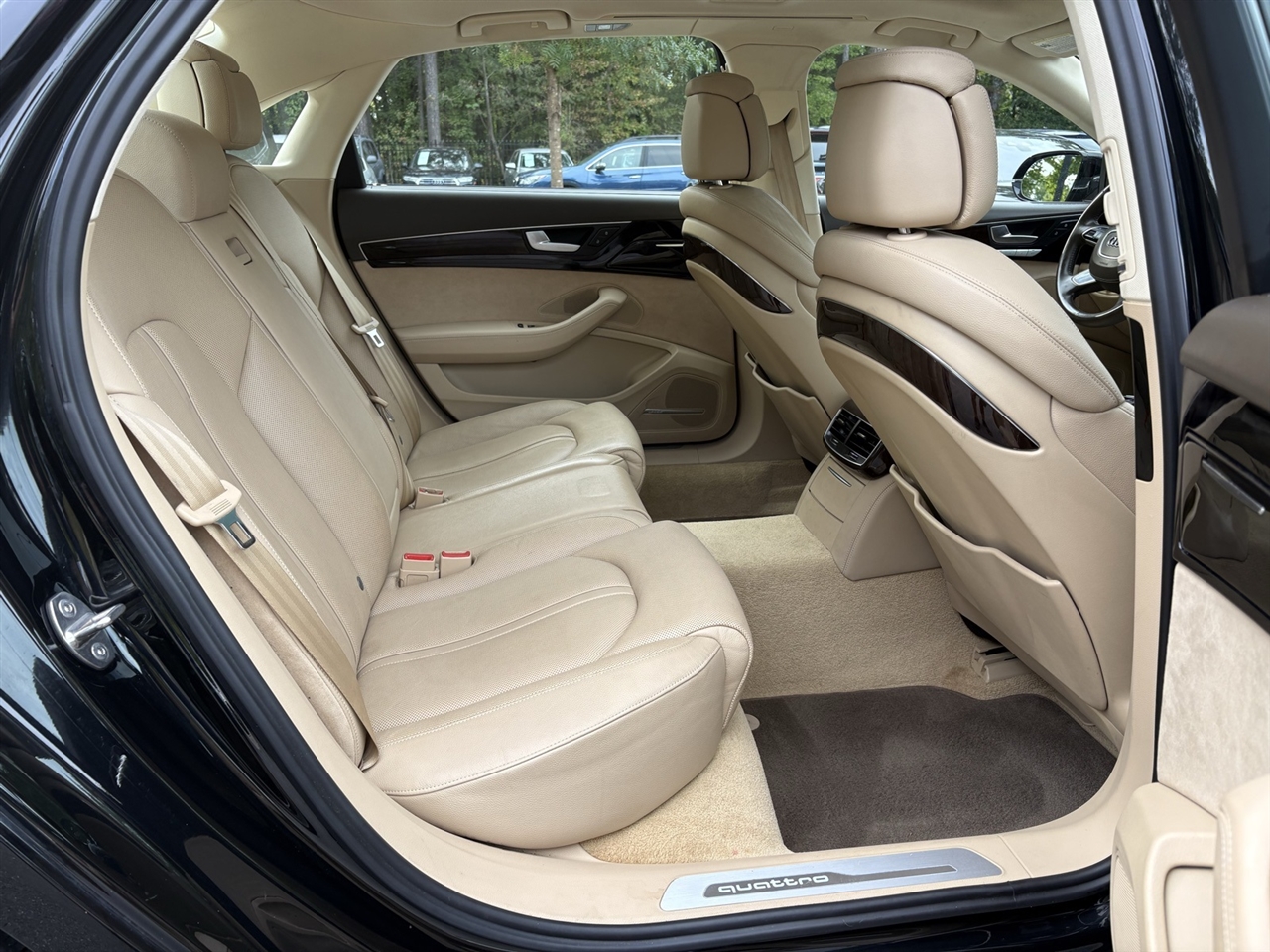 Velvet Beige Leather, 14 Speakers, 18-Way Power Heated Front Seats w/Memory, 22-Way Power Heated Front Comfort Sport Seats, 4-Spoke Multifunction Heated Steering Wheel, 4-Wheel Disc Brakes, ABS brakes, Adaptive suspension, Air Conditioning, Alloy wheels, AM/FM radio: SiriusXM, Assam Gray Vavona Wood Upper Inlays, Audi Active Lane Assist, Audi Adaptive Cruise Control w/Stop & Go, Audi Beam-Rings, Audi First Aid Kit, Audi Guard All-Weather Floor Mats, Audi Head-Up Display, Audi Side Assist w/Pre Sense Rear, Auto tilt-away steering wheel, Auto-dimming door mirrors, Auto-dimming Rear-View mirror, Auto-leveling suspension, Automatic temperature control, Bose Surround Sound System w/AudioPilot, Brake assist, Bumpers: body-color, CD player, Compass, Delay-off headlights, DELETE Front License Plate Holder, Door auto-latch, Driver Assistance Package, Driver door bin, Driver vanity mirror, Dual front impact airbags, Dual front side impact airbags, DVD-Audio, Electronic Stability Control, Executive Package, Exterior Parking Camera Rear, Four wheel independent suspension, Front anti-roll bar, Front Bucket Seats, Front dual zone A/C, Front fog lights, Front reading lights, Front Seat Ventilation with Massage, Garage door transmitter: HomeLink, Genuine wood console insert, Head restraints memory, Headlight cleaning, Heated door mirrors, Heated front seats, High-Beam Assistant, HVAC memory, Illuminated entry, Knee airbag, Leather Shift Knob, Leather steering wheel, Low tire pressure warning, Memory seat, Navigation System, Occupant sensing airbag, Outside temperature display, Overhead airbag, Overhead console, Panic alarm, Panoramic Sunroof, Passenger door bin, Passenger vanity mirror, Power adjustable front head restraints, Power door mirrors, Power driver seat, Power moonroof, Power passenger seat, Power steering, Power windows, Radio data system, Radio: Audi MMI Navigation Plus System, Rain sensing wipers, Rear air conditioning, Rear anti-roll bar, Rear dual zone A/C, Rear fog lights, Rear Heated Seats, Rear reading lights, Rear seat center armrest, Rear Seat Pass-Through, Rear side impact airbag, Rear Window Blind, Rear window defroster, Remote keyless entry, Seatbelt memory, Security system, Speed control, Speed-Sensitive Wipers, Steering wheel memory, Steering wheel mounted audio controls, Tachometer, Telescoping steering wheel, Tilt steering wheel, Topview Camera System (Front, Rear & Side Views), Traction control, Trip computer, Turn signal indicator mirrors, Valetta Leather Seat Upholstery, Variably intermittent wipers, Wheels: 9" x 19" 15-Spoke-Design Alloy, Wheels: 9" x 20" 10-Spoke-Star Design, Wheels: 9" x 20" 5-Double-Spoke Galvano Silver, Velvet Beige Leather.