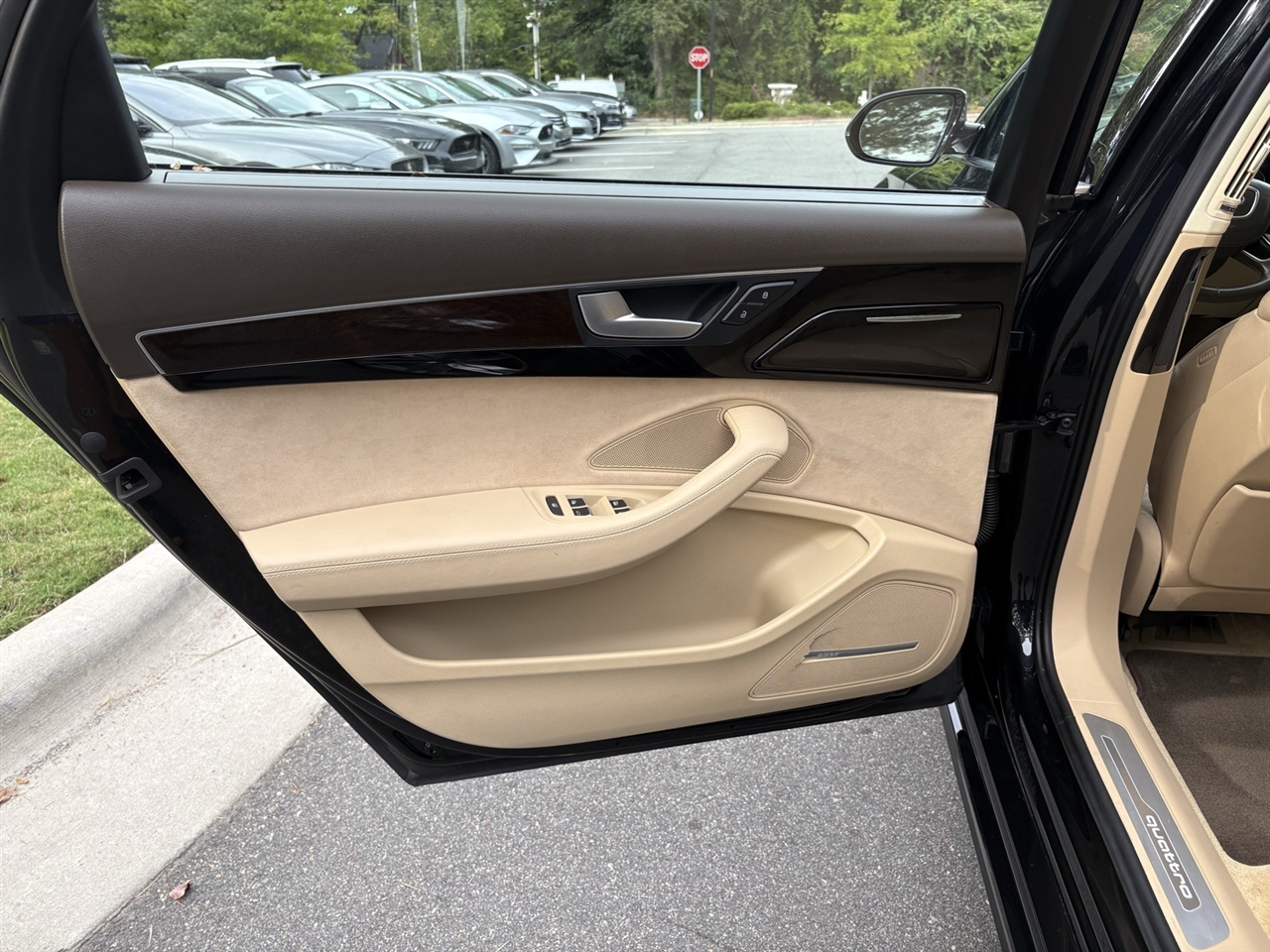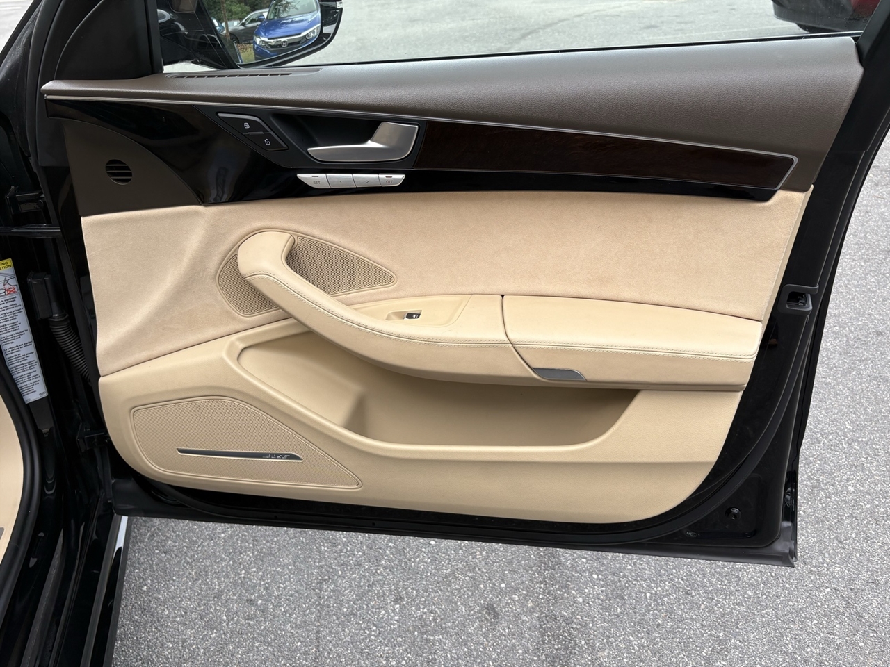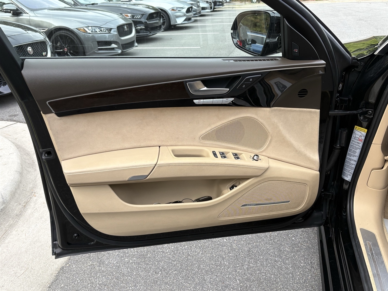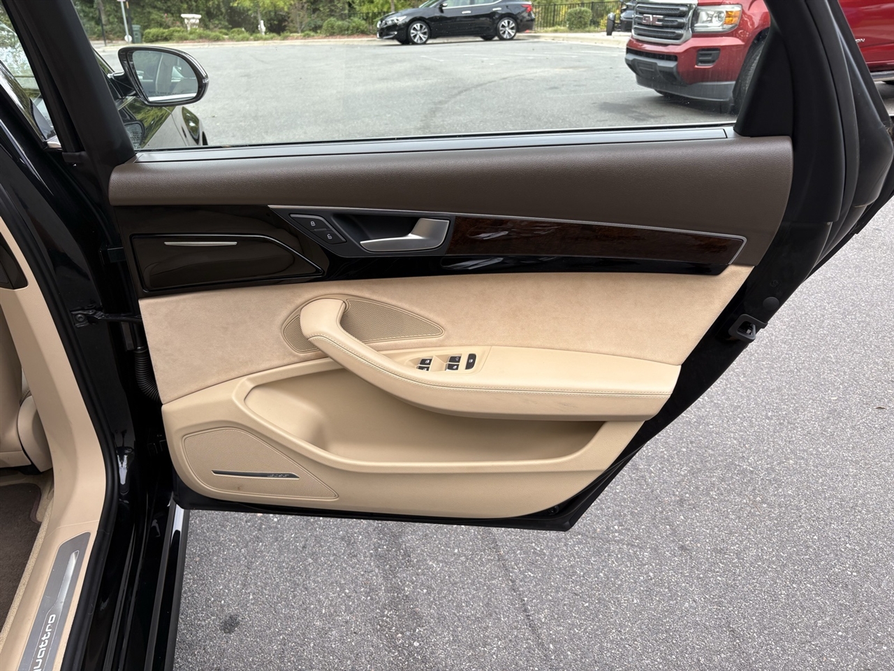 Velvet Beige Leather, 14 Speakers, 18-Way Power Heated Front Seats w/Memory, 22-Way Power Heated Front Comfort Sport Seats, 4-Spoke Multifunction Heated Steering Wheel, 4-Wheel Disc Brakes, ABS brakes, Adaptive suspension, Air Conditioning, Alloy wheels, AM/FM radio: SiriusXM, Assam Gray Vavona Wood Upper Inlays, Audi Active Lane Assist, Audi Adaptive Cruise Control w/Stop & Go, Audi Beam-Rings, Audi First Aid Kit, Audi Guard All-Weather Floor Mats, Audi Head-Up Display, Audi Side Assist w/Pre Sense Rear, Auto tilt-away steering wheel, Auto-dimming door mirrors, Auto-dimming Rear-View mirror, Auto-leveling suspension, Automatic temperature control, Bose Surround Sound System w/AudioPilot, Brake assist, Bumpers: body-color, CD player, Compass, Delay-off headlights, DELETE Front License Plate Holder, Door auto-latch, Driver Assistance Package, Driver door bin, Driver vanity mirror, Dual front impact airbags, Dual front side impact airbags, DVD-Audio, Electronic Stability Control, Executive Package, Exterior Parking Camera Rear, Four wheel independent suspension, Front anti-roll bar, Front Bucket Seats, Front dual zone A/C, Front fog lights, Front reading lights, Front Seat Ventilation with Massage, Garage door transmitter: HomeLink, Genuine wood console insert, Head restraints memory, Headlight cleaning, Heated door mirrors, Heated front seats, High-Beam Assistant, HVAC memory, Illuminated entry, Knee airbag, Leather Shift Knob, Leather steering wheel, Low tire pressure warning, Memory seat, Navigation System, Occupant sensing airbag, Outside temperature display, Overhead airbag, Overhead console, Panic alarm, Panoramic Sunroof, Passenger door bin, Passenger vanity mirror, Power adjustable front head restraints, Power door mirrors, Power driver seat, Power moonroof, Power passenger seat, Power steering, Power windows, Radio data system, Radio: Audi MMI Navigation Plus System, Rain sensing wipers, Rear air conditioning, Rear anti-roll bar, Rear dual zone A/C, Rear fog lights, Rear Heated Seats, Rear reading lights, Rear seat center armrest, Rear Seat Pass-Through, Rear side impact airbag, Rear Window Blind, Rear window defroster, Remote keyless entry, Seatbelt memory, Security system, Speed control, Speed-Sensitive Wipers, Steering wheel memory, Steering wheel mounted audio controls, Tachometer, Telescoping steering wheel, Tilt steering wheel, Topview Camera System (Front, Rear & Side Views), Traction control, Trip computer, Turn signal indicator mirrors, Valetta Leather Seat Upholstery, Variably intermittent wipers, Wheels: 9" x 19" 15-Spoke-Design Alloy, Wheels: 9" x 20" 10-Spoke-Star Design, Wheels: 9" x 20" 5-Double-Spoke Galvano Silver, Velvet Beige Leather.