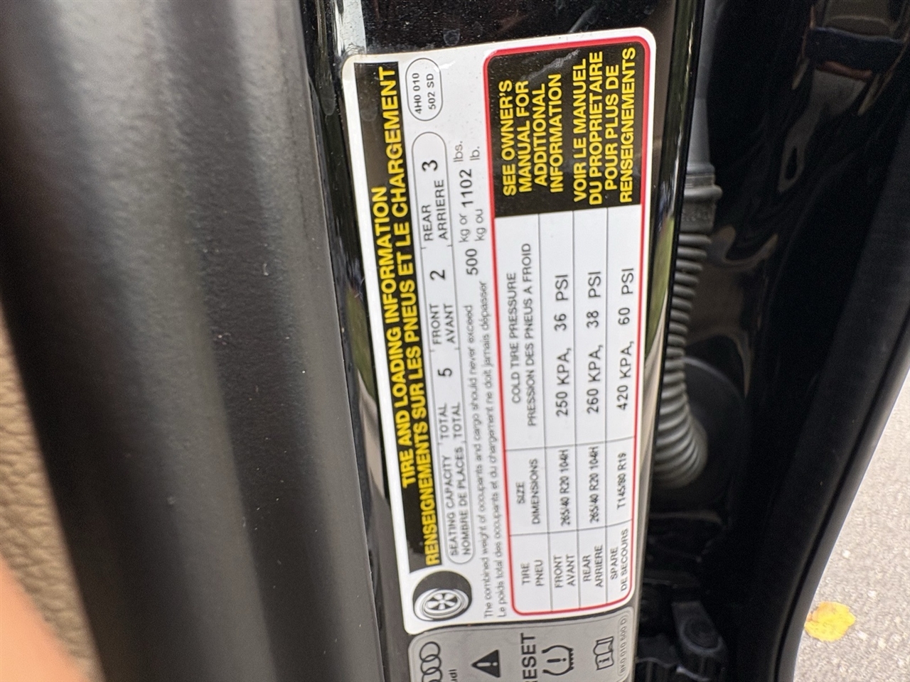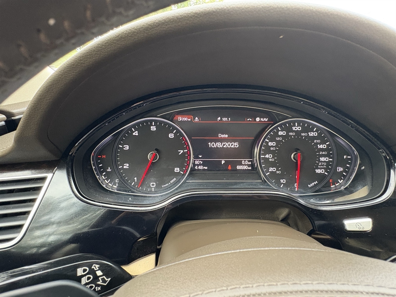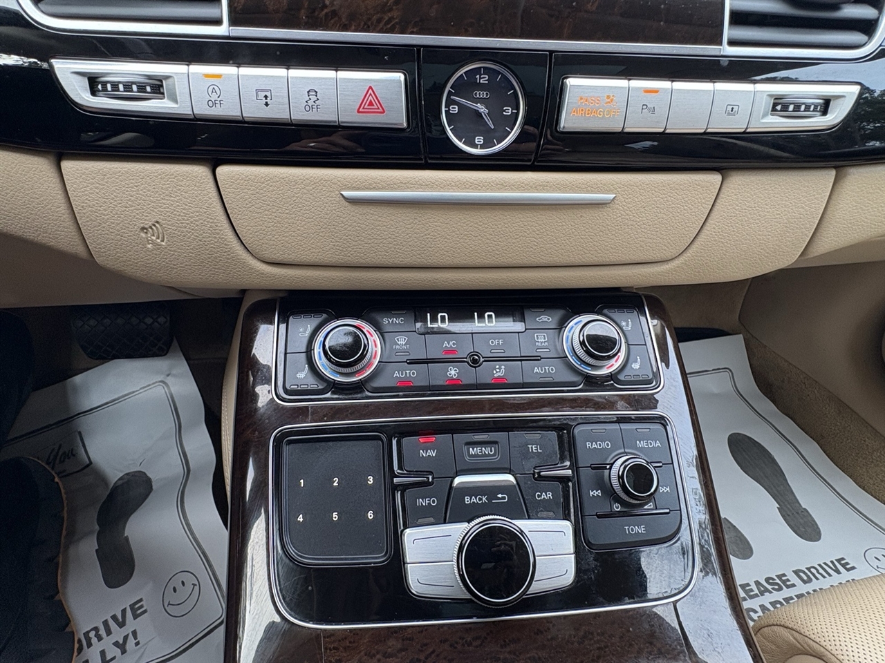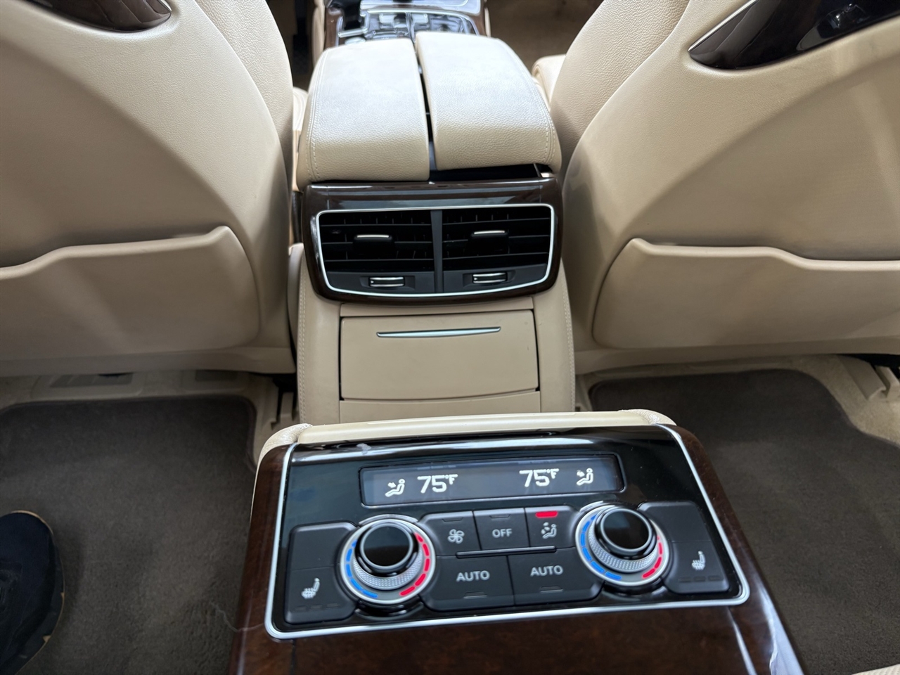 Velvet Beige Leather, 14 Speakers, 18-Way Power Heated Front Seats w/Memory, 22-Way Power Heated Front Comfort Sport Seats, 4-Spoke Multifunction Heated Steering Wheel, 4-Wheel Disc Brakes, ABS brakes, Adaptive suspension, Air Conditioning, Alloy wheels, AM/FM radio: SiriusXM, Assam Gray Vavona Wood Upper Inlays, Audi Active Lane Assist, Audi Adaptive Cruise Control w/Stop & Go, Audi Beam-Rings, Audi First Aid Kit, Audi Guard All-Weather Floor Mats, Audi Head-Up Display, Audi Side Assist w/Pre Sense Rear, Auto tilt-away steering wheel, Auto-dimming door mirrors, Auto-dimming Rear-View mirror, Auto-leveling suspension, Automatic temperature control, Bose Surround Sound System w/AudioPilot, Brake assist, Bumpers: body-color, CD player, Compass, Delay-off headlights, DELETE Front License Plate Holder, Door auto-latch, Driver Assistance Package, Driver door bin, Driver vanity mirror, Dual front impact airbags, Dual front side impact airbags, DVD-Audio, Electronic Stability Control, Executive Package, Exterior Parking Camera Rear, Four wheel independent suspension, Front anti-roll bar, Front Bucket Seats, Front dual zone A/C, Front fog lights, Front reading lights, Front Seat Ventilation with Massage, Garage door transmitter: HomeLink, Genuine wood console insert, Head restraints memory, Headlight cleaning, Heated door mirrors, Heated front seats, High-Beam Assistant, HVAC memory, Illuminated entry, Knee airbag, Leather Shift Knob, Leather steering wheel, Low tire pressure warning, Memory seat, Navigation System, Occupant sensing airbag, Outside temperature display, Overhead airbag, Overhead console, Panic alarm, Panoramic Sunroof, Passenger door bin, Passenger vanity mirror, Power adjustable front head restraints, Power door mirrors, Power driver seat, Power moonroof, Power passenger seat, Power steering, Power windows, Radio data system, Radio: Audi MMI Navigation Plus System, Rain sensing wipers, Rear air conditioning, Rear anti-roll bar, Rear dual zone A/C, Rear fog lights, Rear Heated Seats, Rear reading lights, Rear seat center armrest, Rear Seat Pass-Through, Rear side impact airbag, Rear Window Blind, Rear window defroster, Remote keyless entry, Seatbelt memory, Security system, Speed control, Speed-Sensitive Wipers, Steering wheel memory, Steering wheel mounted audio controls, Tachometer, Telescoping steering wheel, Tilt steering wheel, Topview Camera System (Front, Rear & Side Views), Traction control, Trip computer, Turn signal indicator mirrors, Valetta Leather Seat Upholstery, Variably intermittent wipers, Wheels: 9" x 19" 15-Spoke-Design Alloy, Wheels: 9" x 20" 10-Spoke-Star Design, Wheels: 9" x 20" 5-Double-Spoke Galvano Silver, Velvet Beige Leather.