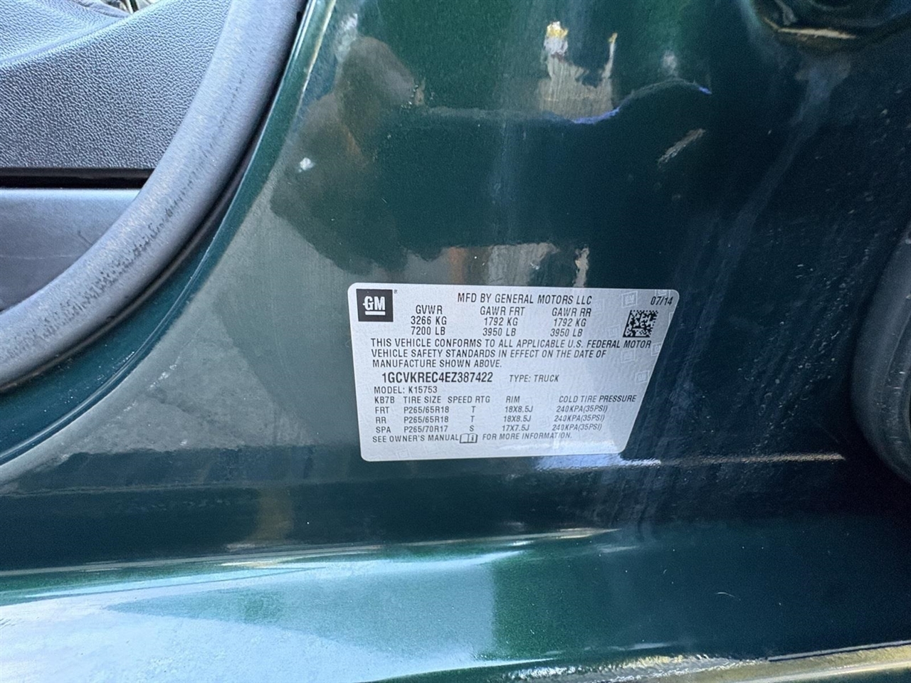 Rainforest Green Metallic 2014 Chevrolet Silverado 1500 LT LT1 4WD EcoTec3 5.3L V8 Flex Fuel 6-Speed Automatic Electronic with Overdrive6-Speed Automatic Electronic with Overdrive, 4WD, Black Cloth, 10-Way Power Driver's Seat Adjuster, 110-Volt AC Power Outlet, 150 Amp Alternator, 3.42 Rear Axle Ratio, 4-Wheel Disc Brakes, 4.2" Diagonal Color Display Driver Info Center, 40/20/40 Front Split Bench Seat, 6 Speaker Audio System, 6 Speakers, ABS brakes, Air Conditioning, All Star Edition, Alloy wheels, AM/FM radio: SiriusXM, Auxiliary External Transmission Oil Cooler, Black Power Adjustable Heated Outside Mirrors, Bluetooth® For Phone, Brake assist, Bumpers: chrome, CD player, Cloth Seat Trim, Color-Keyed Carpeting w/Rubberized Vinyl Floor Mats, Compass, Deep-Tinted Glass, Delay-off headlights, Driver & Front Passenger Illuminated Vanity Mirrors, Driver door bin, Driver vanity mirror, Dual front impact airbags, Dual front side impact airbags, Dual-Zone Automatic Climate Control, Electric Rear-Window Defogger, Electronic Stability Control, Emergency communication system: OnStar Directions & Connections, EZ Lift & Lower Tailgate, Front anti-roll bar, Front Center Armrest w/Storage, Front Chrome Bumper, Front Frame-Mounted Black Recovery Hooks, Front Halogen Fog Lamps, Front reading lights, Front wheel independent suspension, Fully automatic headlights, Heated door mirrors, Heated Driver & Front Passenger Seats, Heavy-Duty Rear Locking Differential, Illuminated entry, Integrated Trailer Brake Controller, Leather Wrapped Steering Wheel w/Cruise Controls, Low tire pressure warning, Manual Tilt Wheel Steering Column, Occupant sensing airbag, OnStar 6 Months Directions & Connections Plan, Outside temperature display, Overhead airbag, Overhead console, Panic alarm, Passenger door bin, Passenger vanity mirror, Power door mirrors, Power steering, Power windows, Power Windows w/Driver Express Up, Premium audio system: Chevrolet MyLink, Radio data system, Radio: AM/FM 8" Diagonal Color Touch Screen, Radio: AM/FM Audio System w/Chevrolet MyLink, Rear 60/40 Folding Bench Seat (Folds Up), Rear Chrome Bumper, Rear reading lights, Rear step bumper, Rear Vision Camera w/Dynamic Guide Lines, Rear Wheelhouse Liners, Remote Keyless Entry, Remote keyless entry, Remote Vehicle Starter System, Single Slot CD/MP3 Player, SiriusXM Satellite & HD Radio, Speed control, Speed-sensing steering, Split folding rear seat, Steering Wheel Audio Controls, Steering wheel mounted audio controls, Tachometer, Theft Deterrent System (Unauthorized Entry), Tilt steering wheel, Traction control, Trailering Equipment, Trip computer, Variably intermittent wipers, Voltmeter, Wheels: 17" x 8" Bright Machined Aluminum, 6-Speed Automatic Electronic with Overdrive, 4WD, Black Cloth.