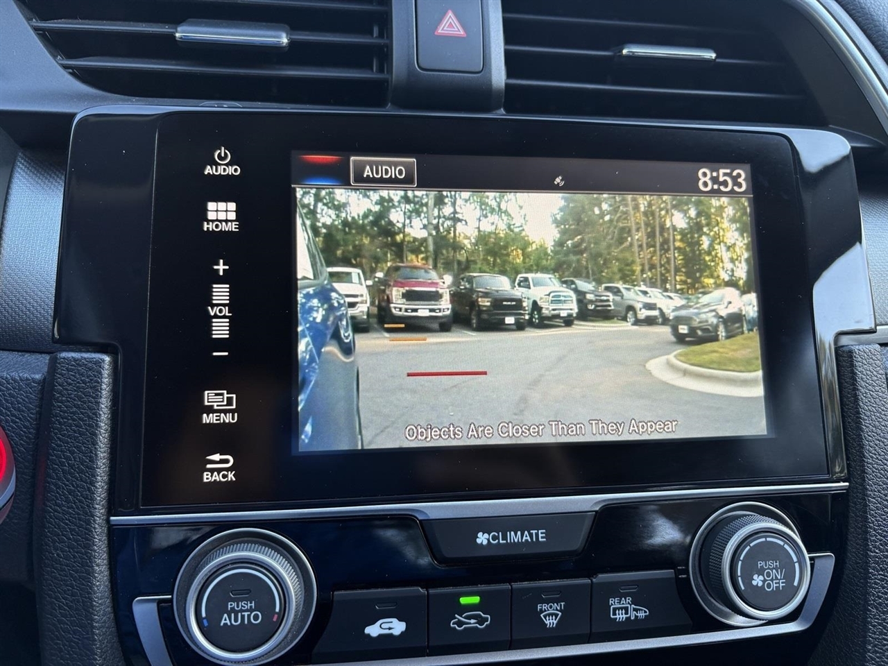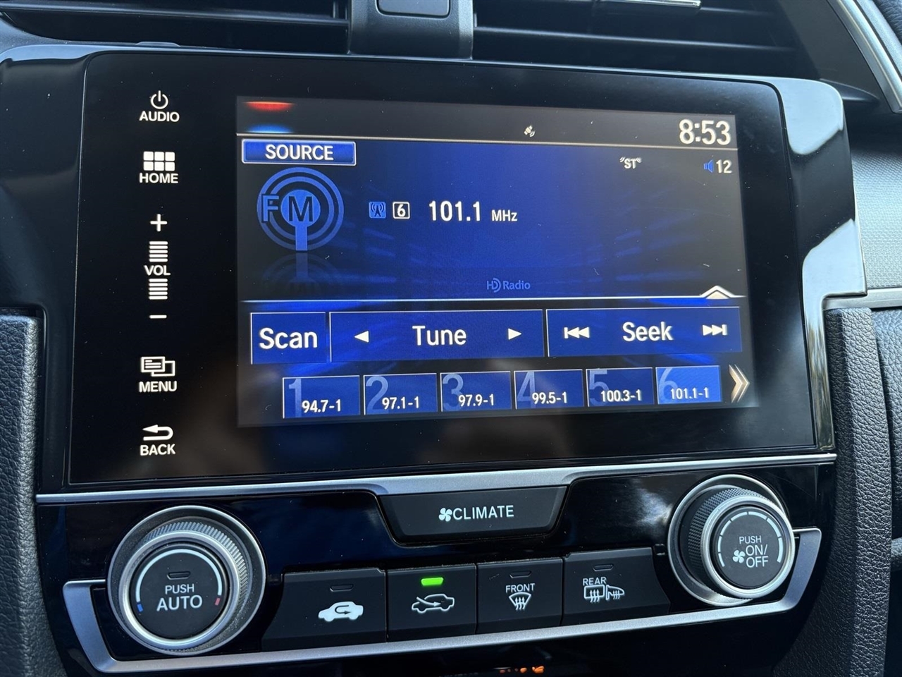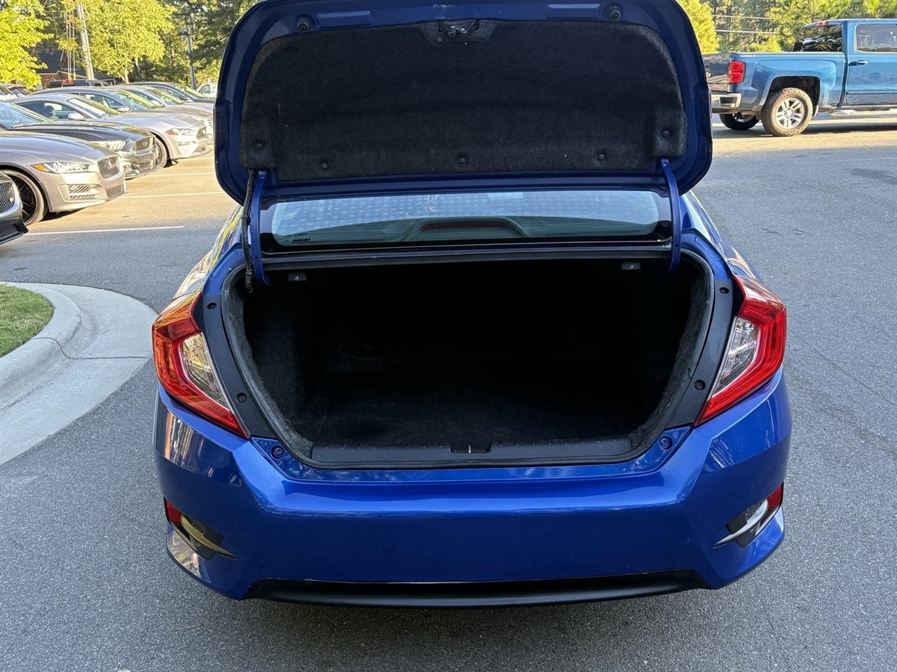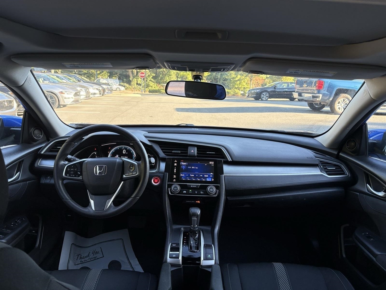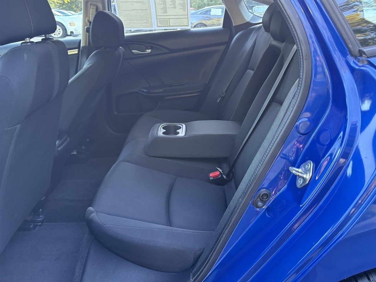 Blue 2017 Honda Civic EX FWD 2.0L I4 DOHC 16V i-VTEC CVTBlack Cloth, 16" Alloy Wheels, 4-Wheel Disc Brakes, 8 Speakers, ABS brakes, Air Conditioning, Alloy wheels, AM/FM radio, Apple CarPlay/Android Auto, Automatic temperature control, Brake assist, Bumpers: body-color, Cloth Seat Trim, Compass, Delay-off headlights, Driver door bin, Driver vanity mirror, Dual front impact airbags, Dual front side impact airbags, Electronic Stability Control, Emergency communication system, Exterior Parking Camera Rear, Four wheel independent suspension, Front anti-roll bar, Front Bucket Seats, Front Center Armrest, Front reading lights, Fully automatic headlights, Heated door mirrors, Illuminated entry, Low tire pressure warning, Occupant sensing airbag, Outside temperature display, Overhead airbag, Panic alarm, Passenger door bin, Passenger vanity mirror, Power door mirrors, Power moonroof, Power steering, Power windows, Radio data system, Radio: 180-Watt AM/FM/HD/SiriusXM Audio System, Rear anti-roll bar, Rear seat center armrest, Rear window defroster, Reclining Front Bucket Seats, Remote keyless entry, Security system, Speed control, Speed-sensing steering, Speed-Sensitive Wipers, Split folding rear seat, Steering wheel mounted audio controls, Tachometer, Telescoping steering wheel, Tilt steering wheel, Traction control, Trip computer, Variably intermittent wipers, Black Cloth.