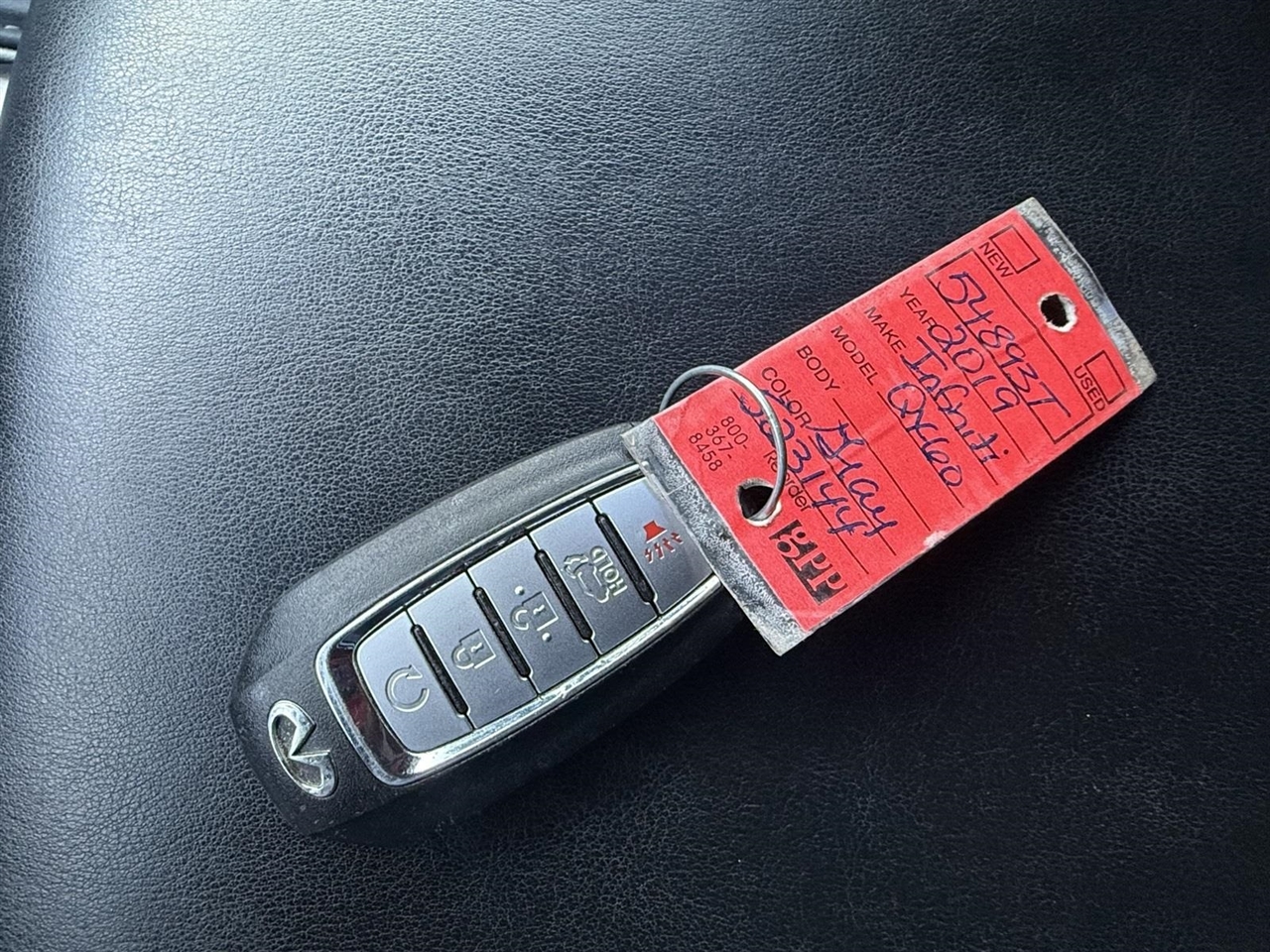 Graphite Shadow 2019 INFINITI QX60 LUXE FWD 3.5L V6 CVT13 Speakers, 3rd row seats: bench, 4-Wheel Disc Brakes, 5.25 Axle Ratio, ABS brakes, Air Conditioning, Alloy wheels, AM/FM radio: SiriusXM, Anti-whiplash front head restraints, Auto-dimming Rear-View mirror, Automatic temperature control, Bodyside moldings, Brake assist, Bumpers: body-color, CD player, Delay-off headlights, Driver door bin, Driver vanity mirror, Dual front impact airbags, Dual front side impact airbags, DVD-Audio, Electronic Stability Control, Four wheel independent suspension, Front anti-roll bar, Front Bucket Seats, Front Center Armrest w/Storage, Front dual zone A/C, Front fog lights, Front reading lights, Fully automatic headlights, Garage door transmitter: HomeLink, Heated door mirrors, Heated Front Seats, Heated front seats, Heated steering wheel, Illuminated entry, Illuminated Kick Plates (IKP), Leather steering wheel, Leatherette Seat Trim, Low tire pressure warning, Memory seat, Occupant sensing airbag, Outside temperature display, Overhead airbag, Overhead console, Panic alarm, Passenger door bin, Passenger vanity mirror, Power door mirrors, Power driver seat, Power Liftgate, Power moonroof, Power passenger seat, Power steering, Power windows, Radio data system, Radio: AM/FM/CD/DVD w/Bose Premium Audio System, Rear air conditioning, Rear anti-roll bar, Rear reading lights, Rear seat center armrest, Rear window defroster, Rear window wiper, Reclining 3rd row seat, Remote keyless entry, Roof rack: rails only, Security system, Speed control, Speed-sensing steering, Speed-Sensitive Wipers, Split folding rear seat, Spoiler, Steering wheel memory, Steering wheel mounted audio controls, Tachometer, Telescoping steering wheel, Tilt steering wheel, Traction control, Trip computer, Turn signal indicator mirrors, Variably intermittent wipers, Wheels: 18" Triple 5-Spoke Aluminum-Alloy.
