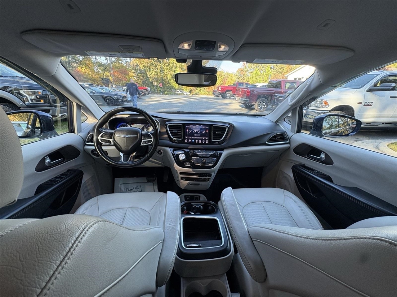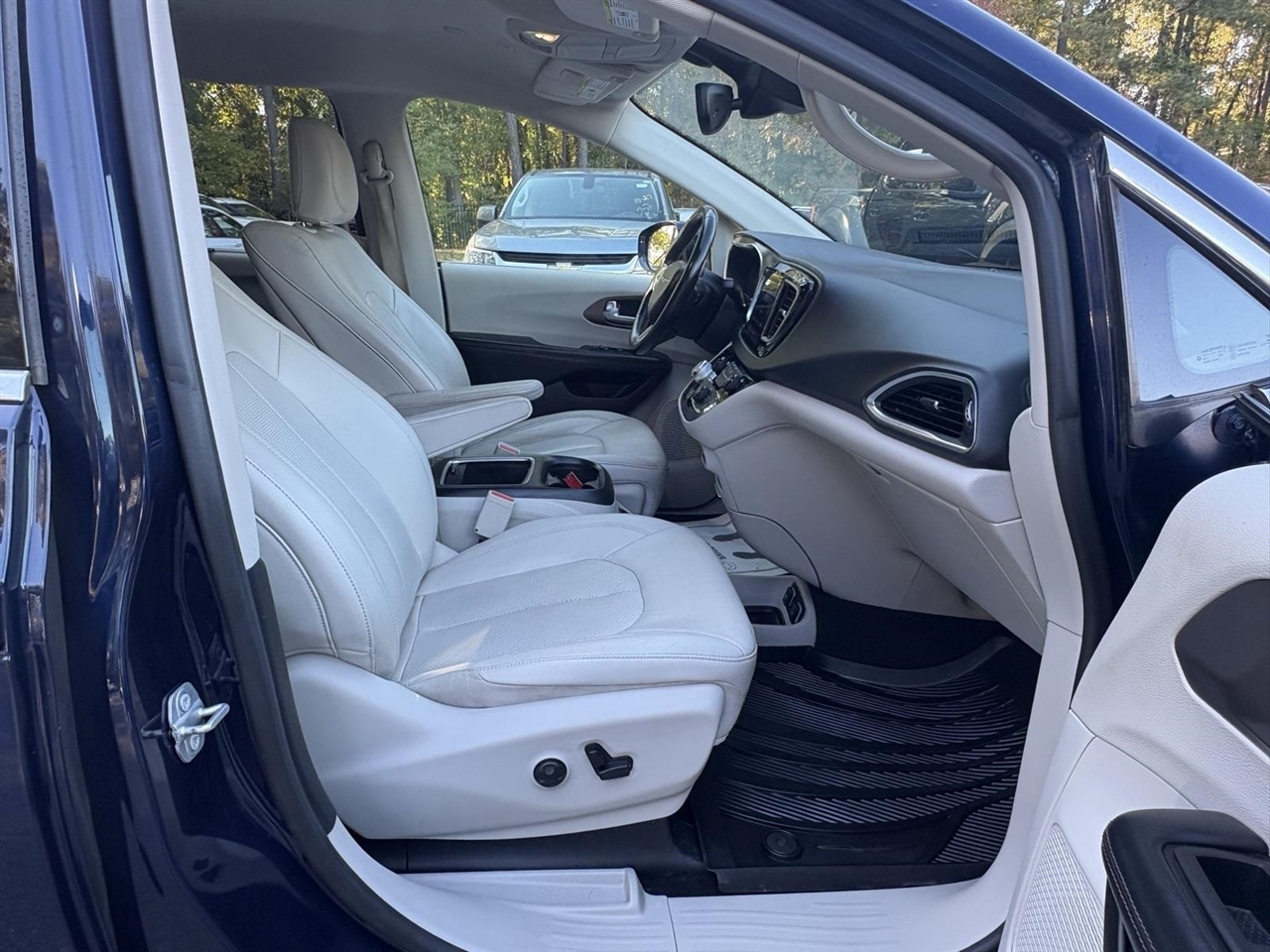 Jazz Blue Pearlcoat 2019 Chrysler Pacifica Touring L Plus FWD 3.6L V6 24V VVT 9-Speed 948TE Automatic Clean CARFAX.13 Speakers, 17" x 7.0" Polished Aluminum Wheels, 18" x 7.5" Painted Aluminum Wheels, 3.25 Axle Ratio, 360 Surround View Camera System, 3rd row seats: split-bench, 4-Wheel Disc Brakes, A/V remote, ABS brakes, Adaptive Cruise Control w/Stop & Go, Advanced Brake Assist, Advanced SafetyTec Group, Air Conditioning, Alloy Seats, Alloy wheels, AM/FM radio: SiriusXM, Apple CarPlay/Android Auto, Auto-dimming Rear-View mirror, Automatic High Beam Headlamp Control, Automatic temperature control, Blind Spot & Cross Path Detection, Bodyside moldings, Brake assist, Bumpers: body-color, CD player, Compass, Delay-off headlights, Driver door bin, Driver vanity mirror, Driver's Seat Mounted Armrest, Dual front impact airbags, Dual front side impact airbags, DVD-Audio, Electronic Stability Control, Emergency communication system: Uconnect Access, Four wheel independent suspension, Front anti-roll bar, Front Bucket Seats, Front dual zone A/C, Front fog lights, Front reading lights, Full Speed Forward Collision Warning Plus, Fully automatic headlights, Garage door transmitter, Hands Free Power Liftgate, Hands Free Sliding Door & Liftgate Group, Hands Free Sliding Doors, Headphones, Heated door mirrors, Heated front seats, Heated rear seats, Heated steering wheel, Illuminated entry, KeySense, Knee airbag, Lane Departure Warning Plus, Leather steering wheel, Low tire pressure warning, Michelin Brand Tires, Navigation System, Occupant sensing airbag, Outside temperature display, Overhead airbag, Overhead console, Panic alarm, Parallel & Perp Park Assist w/Stop, ParkSense Front/Rear Park Assist w/Stop, ParkView Rear Back-Up Camera, Passenger door bin, Passenger seat mounted armrest, Passenger vanity mirror, Perforated Leather Trim Bucket Seats, Power door mirrors, Power driver seat, Power Liftgate, Power passenger seat, Power steering, Power windows, Quick Order Package 27J, Radio data system, Radio: Uconnect 4C Nav w/8.4" Display, Rain sensing wipers, Rain Sensitive Windshield Wipers, Rear air conditioning, Rear reading lights, Rear window defroster, Rear window wiper, Reclining 3rd row seat, Remote keyless entry, Roof rack, Security system, Speed control, Split folding rear seat, Spoiler, Steering wheel mounted audio controls, Tachometer, Telescoping steering wheel, Tilt steering wheel, Tire & Wheel Group, Touring Suspension, Traction control, Trip computer, Variably intermittent wipers, Voltmeter.