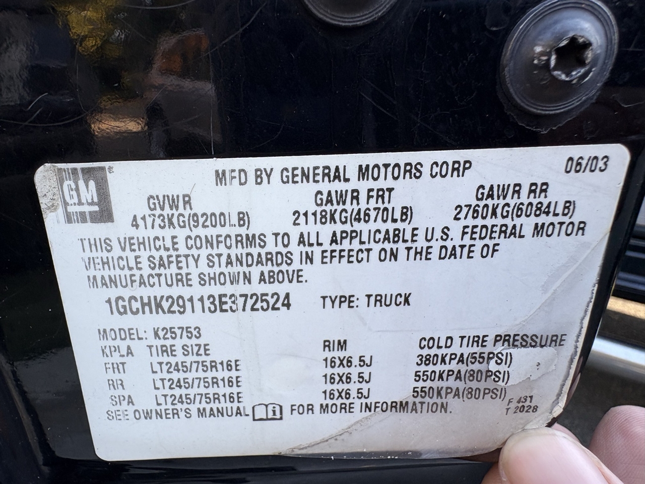 Recent Arrival! Smokin Asphalt 2003 Chevrolet Silverado 2500HD LT 4WD Duramax 6.6L V8 Turbodiesel Allison 1000 5-Speed Automatic Clean CARFAX.Duramax 6.6L V8 Turbodiesel, Allison 1000 5-Speed Automatic, 4WD, 4-Wheel Disc Brakes, ABS brakes, Air Conditioning, AM/FM radio, Bumpers: chrome, Color-Keyed Carpeted Floor Covering, Color-Keyed Grille Surround w/Chrome Accent Bar, Driver door bin, Dual front impact airbags, Electric Rear-Window Defogger, Electronic Cruise Control w/Set & Resume Speed, Engine Block Heater, Front anti-roll bar, Front dual zone A/C, Front wheel independent suspension, Fully automatic headlights, Heavy-Duty Handling/Trailering Suspension Package, Heavy-Duty Rear Locking Differential, Heavy-Duty Trailering Equipment, Passenger cancellable airbag, Passenger door bin, Passenger vanity mirror, Power Programmable Door Locks, Power steering, Rear step bumper, Skid Plate Package, Solar-Ray Deep Tinted Glass, Tachometer, Tilt steering wheel, Variably intermittent wipers, Voltmeter, Duramax 6.6L V8 Turbodiesel, Allison 1000 5-Speed Automatic, 4WD.