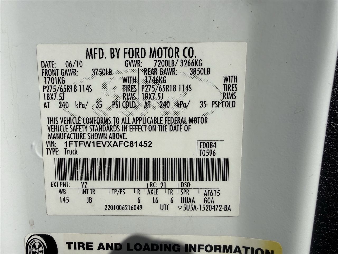 - 1FTFW1EVXAFC81452