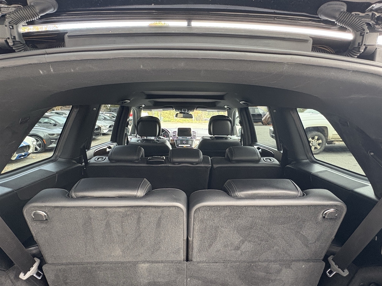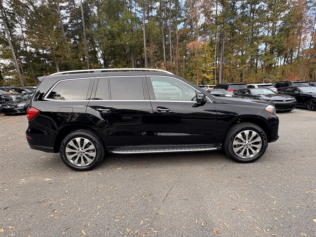 Recent Arrival! Black 2019 Mercedes-Benz GLS 450 4MATIC® 4MATIC® V6 9-Speed Automatic19" 5-Spoke Wheels, 3.27 Axle Ratio, 3rd row seats: split-bench, 4-Way Driver Lumbar Support, 4-Wheel Disc Brakes, 8 Speakers, 8-Way Power Front Seats, 8" Color Display Upgrade, ABS brakes, Air Conditioning, Alloy wheels, AM/FM radio, AM/FM/CD Radio, Anti-whiplash front head restraints, Auto tilt-away steering wheel, Auto-dimming door mirrors, Auto-dimming Rear-View mirror, Auto-leveling suspension, Automatic temperature control, Bodyside moldings, Brake assist, Bumpers: body-color, CD player, Child-Seat-Sensing Airbag, Compass, Delay-off headlights, Driver door bin, Driver vanity mirror, Dual front impact airbags, Dual front side impact airbags, DVD-Audio, Electronic Stability Control, Emergency communication system: Mercedes me connect, Eucalyptus Wood Trim, Exterior Parking Camera Rear, Four wheel independent suspension, Front anti-roll bar, Front Bucket Seats, Front Center Armrest w/Storage, Front dual zone A/C, Front reading lights, Fully automatic headlights, Garage door transmitter: Homelink, Genuine wood console insert, Genuine wood dashboard insert, Genuine wood door panel insert, Heated door mirrors, Heated Front Seats, Heated front seats, Illuminated entry, Knee airbag, Leather steering wheel, Low tire pressure warning, MB-Tex Upholstery, Memory seat, Occupant sensing airbag, Outside temperature display, Overhead airbag, Overhead console, Panic alarm, Passenger door bin, Passenger vanity mirror, Power adjustable front head restraints, Power door mirrors, Power driver seat, Power Front Seats w/Driver Memory, Power Liftgate, Power moonroof, Power passenger seat, Power steering, Power windows, Premium audio system: COMAND®, Rain sensing wipers, Rear anti-roll bar, Rear fog lights, Rear reading lights, Rear seat center armrest, Rear window defroster, Rear window wiper, Remote keyless entry, Roof rack: rails only, Security system, Single CD Player, Speed control, Speed-sensing steering, Speed-Sensitive Wipers, Split folding rear seat, Spoiler, Steering wheel memory, Steering wheel mounted audio controls, Tachometer, Telescoping steering wheel, Tilt steering wheel, Traction control, Trip computer, Turn signal indicator mirrors, Variably intermittent wipers, Weather band radio.