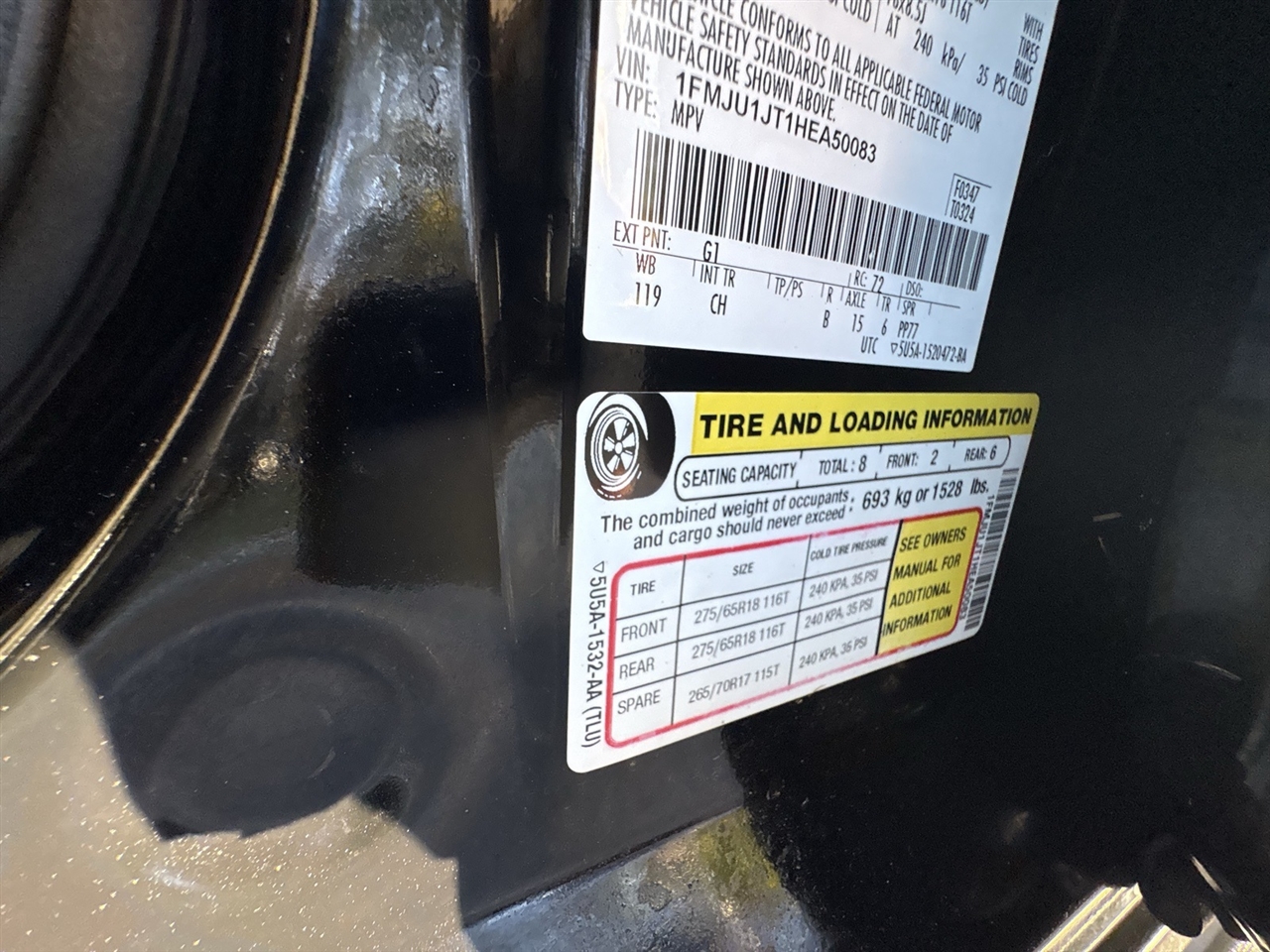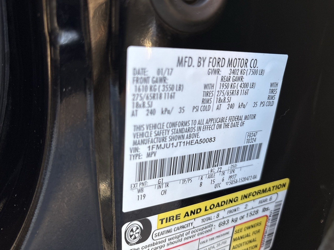 Shadow Black 2017 Ford Expedition XLT 4WD EcoBoost 3.5L V6 GTDi DOHC 24V Twin Turbocharged 6-Speed Automatic4WD, 3.31 Axle Ratio, 3rd row seats: split-bench, 4-Wheel Disc Brakes, ABS brakes, Adjustable pedals, Air Conditioning, Alloy wheels, AM/FM radio: SiriusXM, Auto-dimming Rear-View mirror, Automatic temperature control, Brake assist, Bumpers: body-color, CD player, Compass, Delay-off headlights, Driver door bin, Driver vanity mirror, Dual front impact airbags, Dual front side impact airbags, Electronic Stability Control, Emergency communication system: 911 Assist, Exterior Parking Camera Rear, Four wheel independent suspension, Front anti-roll bar, Front Bucket Seats, Front Center Armrest, Front fog lights, Front reading lights, Fully automatic headlights, Garage door transmitter, GVWR: 7,520 lbs Payload Package, Heated door mirrors, Illuminated entry, Leather steering wheel, Low tire pressure warning, Occupant sensing airbag, Outside temperature display, Overhead airbag, Overhead console, Panic alarm, Passenger door bin, Passenger vanity mirror, Power door mirrors, Power driver seat, Power Liftgate, Power steering, Power windows, Radio data system, Rear air conditioning, Rear anti-roll bar, Rear audio controls, Rear reading lights, Rear window defroster, Rear window wiper, Remote keyless entry, Roof rack, Security system, SiriusXM Satellite Radio, Speed control, Speed-sensing steering, Speed-Sensitive Wipers, Split folding rear seat, Steering wheel mounted audio controls, SYNC 3 Communications & Entertainment System, Tachometer, Telescoping steering wheel, Tilt steering wheel, Traction control, Trip computer, Variably intermittent wipers, Voltmeter, 4WD.
