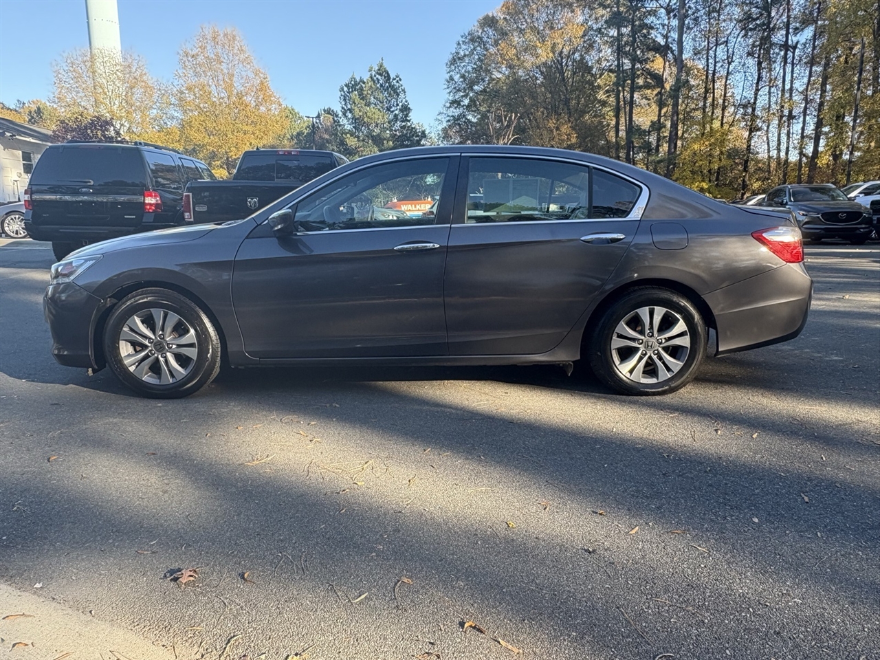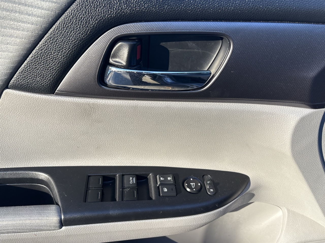 Gray 2015 Honda Accord LX FWD 2.4L I4 DOHC i-VTEC 16V CVTGray Cloth, 16" Alloy Wheels, 160-Watt AM/FM/CD Audio System, 4 Speakers, 4-Wheel Disc Brakes, ABS brakes, Air Conditioning, Alloy wheels, AM/FM radio, Automatic temperature control, Brake assist, Bumpers: body-color, CD player, Cloth Seat Trim, Delay-off headlights, Driver door bin, Driver vanity mirror, Dual front impact airbags, Dual front side impact airbags, Electronic Stability Control, Exterior Parking Camera Rear, Four wheel independent suspension, Front anti-roll bar, Front Bucket Seats, Front Center Armrest, Front dual zone A/C, Front reading lights, Fully automatic headlights, Illuminated entry, Low tire pressure warning, Occupant sensing airbag, Outside temperature display, Overhead airbag, Overhead console, Panic alarm, Passenger door bin, Passenger vanity mirror, Power door mirrors, Power steering, Power windows, Radio data system, Rear anti-roll bar, Rear seat center armrest, Rear window defroster, Remote keyless entry, Security system, Speed control, Speed-sensing steering, Speed-Sensitive Wipers, Steering wheel mounted audio controls, Tachometer, Telescoping steering wheel, Tilt steering wheel, Traction control, Trip computer, Variably intermittent wipers, Gray Cloth.
