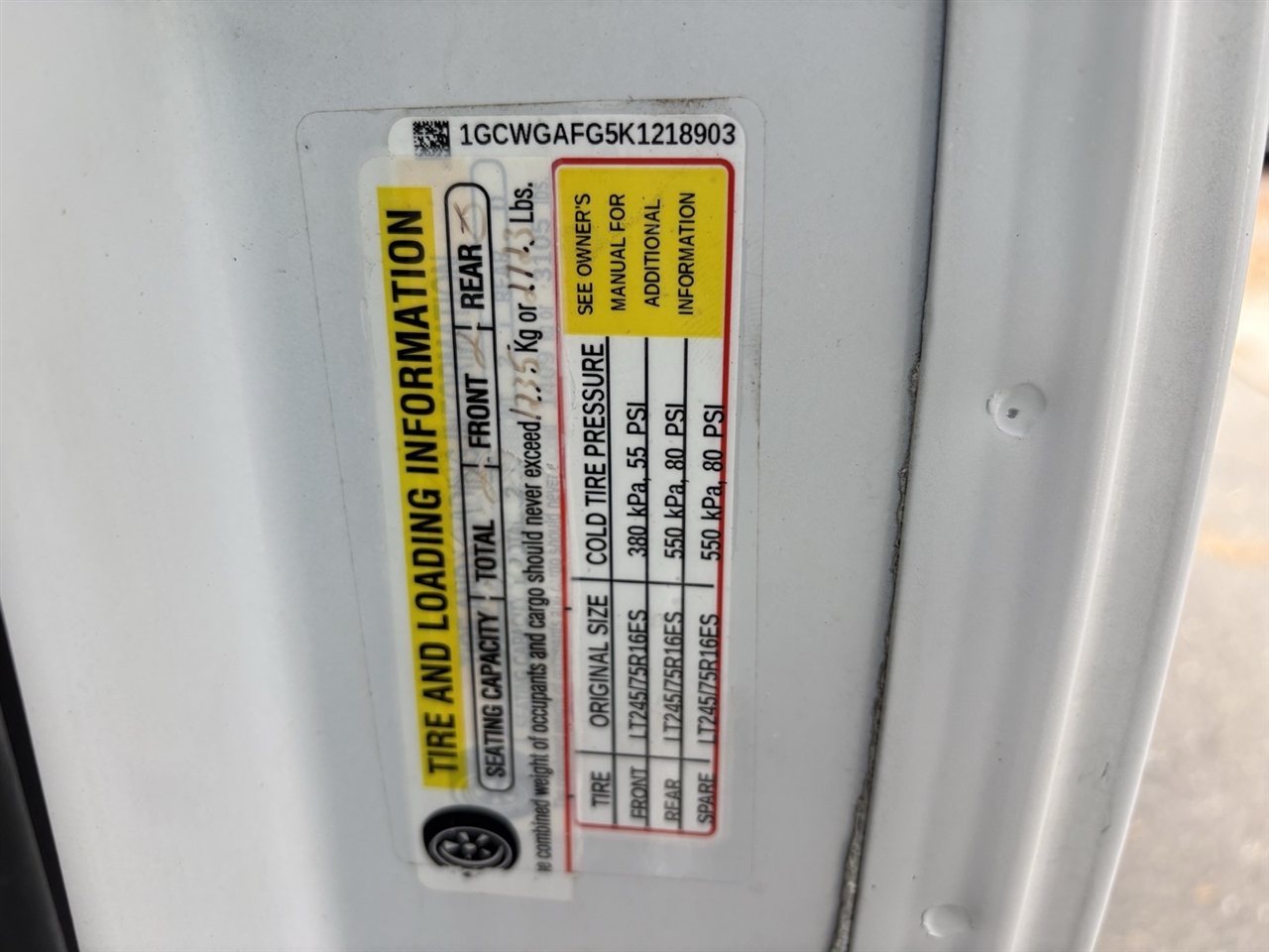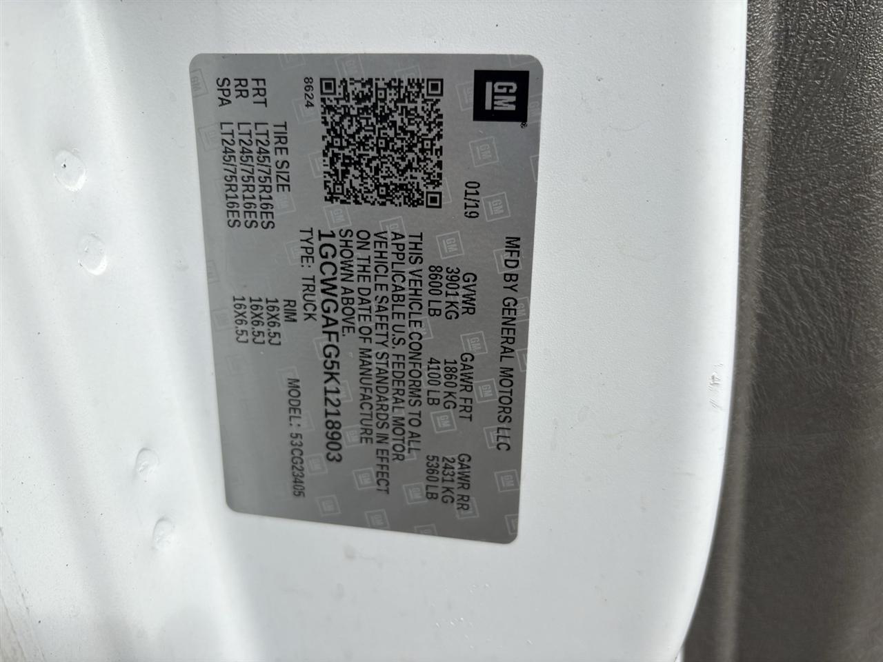Recent Arrival! Summit White 2019 Chevrolet Express 2500 Work Van Cargo RWD Vortec 6.0L V8 SFI Flex Fuel 6-Speed Automatic HD with Electronic Overdrive16" x 6.5" Steel Wheels, 2 Speakers, 3.42 Rear Axle Ratio, 4-Wheel Disc Brakes, ABS brakes, Air Conditioning, AM/FM radio, AM/FM Stereo w/MP3 Player, Black Rubberized-Vinyl Front Only Floor Covering, Chrome Appearance Package, Chrome Grille, Cruise Control, Delay-off headlights, Driver & Front Passenger High-Back Bucket Seats, Driver Convenience Package, Driver door bin, Driver's Seat Mounted Armrest, Dual front impact airbags, Dual front side impact airbags, Electronic Stability Control, Emergency communication system, Engine Cover Console w/Swing-Out Storage Bin, Exterior Parking Camera Rear, Fixed Rear Door Window Glass, Fixed Rear Side Door Window Glass, Front & Rear Chrome Bumpers w/Step-Pad, Front anti-roll bar, Front Bucket Seats, Front Reclining High-Back Bucket Seats, Front wheel independent suspension, Full-Length Black Rubberized-Vinyl Floor Covering, Fully automatic headlights, Heavy-Duty Rear Locking Differential, Low tire pressure warning, Occupant sensing airbag, Overhead airbag, Passenger cancellable airbag, Passenger door bin, Passenger seat mounted armrest, Power steering, Power windows, Preferred Equipment Group 1WT, Rear & Side Cargo Door Glass, Rear Side Door Glass Window Security Bar, Reclining Front Bucket Seats w/Inboard Armrests, Seat-Mounted & Roof-Rail Side-Impact Airbags, Single-Zone Manual Air Conditioning, Tachometer, Tilt Steering Wheel, Traction control, Trip computer, Variably intermittent wipers, Vinyl Seat Trim, Voltmeter.