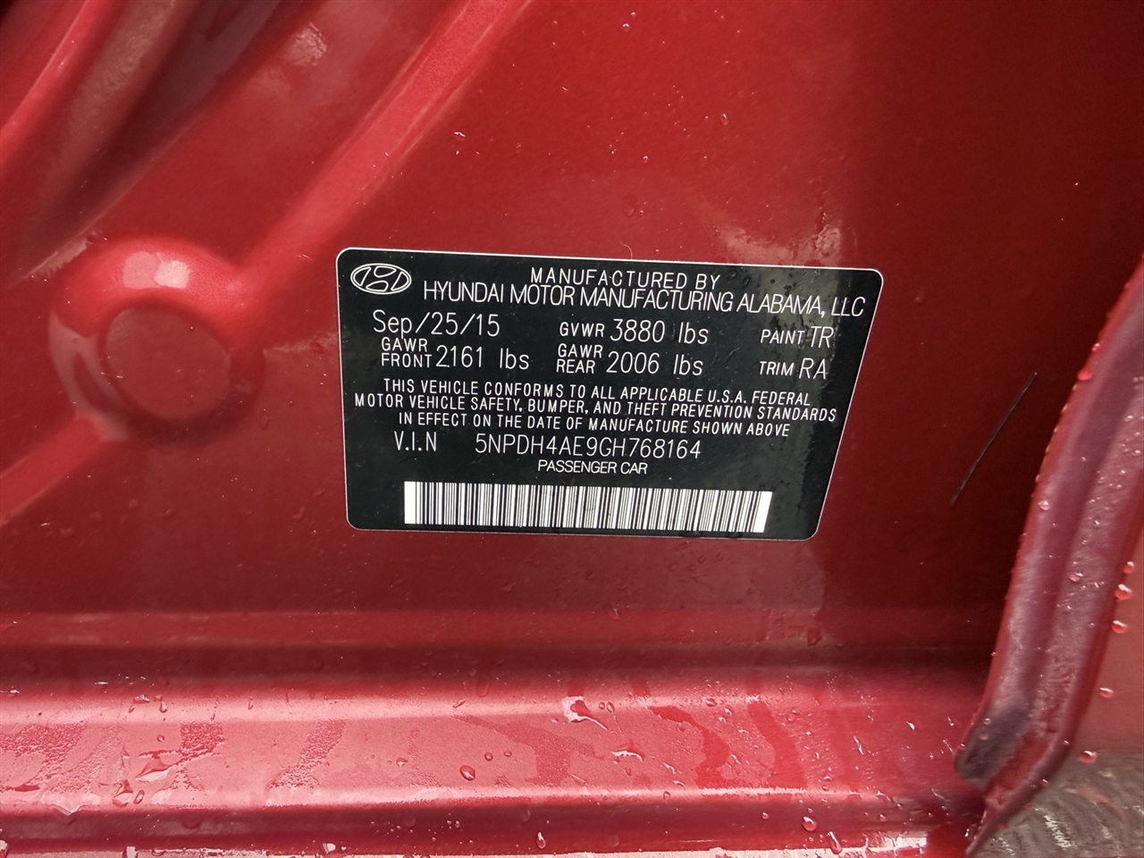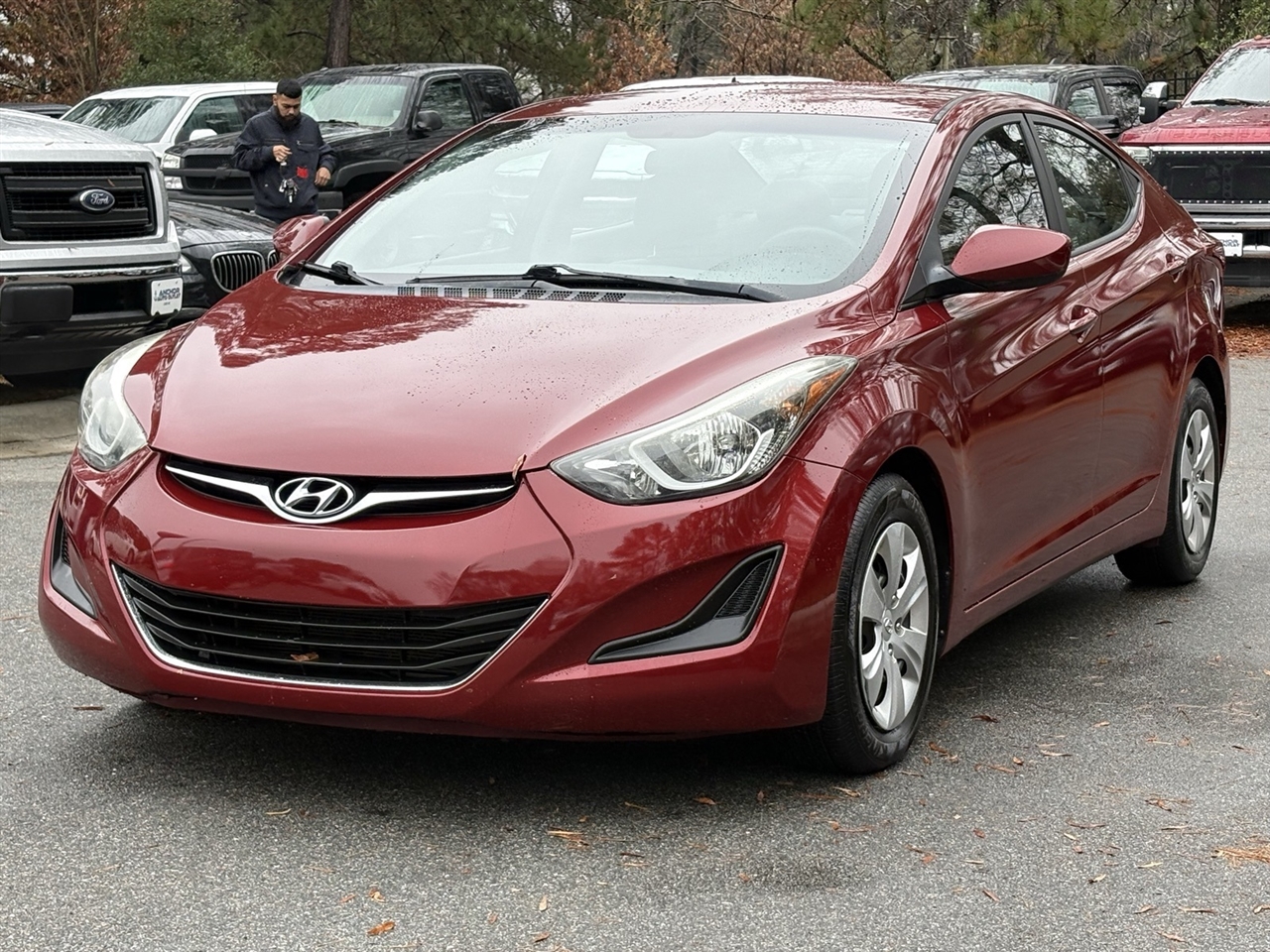 Venetian Red 2016 Hyundai Elantra SE FWD 1.8L 4-Cylinder DOHC 16V Dual CVVT 6-Speed Automatic with Shiftronic15" Steel Wheels w/Covers, 4-Wheel Disc Brakes, 6 Speakers, ABS brakes, Air Conditioning, AM/FM radio: SiriusXM, Brake assist, Bumpers: body-color, Carpeted Floor Mats, CD player, Delay-off headlights, Driver door bin, Driver vanity mirror, Dual front impact airbags, Dual front side impact airbags, Electronic Stability Control, First Aid Kit, Front anti-roll bar, Front Bucket Seats, Front Center Armrest w/Storage, Front reading lights, Front wheel independent suspension, Illuminated entry, Low tire pressure warning, Occupant sensing airbag, Option Group 1, Outside temperature display, Overhead airbag, Overhead console, Panic alarm, Passenger door bin, Passenger vanity mirror, Power door mirrors, Power steering, Power windows, Premium Cloth Seat Trim, Radio: AM/FM/SiriusXM/CD/MP3 Audio System, Rear anti-roll bar, Rear Bumper Applique, Rear seat center armrest, Rear window defroster, Remote keyless entry, Security system, Speed control, Speed-sensing steering, Split folding rear seat, Tachometer, Tilt steering wheel, Traction control, Trip computer, Variably intermittent wipers.