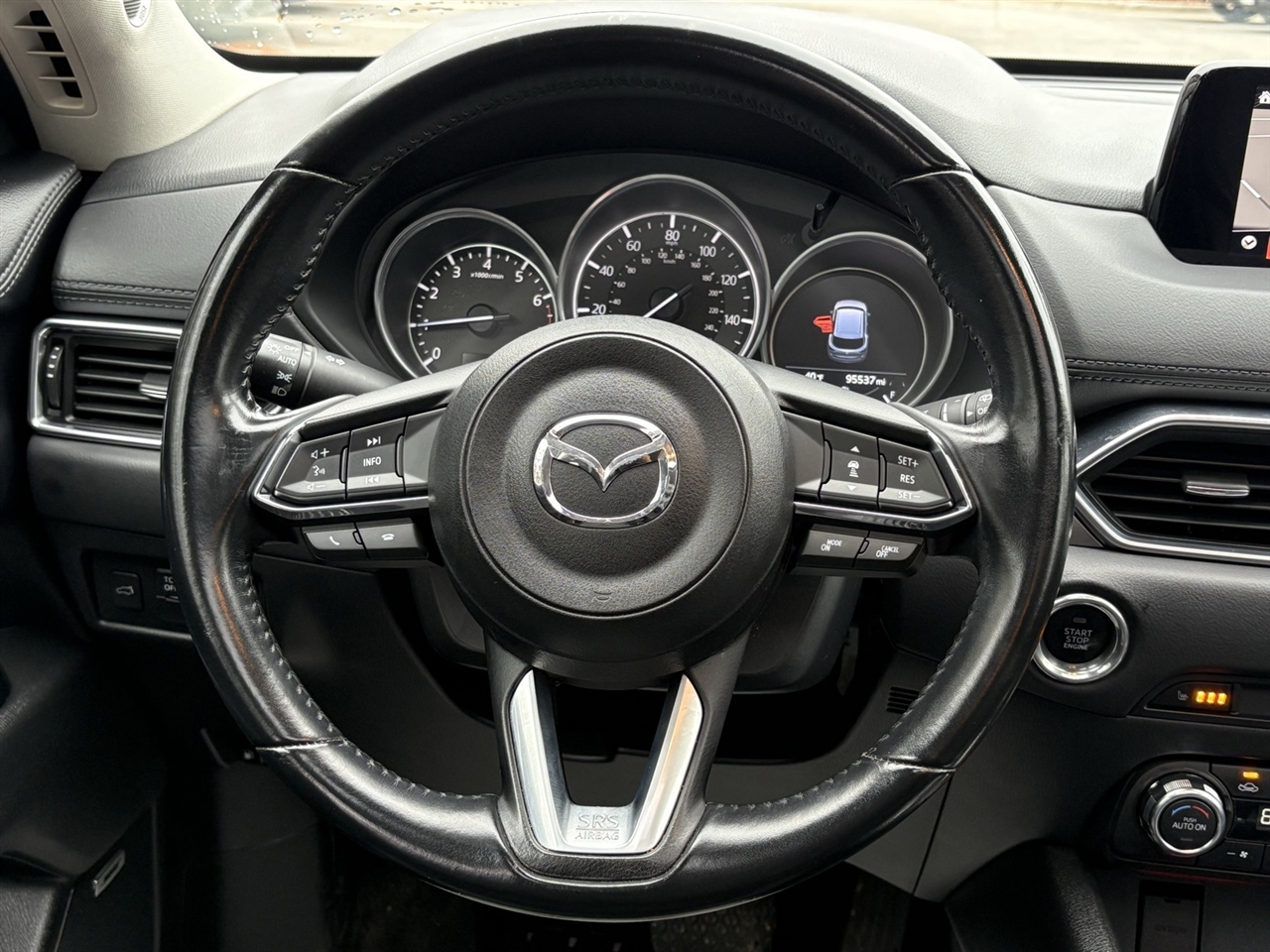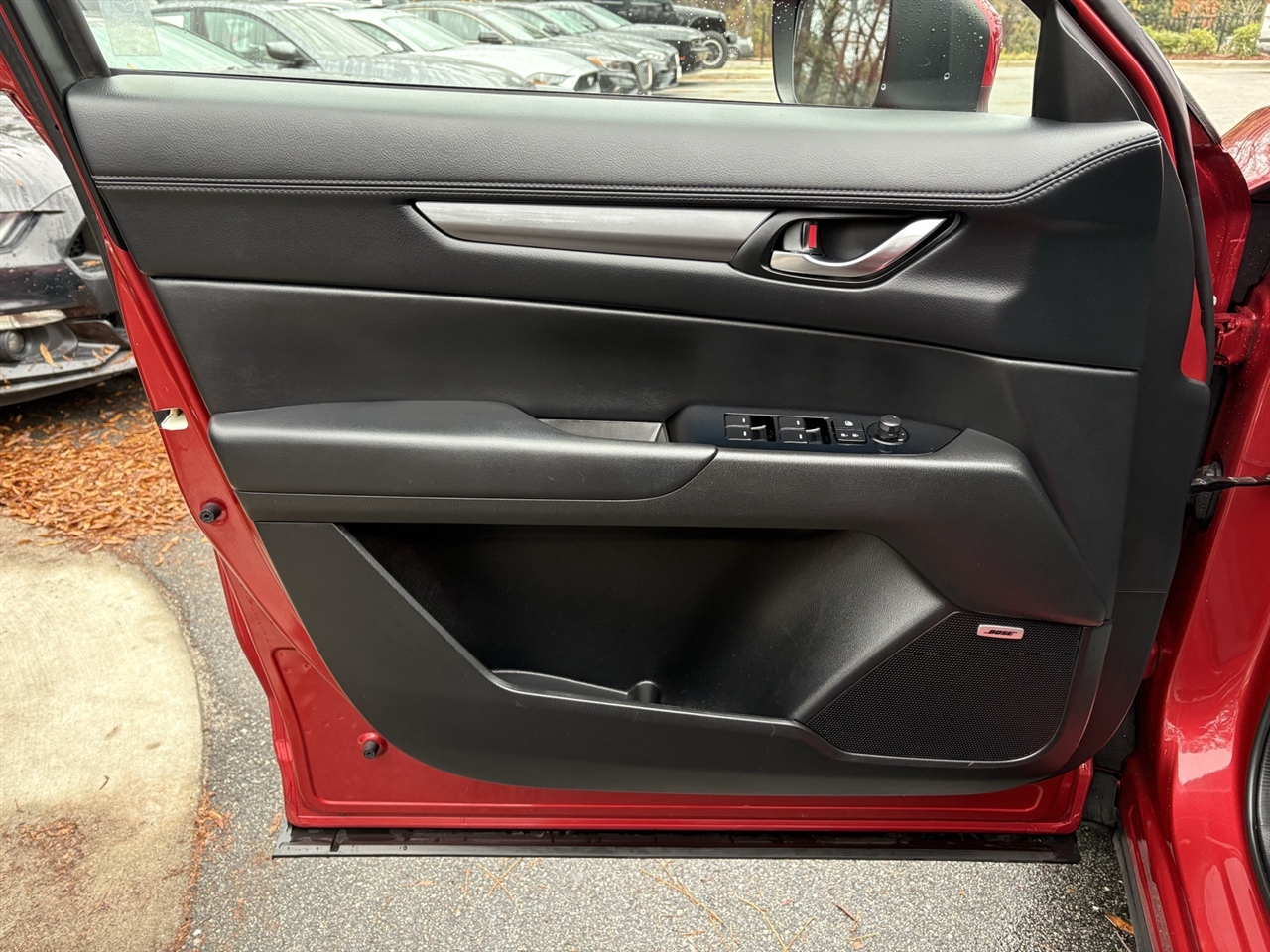 Soul Red Crystal Metallic 2018 Mazda CX-5 Touring AWD SKYACTIV® 2.5L 4-Cylinder DOHC 16V 6-Speed Automatic19 x 7J Aluminum Alloy Wheels, 4-Wheel Disc Brakes, 4.624 Axle Ratio, 6 Speakers, ABS brakes, Air Conditioning, Alloy wheels, AM/FM radio, Auto Dimming Rearview Mirror w/HomeLink, Auto High-beam Headlights, Automatic temperature control, Bose 10-Speaker Audio Sound System, Brake assist, Bumpers: body-color, Delay-off headlights, Driver door bin, Driver vanity mirror, Dual front impact airbags, Dual front side impact airbags, Electronic Stability Control, Emergency communication system, Exterior Parking Camera Rear, Four wheel independent suspension, Front anti-roll bar, Front Bucket Seats, Front Center Armrest, Front dual zone A/C, Front reading lights, Fully automatic headlights, Heated front seats, Heated Front Sport Shape Seats, Illuminated entry, Leather Shift Knob, Leatherette Seat Trim, Low tire pressure warning, Mazda Navigation System, Occupant sensing airbag, Outside temperature display, Overhead airbag, Overhead console, Panic alarm, Passenger door bin, Passenger vanity mirror, Power door mirrors, Power driver seat, Power Rear Liftgate, Power Sliding-Glass Moonroof w/Interior Sunshade, Power steering, Power windows, Preferred Equipment Package, Radio data system, Radio: AM/FM/HD Audio System, Rain sensing wipers, Rear anti-roll bar, Rear reading lights, Rear seat center armrest, Rear window defroster, Rear window wiper, Remote keyless entry, Soul Red Crystal Metallic Paint, Speed control, Speed-sensing steering, Split folding rear seat, Spoiler, Steering wheel mounted audio controls, Tachometer, Telescoping steering wheel, Tilt steering wheel, Traction control, Trip computer, Turn signal indicator mirrors, Variably intermittent wipers, Wheel Locks.