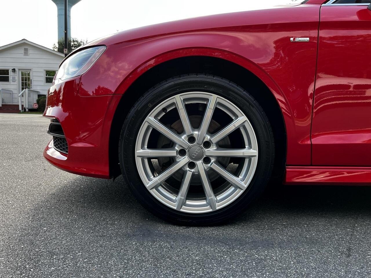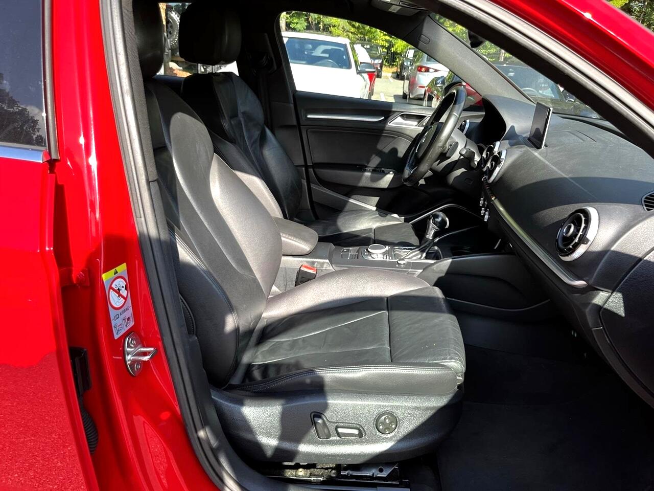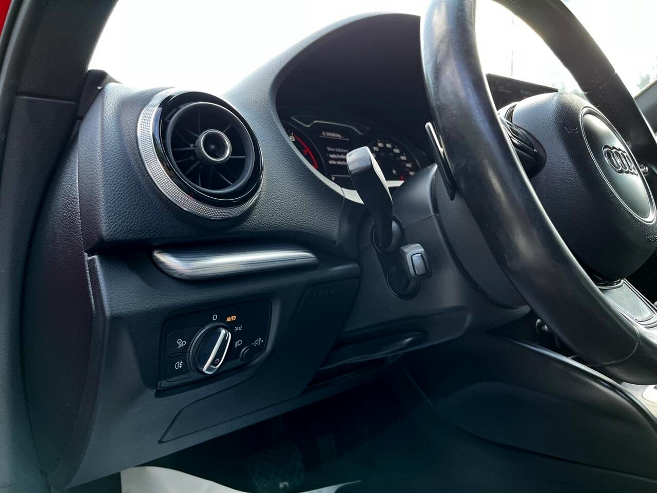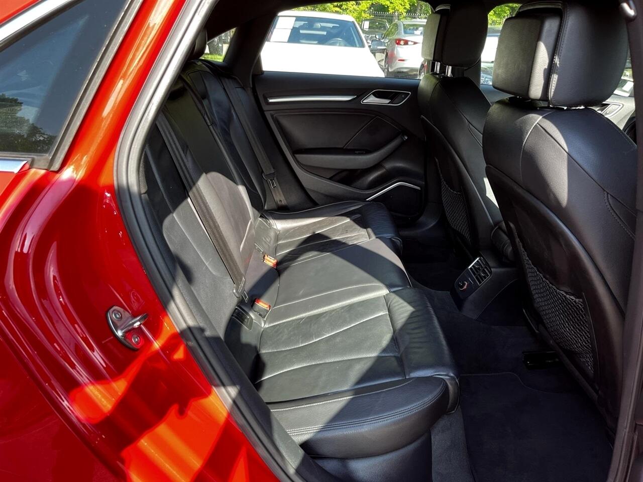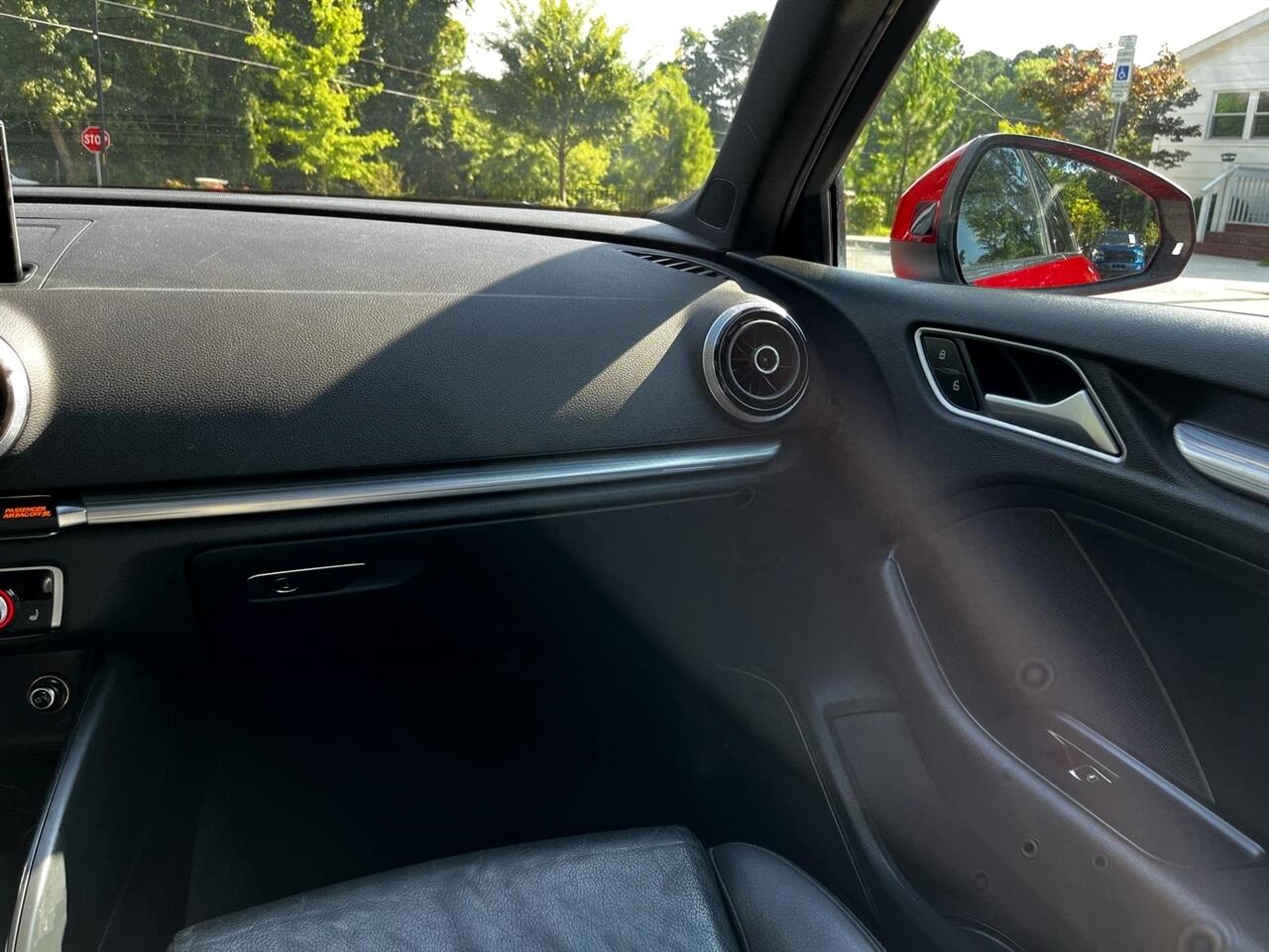 Brilliant Red 2015 Audi A3 1.8T Prestige FrontTrak 1.8L I4 Turbocharged DOHC 16V ULEV II 170hp 6-Speed S tronic® AutomaticBlack Leather, 10 Speakers, 12-Way Power Passenger Seat w/4-Way Power Lumbar, 3-Spk Multifunction Leather-Wrapped Steering Wheel, 3-Step Heated Front Seats, 4-Wheel Disc Brakes, 8-Color Driver Information System, ABS brakes, Air Conditioning, Alloy wheels, Aluminum Door Sills w/S Line Emblem, Aluminum Interior Package, Aluminum Mistral Decorative Inlays, Aluminum Style Package, AM/FM radio: SiriusXM, Anti-whiplash front head restraints, Audi Advanced Key, Audi Drive Select, Audi MMI Navigation High Control Panel, Audi MMI Navigation Plus w/Audi Connect, Audi Music Interface w/iPod Integration, Audi Parking System Plus w/Rearview Camera, Audi Side Assist, Auto-Dimming Interior Mirror w/Digital Compass, Automatic temperature control, Black Cloth Headliner, Brake assist, Bumpers: body-color, CD player, Cold Weather Package, Convenience Package, Delay-off headlights, Driver Assistance Package, Driver door bin, Driver vanity mirror, Dual front impact airbags, Dual front side impact airbags, Electronic Stability Control, Four wheel independent suspension, Front anti-roll bar, Front Bucket Seats, Front Center Armrest, Front dual zone A/C, Front reading lights, Front Sport Seats, Full LED Headlights, Heated Side Mirrors, Heated Windshield Washer Nozzles, High intensity discharge headlights: Xenon plus, High-Gloss Aluminum Window Surrounds, High-Gloss Black Grille, Illuminated entry, Interior Storage Package, Knee airbag, Leather Seating Surfaces, Leather Shift Knob, Leather steering wheel, LED Interior Lighting Package, Low tire pressure warning, Occupant sensing airbag, Outside temperature display, Overhead airbag, Panic alarm, Passenger door bin, Passenger vanity mirror, Power door mirrors, Power driver seat, Power moonroof, Power steering, Power windows, Power-Folding Side Mirrors, Prestige Package, Radio data system, Radio: Audi Concert AM/FM/SiriusXM w/CD Player, Radio: Audi MMI Navigation Plus w/MMI Touch, Rain sensing wipers, Rear anti-roll bar, Rear fog lights, Rear reading lights, Rear seat center armrest, Rear window defroster, Remote keyless entry, Security system, Speed control, Speed-sensing steering, Speed-Sensitive Wipers, Split folding rear seat, Sport Package (DISC), Steering wheel mounted audio controls, Tachometer, Telescoping steering wheel, Tilt steering wheel, Traction control, Trip computer, Turn signal indicator mirrors, Variably intermittent wipers, Wheels: 7.5J x 17" 5-Spoke-Star-Design, Wheels: 8.0J x 18" 10-Spoke-Audi-Exclusive, Black Leather.