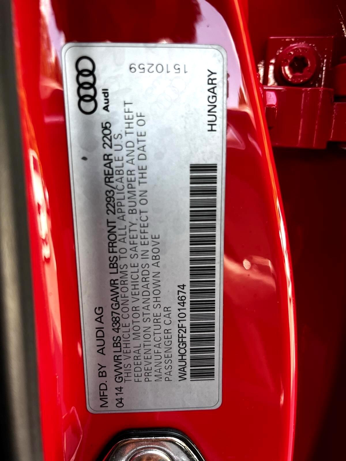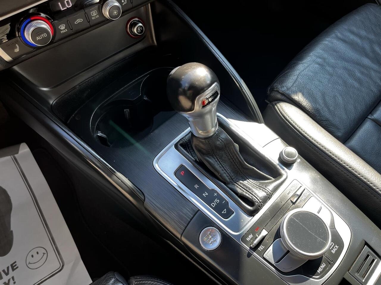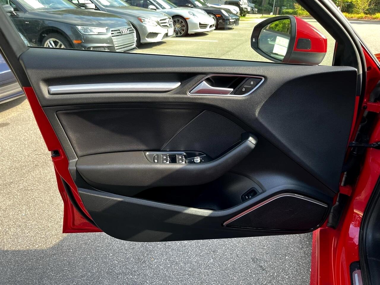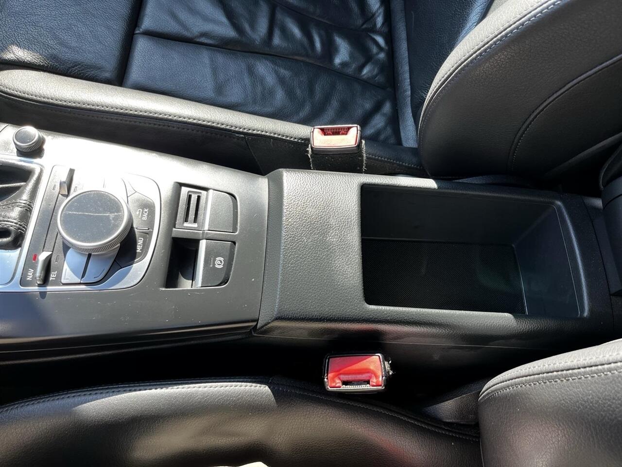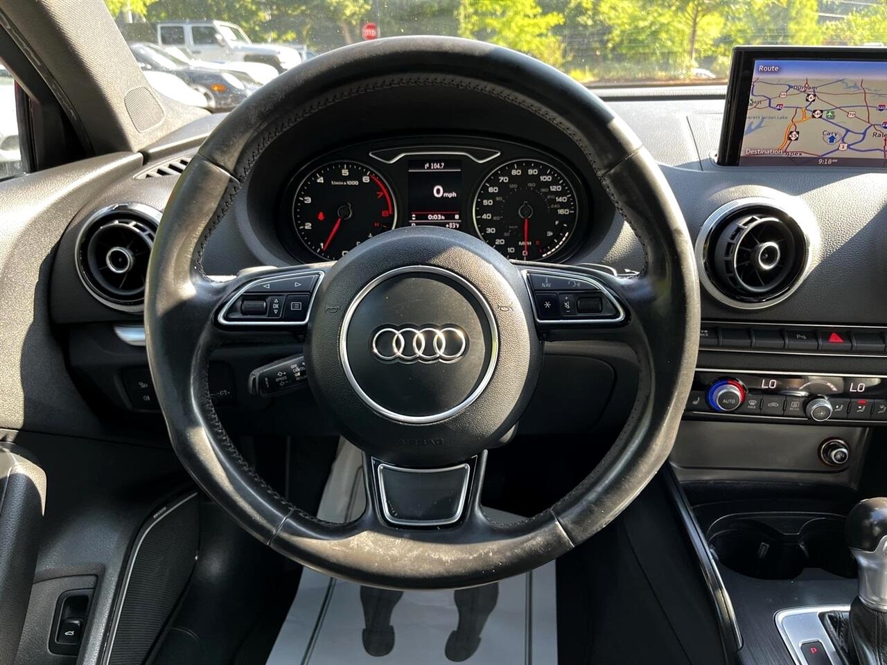 Brilliant Red 2015 Audi A3 1.8T Prestige FrontTrak 1.8L I4 Turbocharged DOHC 16V ULEV II 170hp 6-Speed S tronic® AutomaticBlack Leather, 10 Speakers, 12-Way Power Passenger Seat w/4-Way Power Lumbar, 3-Spk Multifunction Leather-Wrapped Steering Wheel, 3-Step Heated Front Seats, 4-Wheel Disc Brakes, 8-Color Driver Information System, ABS brakes, Air Conditioning, Alloy wheels, Aluminum Door Sills w/S Line Emblem, Aluminum Interior Package, Aluminum Mistral Decorative Inlays, Aluminum Style Package, AM/FM radio: SiriusXM, Anti-whiplash front head restraints, Audi Advanced Key, Audi Drive Select, Audi MMI Navigation High Control Panel, Audi MMI Navigation Plus w/Audi Connect, Audi Music Interface w/iPod Integration, Audi Parking System Plus w/Rearview Camera, Audi Side Assist, Auto-Dimming Interior Mirror w/Digital Compass, Automatic temperature control, Black Cloth Headliner, Brake assist, Bumpers: body-color, CD player, Cold Weather Package, Convenience Package, Delay-off headlights, Driver Assistance Package, Driver door bin, Driver vanity mirror, Dual front impact airbags, Dual front side impact airbags, Electronic Stability Control, Four wheel independent suspension, Front anti-roll bar, Front Bucket Seats, Front Center Armrest, Front dual zone A/C, Front reading lights, Front Sport Seats, Full LED Headlights, Heated Side Mirrors, Heated Windshield Washer Nozzles, High intensity discharge headlights: Xenon plus, High-Gloss Aluminum Window Surrounds, High-Gloss Black Grille, Illuminated entry, Interior Storage Package, Knee airbag, Leather Seating Surfaces, Leather Shift Knob, Leather steering wheel, LED Interior Lighting Package, Low tire pressure warning, Occupant sensing airbag, Outside temperature display, Overhead airbag, Panic alarm, Passenger door bin, Passenger vanity mirror, Power door mirrors, Power driver seat, Power moonroof, Power steering, Power windows, Power-Folding Side Mirrors, Prestige Package, Radio data system, Radio: Audi Concert AM/FM/SiriusXM w/CD Player, Radio: Audi MMI Navigation Plus w/MMI Touch, Rain sensing wipers, Rear anti-roll bar, Rear fog lights, Rear reading lights, Rear seat center armrest, Rear window defroster, Remote keyless entry, Security system, Speed control, Speed-sensing steering, Speed-Sensitive Wipers, Split folding rear seat, Sport Package (DISC), Steering wheel mounted audio controls, Tachometer, Telescoping steering wheel, Tilt steering wheel, Traction control, Trip computer, Turn signal indicator mirrors, Variably intermittent wipers, Wheels: 7.5J x 17" 5-Spoke-Star-Design, Wheels: 8.0J x 18" 10-Spoke-Audi-Exclusive, Black Leather.