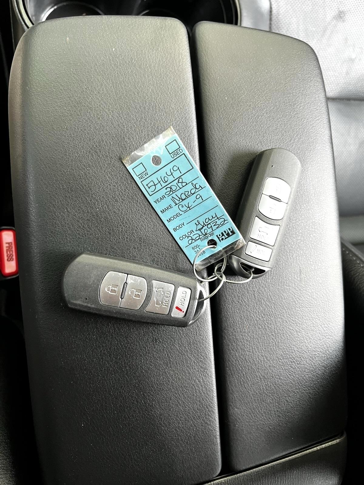 Machine Gray 2018 Mazda CX-9 Touring AWD 2.5L 4-Cylinder 6-Speed AutomaticAWD, 3rd row seats: bench, 4-Wheel Disc Brakes, 6 Speakers, ABS brakes, Aha Internet Radio, Air Conditioning, Alloy wheels, AM/FM radio, Auto-dimming Rear-View mirror, Automatic temperature control, Axle Ratio: 4.411, Brake assist, Bumpers: body-color, Compass, Delay-off headlights, Driver door bin, Driver vanity mirror, Dual front impact airbags, Dual front side impact airbags, E911 Automatic Emergency Notification, Electronic Stability Control, Emergency communication system: MAZDA CONNECT, Exterior Parking Camera Rear, Four wheel independent suspension, Front anti-roll bar, Front Bucket Seats, Front Center Armrest, Front dual zone A/C, Front reading lights, Fully automatic headlights, Garage door transmitter: HomeLink, Heated door mirrors, Heated Front Bucket Seats, Heated front seats, Illuminated entry, Infotainment System Voice Command, Leather Shift Knob, Leather steering wheel, Leather-Trimmed Seats, Low tire pressure warning, Occupant sensing airbag, Outside temperature display, Overhead airbag, Overhead console, Pandora Internet Radio, Panic alarm, Passenger door bin, Passenger vanity mirror, Power door mirrors, Power driver seat, Power Liftgate, Power passenger seat, Power steering, Power windows, Radio Broadcast Data System Program Information, Radio data system, Radio: AM/FM Sound System, Rain sensing wipers, Rear air conditioning, Rear anti-roll bar, Rear reading lights, Rear seat center armrest, Rear window defroster, Rear window wiper, Remote keyless entry, SMS Text Msg Audio Delivery & Reply, Speed control, Speed-sensing steering, Split folding rear seat, Spoiler, Steering wheel mounted audio controls, Stitcher Internet Radio, Tachometer, Telescoping steering wheel, Tilt steering wheel, Traction control, Trip computer, Turn signal indicator mirrors, Variably intermittent wipers, Wheels: 18" x 8"J Aluminum Alloy, AWD.
