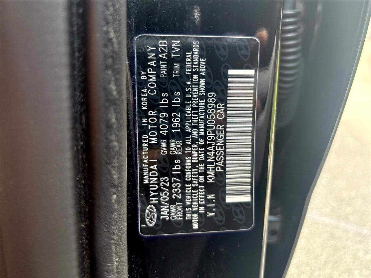 Onyx Black 2023 Hyundai Elantra Hybrid Limited FWD I4 6-Speed Dual ClutchI4, 17" x 7.0J Alloy Wheels, 4-Wheel Disc Brakes, 8 Speakers, ABS brakes, Air Conditioning, Alloy wheels, AM/FM radio: SiriusXM, Apple CarPlay & Android Auto, Auto High-beam Headlights, Auto-dimming Rear-View mirror, Automatic temperature control, Brake assist, Bumpers: body-color, Cargo Block, Cargo Net, Cargo Package, Carpeted Floor Mats, Delay-off headlights, Driver door bin, Driver vanity mirror, Dual front impact airbags, Dual front side impact airbags, Electronic Stability Control, Emergency communication system: Blue Link Connected Car Service (3-year complimentary subscription), Exterior Parking Camera Rear, First Aid Kit, Front anti-roll bar, Front Bucket Seats, Front Center Armrest, Front dual zone A/C, Front reading lights, Front wheel independent suspension, Fully automatic headlights, Heated & Ventilated Front Bucket Seats, Heated door mirrors, Heated front seats, Illuminated entry, Leather Seat Trim, Leather Shift Knob, Low tire pressure warning, Memory seat, Navigation System, Occupant sensing airbag, Option Group 01, Outside temperature display, Overhead airbag, Overhead console, Panic alarm, Passenger door bin, Passenger vanity mirror, Power door mirrors, Power driver seat, Power moonroof, Power steering, Power windows, Radio: AM/FM/HD/SiriusXM Display Audio, Rear seat center armrest, Rear window defroster, Remote keyless entry, Reversible Cargo Tray, Security system, Speed control, Speed-sensing steering, Split folding rear seat, Steering wheel mounted audio controls, Tachometer, Telescoping steering wheel, Tilt steering wheel, Traction control, Trip computer, Turn signal indicator mirrors, Variably intermittent wipers, Ventilated front seats, I4.