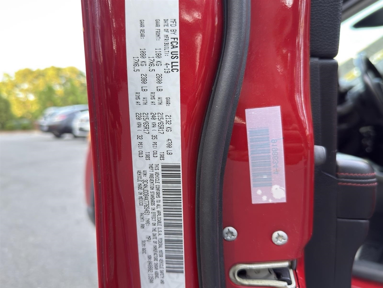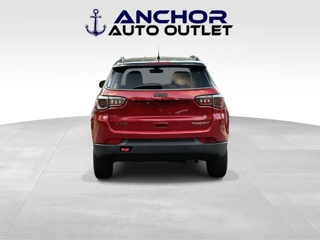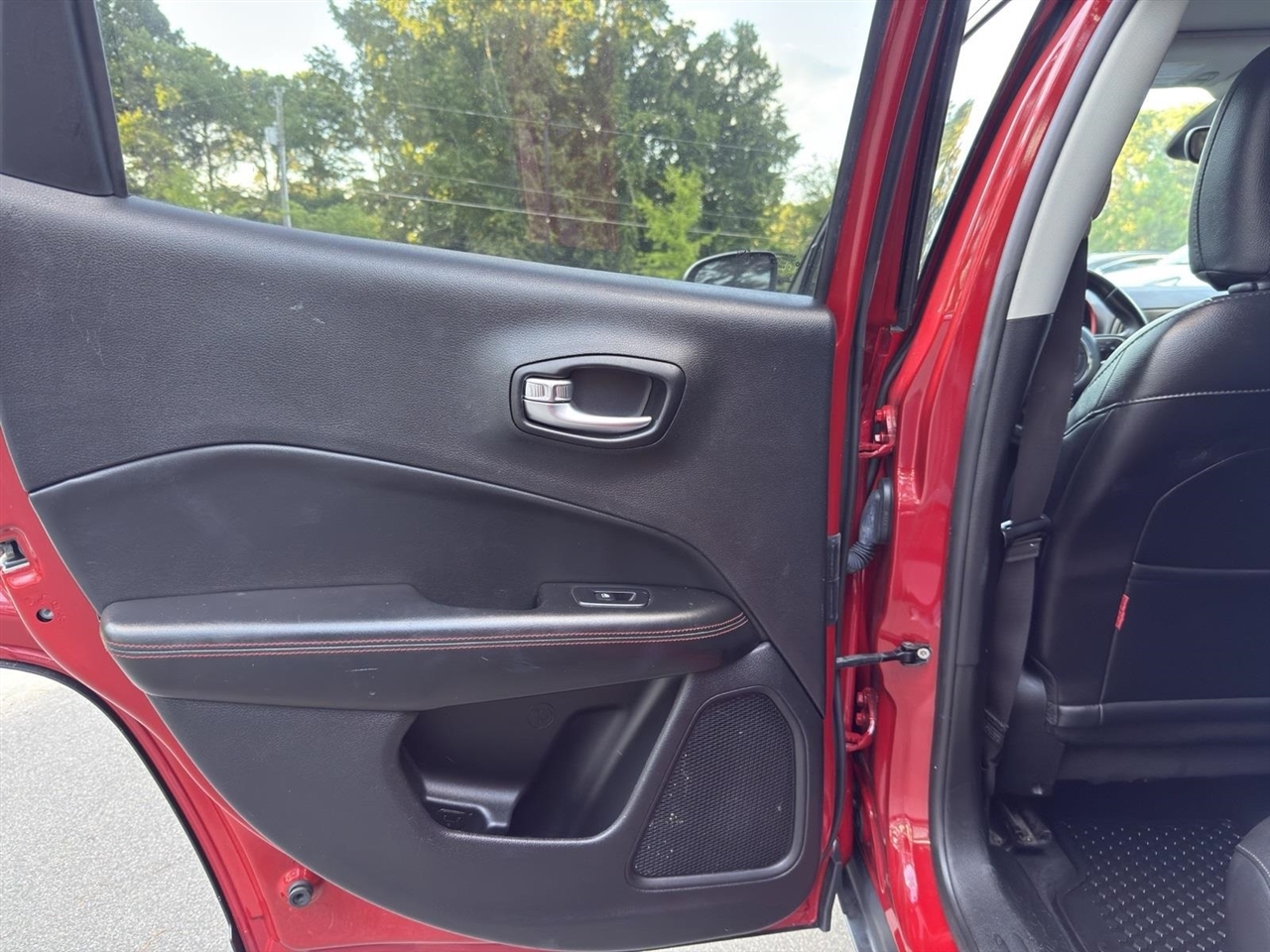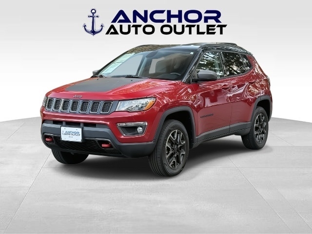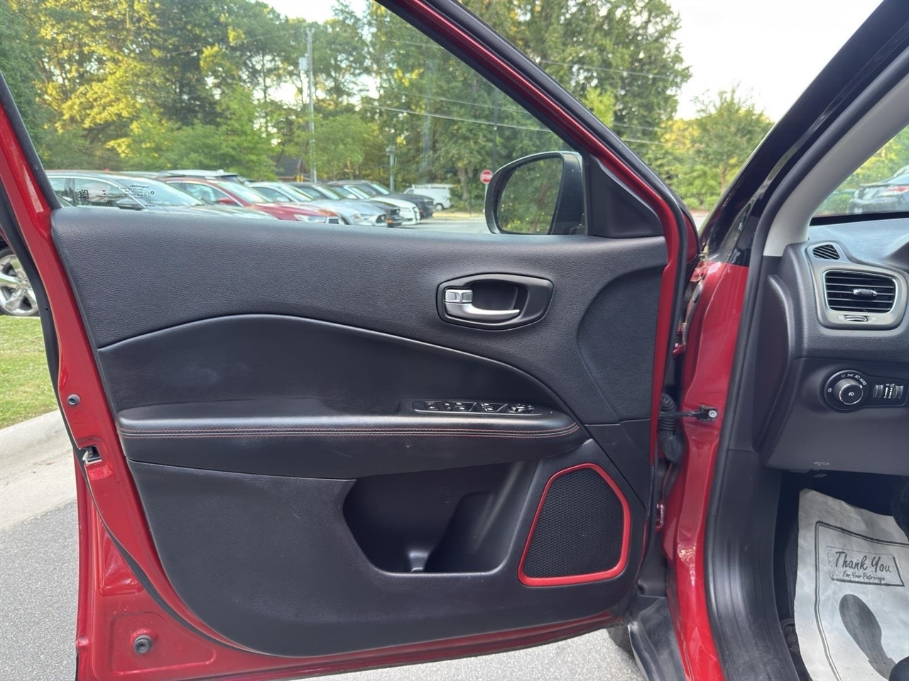 Redline Pearlcoat 2019 Jeep Compass Trailhawk 4WD 2.4L I4 9-Speed Automatic4WD, 4-Wheel Disc Brakes, 4.334 Axle Ratio, 6 Speakers, ABS brakes, Air Conditioning, Alloy wheels, AM/FM radio: SiriusXM, Anti-whiplash front head restraints, Apple CarPlay/Android Auto, Automatic temperature control, Brake assist, Bumpers: body-color, Compass, Delay-off headlights, Driver door bin, Driver vanity mirror, Dual front impact airbags, Dual front side impact airbags, Electronic Stability Control, Four wheel independent suspension, Front anti-roll bar, Front Bucket Seats, Front Center Armrest w/Storage, Front dual zone A/C, Front fog lights, Front reading lights, Fully automatic headlights, Google Android Auto, GPS Antenna Input, Heated door mirrors, Illuminated entry, Knee airbag, Leather Shift Knob, Low tire pressure warning, Manufacturer's Statement of Origin, Occupant sensing airbag, Outside temperature display, Overhead airbag, Overhead console, Panic alarm, ParkView Rear Back-Up Camera, Passenger door bin, Passenger vanity mirror, Power door mirrors, Power steering, Power windows, Premium Cloth/Leather Trim Bucket Seats, Quick Order Package 27E (DISC), Radio: Uconnect 4 w/8.4" Display, Rear anti-roll bar, Rear seat center armrest, Rear window defroster, Rear window wiper, Remote keyless entry, Roof rack: rails only, Speed control, Split folding rear seat, Spoiler, Steering wheel mounted audio controls, Tachometer, Telescoping steering wheel, Tilt steering wheel, Traction control, Trip computer, Turn signal indicator mirrors, USB Host Flip, Variably intermittent wipers, Wheels: 17" x 6.5" Painted/Bright Aluminum, 4WD.