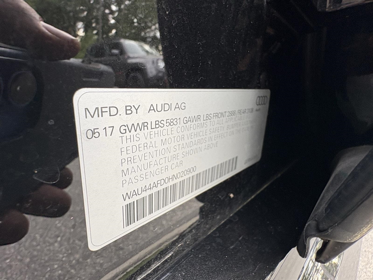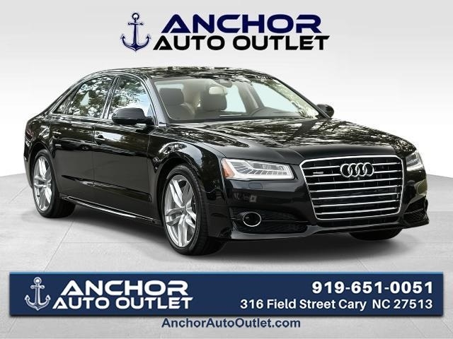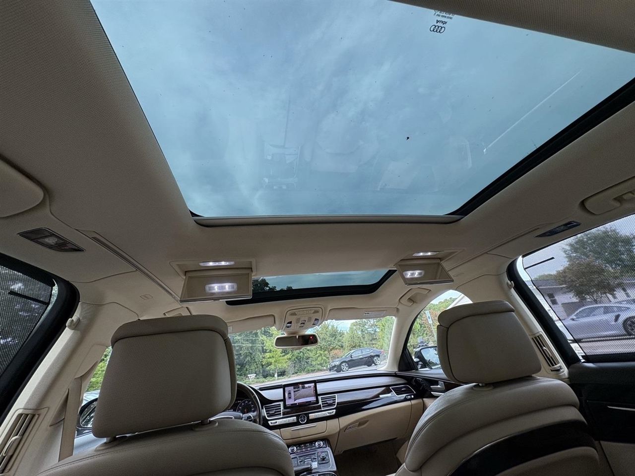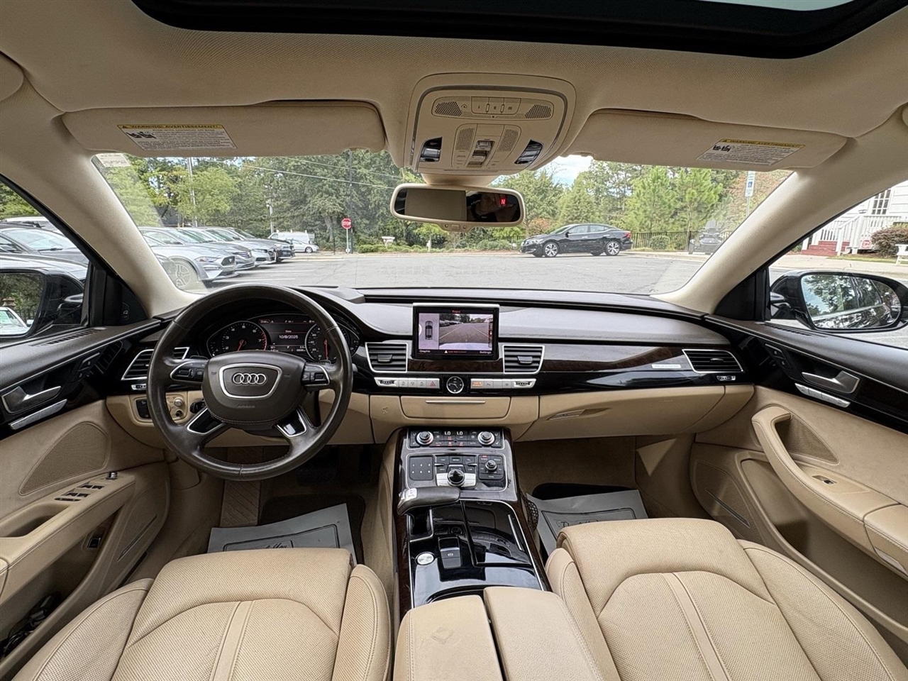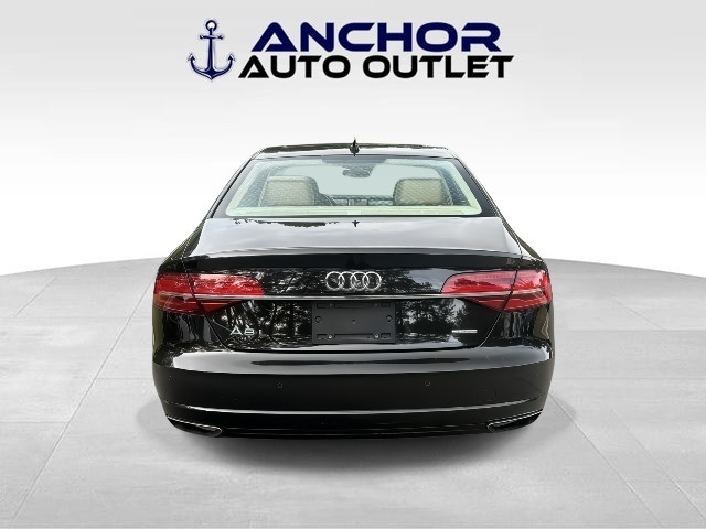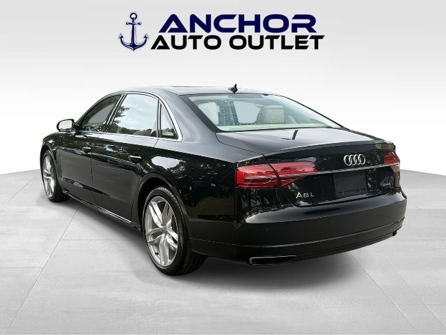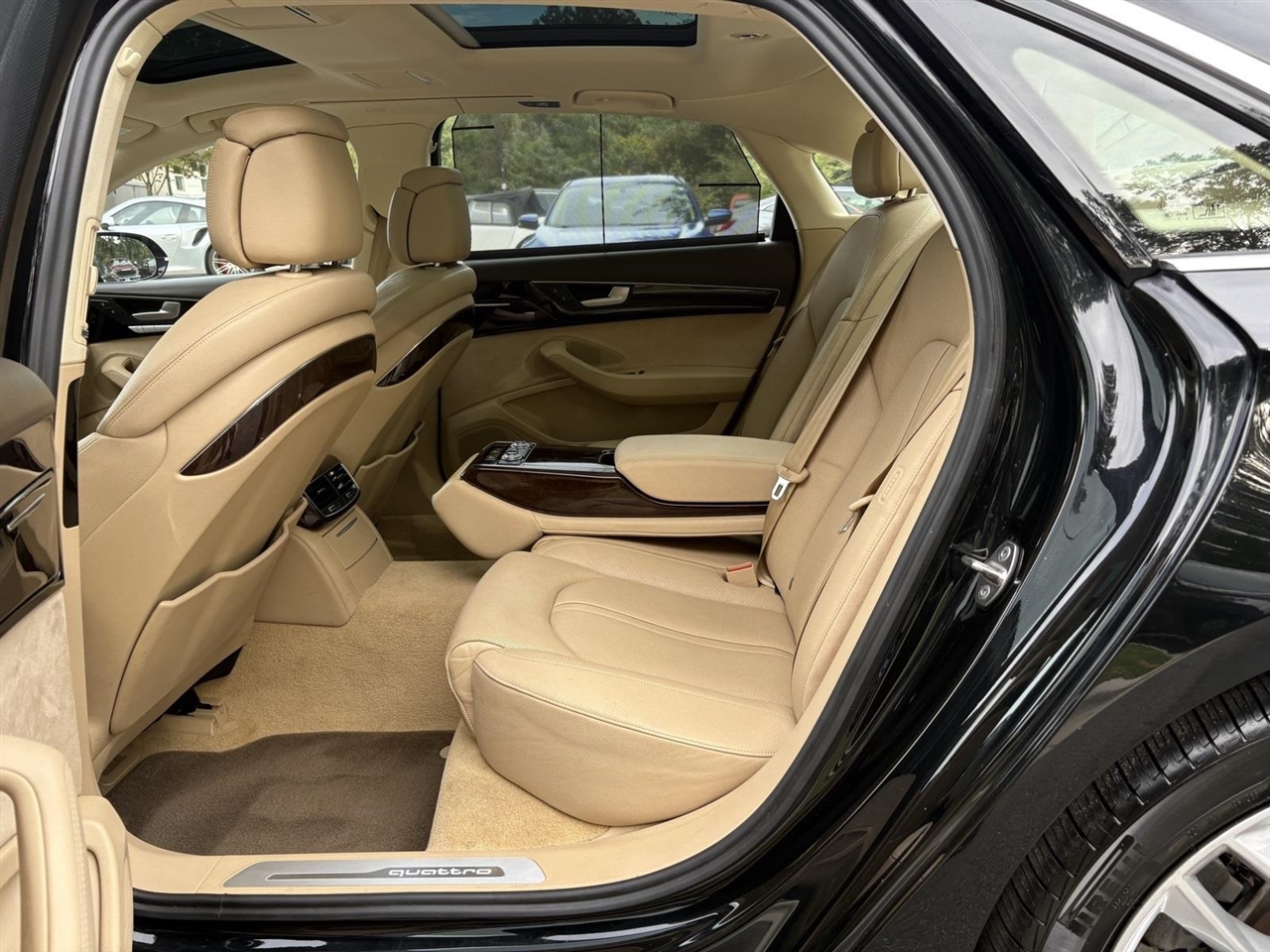 Black Metallic 2017 Audi A8 L 3.0T quattro quattro 3.0L V6 Turbocharged DOHC 24V ULEV II 333hp 8-Speed Automatic with TiptronicVelvet Beige Leather, 14 Speakers, 18-Way Power Heated Front Seats w/Memory, 22-Way Power Heated Front Comfort Sport Seats, 4-Spoke Multifunction Heated Steering Wheel, 4-Wheel Disc Brakes, ABS brakes, Adaptive suspension, Air Conditioning, Alloy wheels, AM/FM radio: SiriusXM, Assam Gray Vavona Wood Upper Inlays, Audi Active Lane Assist, Audi Adaptive Cruise Control w/Stop & Go, Audi Beam-Rings, Audi First Aid Kit, Audi Guard All-Weather Floor Mats, Audi Head-Up Display, Audi Side Assist w/Pre Sense Rear, Auto tilt-away steering wheel, Auto-dimming door mirrors, Auto-dimming Rear-View mirror, Auto-leveling suspension, Automatic temperature control, Bose Surround Sound System w/AudioPilot, Brake assist, Bumpers: body-color, CD player, Compass, Delay-off headlights, DELETE Front License Plate Holder, Door auto-latch, Driver Assistance Package, Driver door bin, Driver vanity mirror, Dual front impact airbags, Dual front side impact airbags, DVD-Audio, Electronic Stability Control, Executive Package, Exterior Parking Camera Rear, Four wheel independent suspension, Front anti-roll bar, Front Bucket Seats, Front dual zone A/C, Front fog lights, Front reading lights, Front Seat Ventilation with Massage, Garage door transmitter: HomeLink, Genuine wood console insert, Head restraints memory, Headlight cleaning, Heated door mirrors, Heated front seats, High-Beam Assistant, HVAC memory, Illuminated entry, Knee airbag, Leather Shift Knob, Leather steering wheel, Low tire pressure warning, Memory seat, Navigation System, Occupant sensing airbag, Outside temperature display, Overhead airbag, Overhead console, Panic alarm, Panoramic Sunroof, Passenger door bin, Passenger vanity mirror, Power adjustable front head restraints, Power door mirrors, Power driver seat, Power moonroof, Power passenger seat, Power steering, Power windows, Radio data system, Radio: Audi MMI Navigation Plus System, Rain sensing wipers, Rear air conditioning, Rear anti-roll bar, Rear dual zone A/C, Rear fog lights, Rear Heated Seats, Rear reading lights, Rear seat center armrest, Rear Seat Pass-Through, Rear side impact airbag, Rear Window Blind, Rear window defroster, Remote keyless entry, Seatbelt memory, Security system, Speed control, Speed-Sensitive Wipers, Steering wheel memory, Steering wheel mounted audio controls, Tachometer, Telescoping steering wheel, Tilt steering wheel, Topview Camera System (Front, Rear & Side Views), Traction control, Trip computer, Turn signal indicator mirrors, Valetta Leather Seat Upholstery, Variably intermittent wipers, Wheels: 9" x 19" 15-Spoke-Design Alloy, Wheels: 9" x 20" 10-Spoke-Star Design, Wheels: 9" x 20" 5-Double-Spoke Galvano Silver, Velvet Beige Leather.