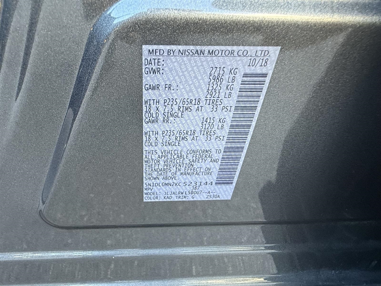 Graphite Shadow 2019 INFINITI QX60 LUXE FWD 3.5L V6 CVT13 Speakers, 3rd row seats: bench, 4-Wheel Disc Brakes, 5.25 Axle Ratio, ABS brakes, Air Conditioning, Alloy wheels, AM/FM radio: SiriusXM, Anti-whiplash front head restraints, Auto-dimming Rear-View mirror, Automatic temperature control, Bodyside moldings, Brake assist, Bumpers: body-color, CD player, Delay-off headlights, Driver door bin, Driver vanity mirror, Dual front impact airbags, Dual front side impact airbags, DVD-Audio, Electronic Stability Control, Four wheel independent suspension, Front anti-roll bar, Front Bucket Seats, Front Center Armrest w/Storage, Front dual zone A/C, Front fog lights, Front reading lights, Fully automatic headlights, Garage door transmitter: HomeLink, Heated door mirrors, Heated Front Seats, Heated front seats, Heated steering wheel, Illuminated entry, Illuminated Kick Plates (IKP), Leather steering wheel, Leatherette Seat Trim, Low tire pressure warning, Memory seat, Occupant sensing airbag, Outside temperature display, Overhead airbag, Overhead console, Panic alarm, Passenger door bin, Passenger vanity mirror, Power door mirrors, Power driver seat, Power Liftgate, Power moonroof, Power passenger seat, Power steering, Power windows, Radio data system, Radio: AM/FM/CD/DVD w/Bose Premium Audio System, Rear air conditioning, Rear anti-roll bar, Rear reading lights, Rear seat center armrest, Rear window defroster, Rear window wiper, Reclining 3rd row seat, Remote keyless entry, Roof rack: rails only, Security system, Speed control, Speed-sensing steering, Speed-Sensitive Wipers, Split folding rear seat, Spoiler, Steering wheel memory, Steering wheel mounted audio controls, Tachometer, Telescoping steering wheel, Tilt steering wheel, Traction control, Trip computer, Turn signal indicator mirrors, Variably intermittent wipers, Wheels: 18" Triple 5-Spoke Aluminum-Alloy.