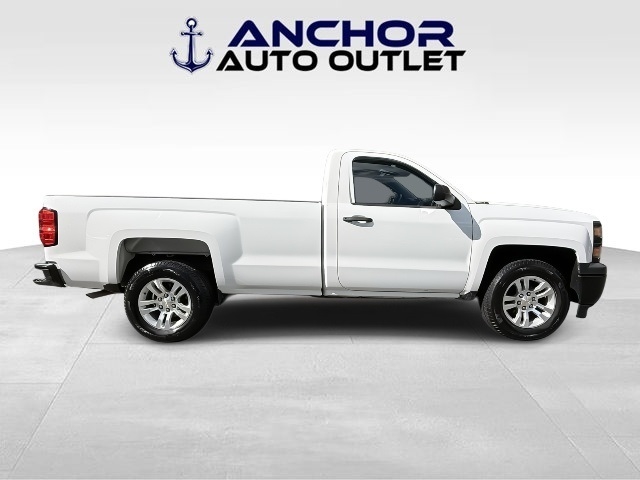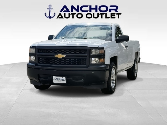 Summit White 2014 Chevrolet Silverado 1500 Work Truck RWD EcoTec3 4.3L V6 Flex Fuel 6-Speed Automatic Electronic with Overdrive6-Speed Automatic Electronic with Overdrive, Jet Black/Dark Ash Vinyl, 150 Amp Alternator, 3.23 Rear Axle Ratio, 3.5" Diagonal Monochromatic Display, 4 Speakers, 4-Wheel Disc Brakes, 40/20/40 Front Split Bench Seat, ABS brakes, Air Conditioning, Black Power Adjustable Heated Outside Mirrors, Bluetooth® For Phone, Brake assist, Cloth Seat Trim, Deep-Tinted Glass, Delay-off headlights, Driver door bin, Dual front impact airbags, Dual front side impact airbags, Electronic Stability Control, Front anti-roll bar, Front Center Armrest w/Storage, Front Chrome Bumper, Front License Plate Kit, Front reading lights, Front wheel independent suspension, Fully automatic headlights, Graphite-Colored Rubberized-Vinyl Floor Covering, Heavy Duty Suspension, Heavy-Duty Rear Locking Differential, Low tire pressure warning, Manual Tilt Wheel Steering Column, Occupant sensing airbag, OnStar 6 Months Directions & Connections Plan, Overhead airbag, Overhead console, Passenger door bin, Passenger vanity mirror, Power steering, Power Windows w/Driver Express Up, Radio data system, Radio: AM/FM Audio System w/Chevrolet MyLink, Rear Chrome Bumper, Rear step bumper, Remote Keyless Entry, SiriusXM Satellite & HD Radio, Speed control, Speed-sensing steering, Tachometer, Tilt steering wheel, Traction control, Trailering Equipment, Trip computer, Variably intermittent wipers, Voltmeter, 6-Speed Automatic Electronic with Overdrive, Jet Black/Dark Ash Vinyl.
